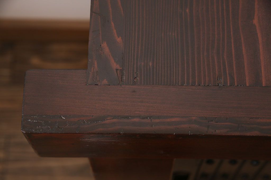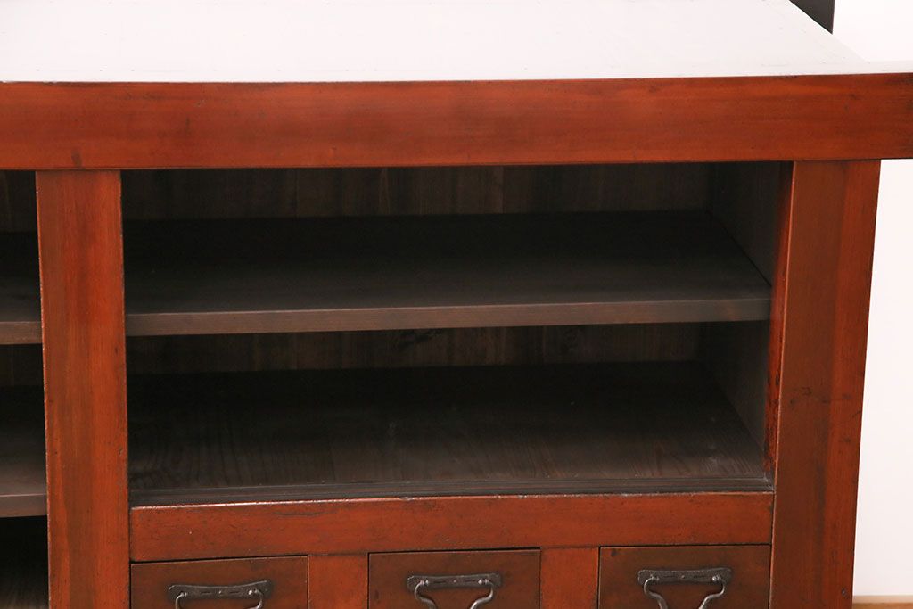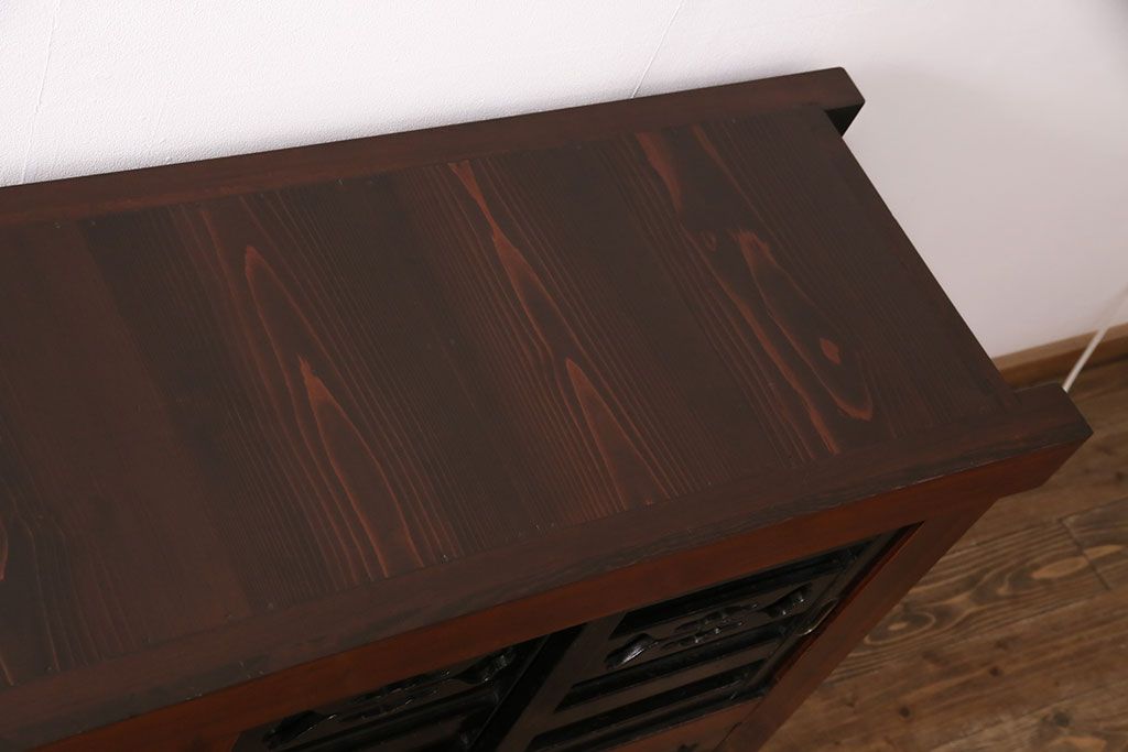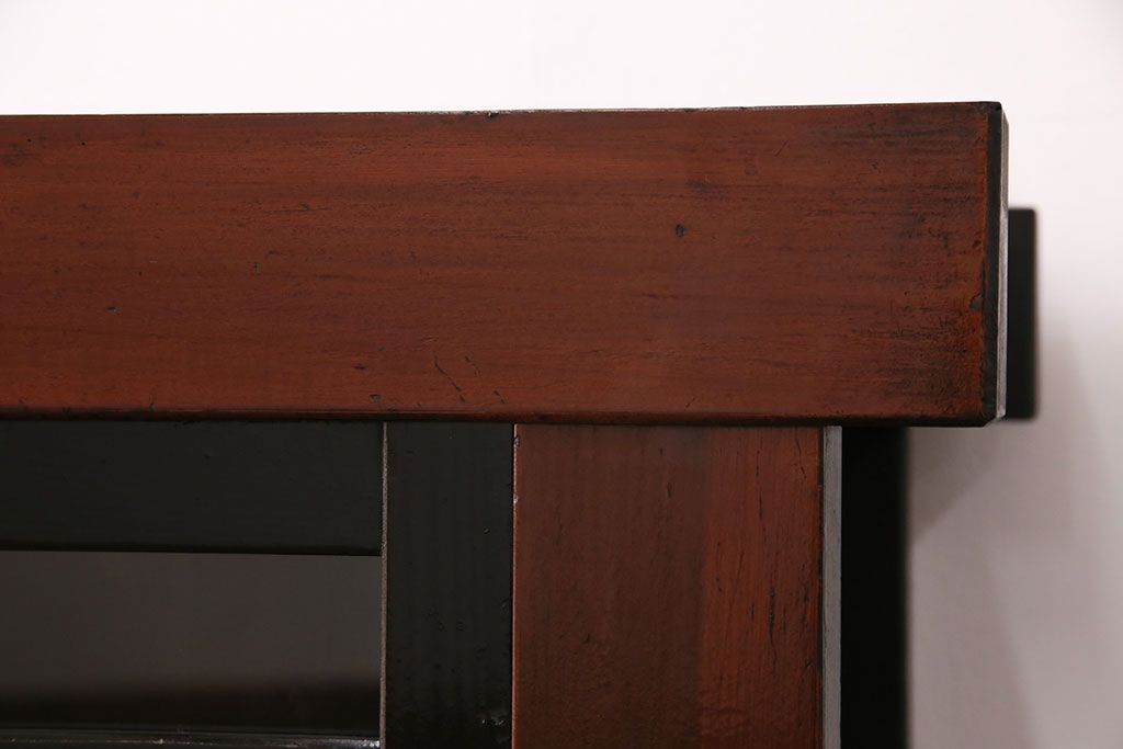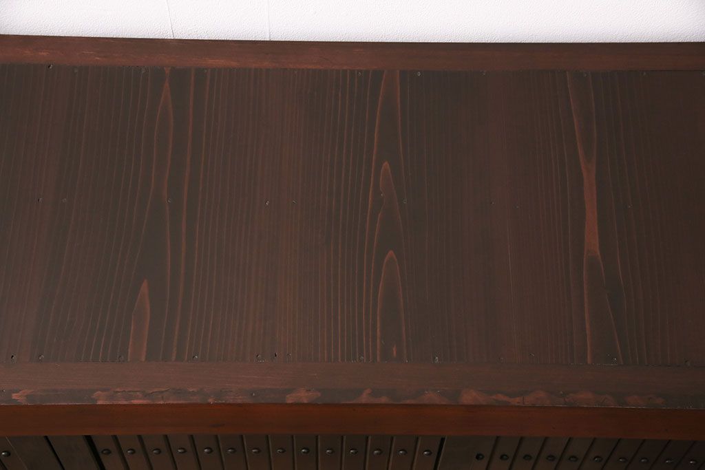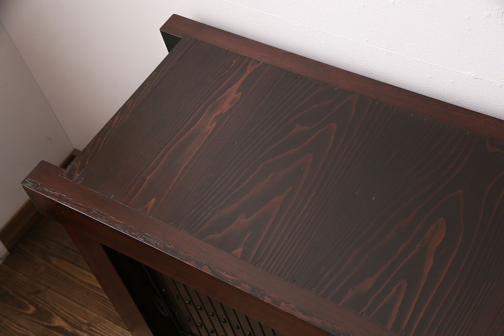 セミオーダー家具実績 > 明治期の水屋箪笥・上段をリペア&カスタム!高さと奥行きをリサイズ。建具の金網をクリアガラスに変更。可動式の棚板を設置。天板を取り付け。(食器棚、収納棚、戸棚)