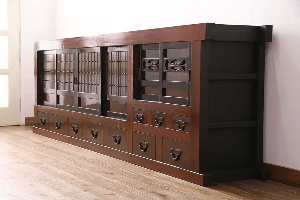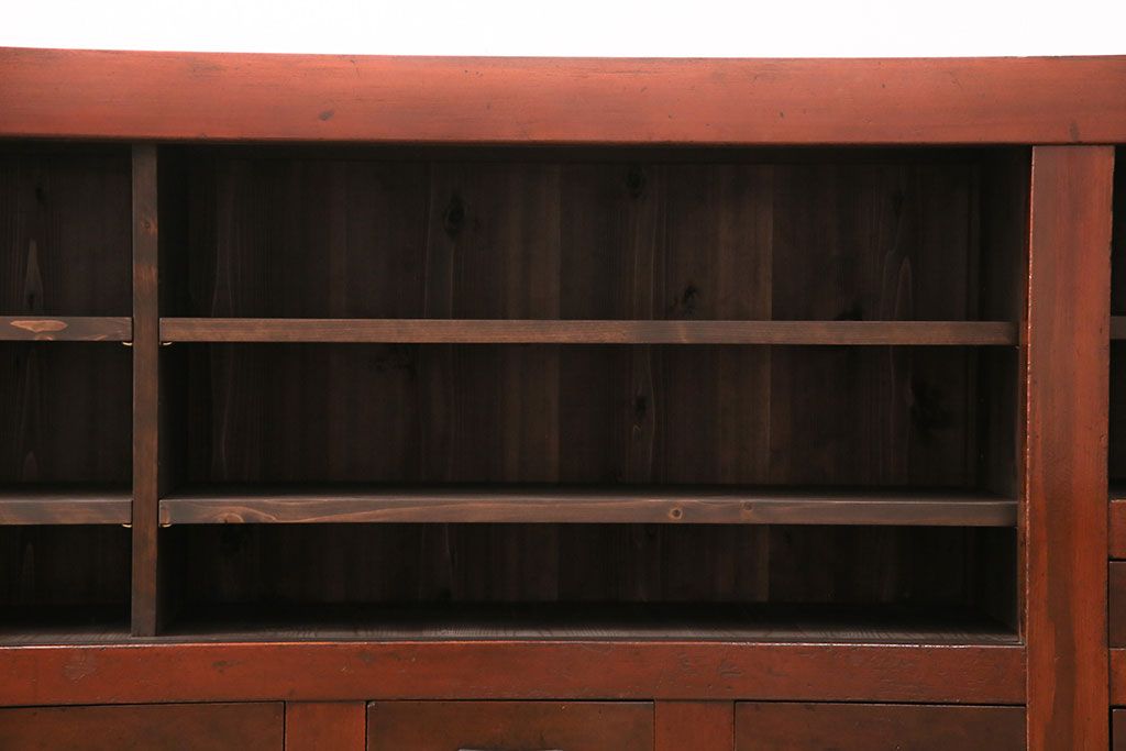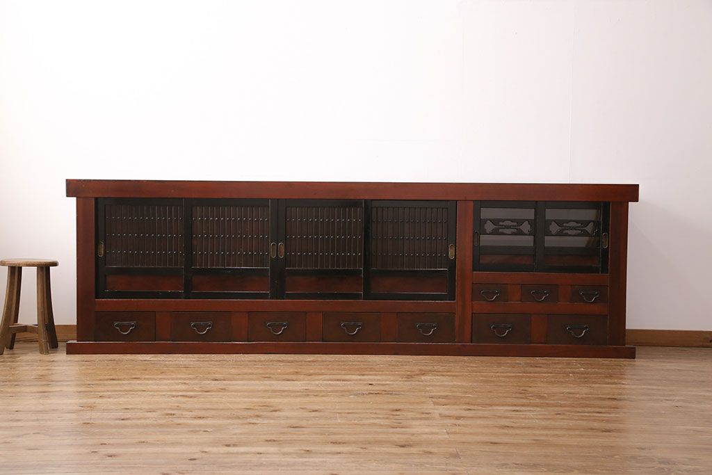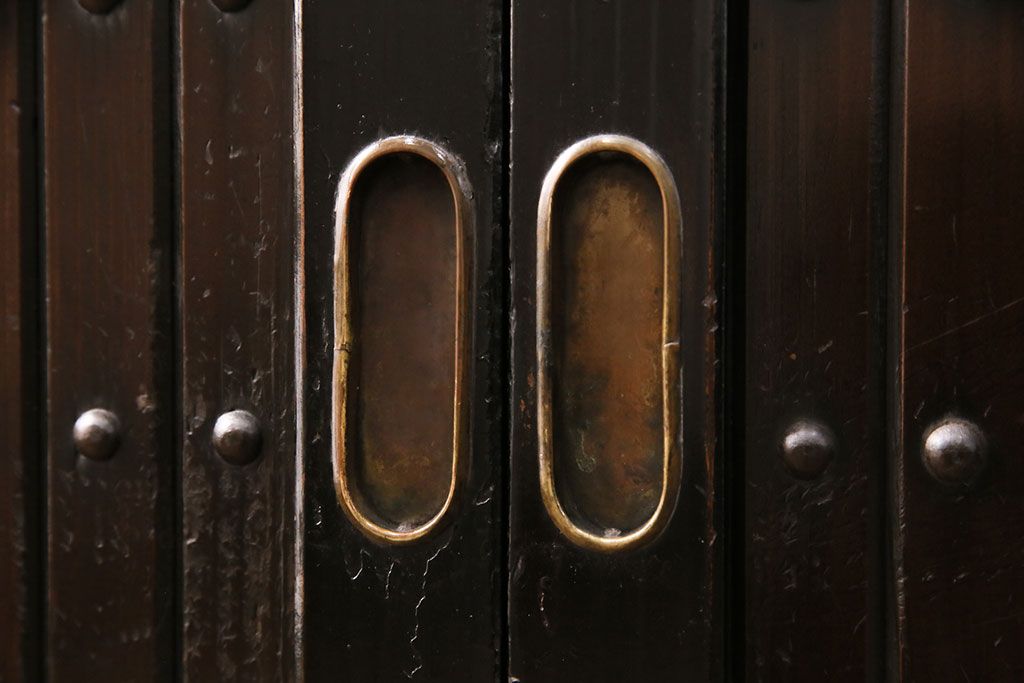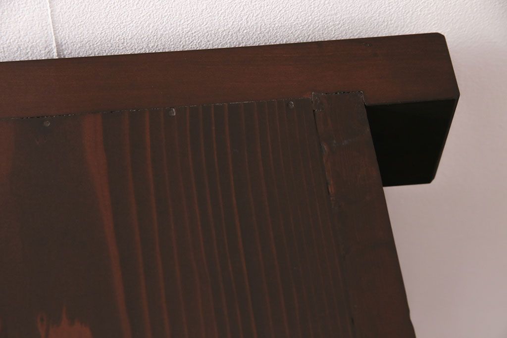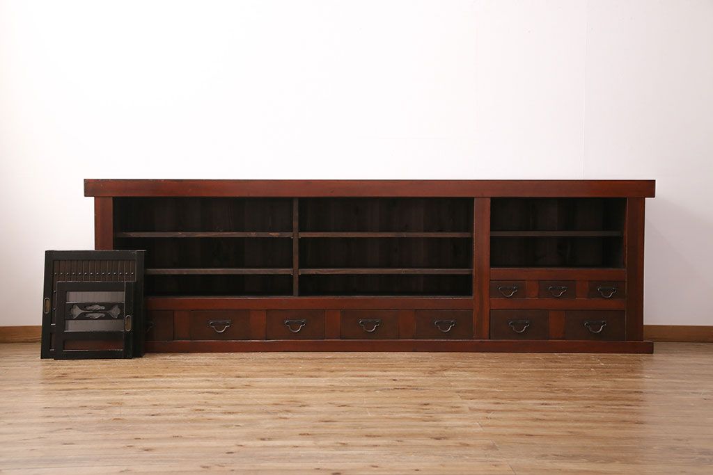 セミオーダー家具実績 > 明治期の水屋箪笥・上段をリペア&カスタム!高さと奥行きをリサイズ。建具の金網をクリアガラスに変更。可動式の棚板を設置。天板を取り付け。(食器棚、収納棚、戸棚)
