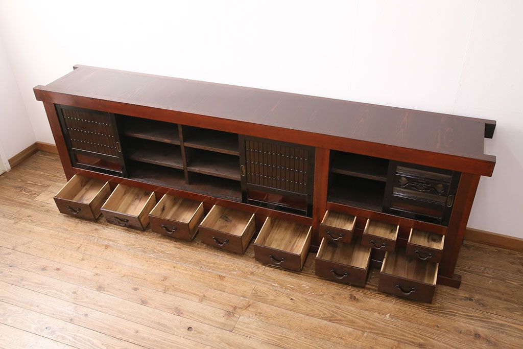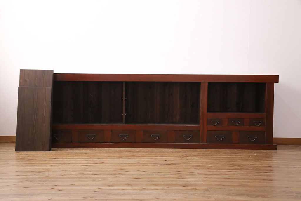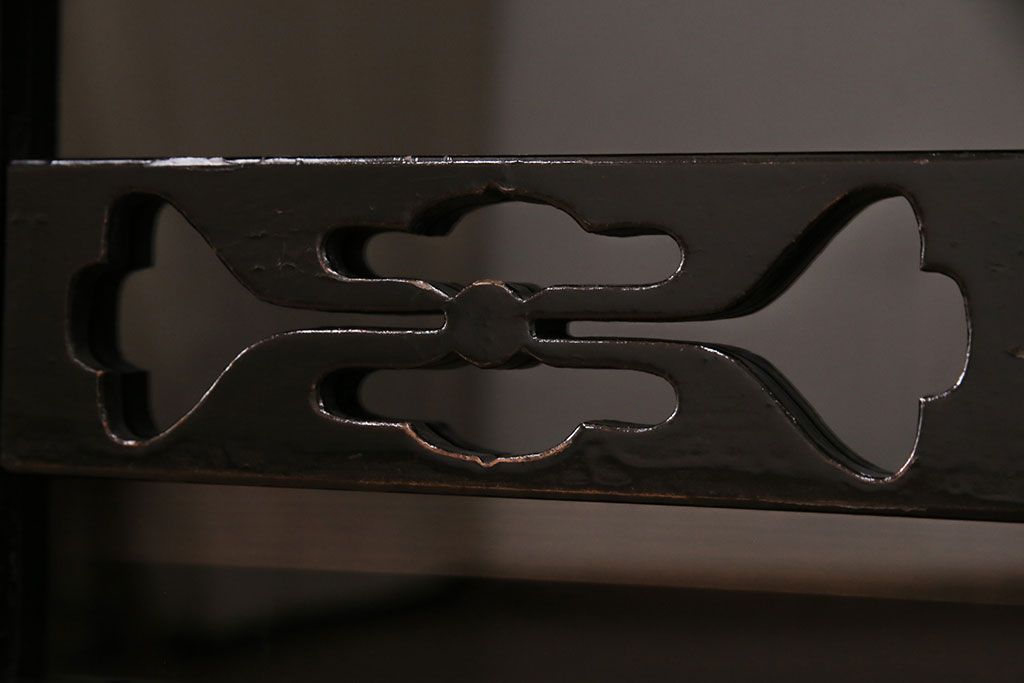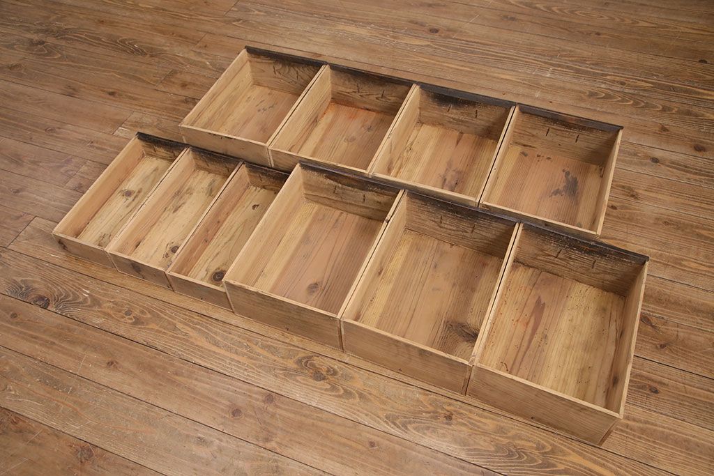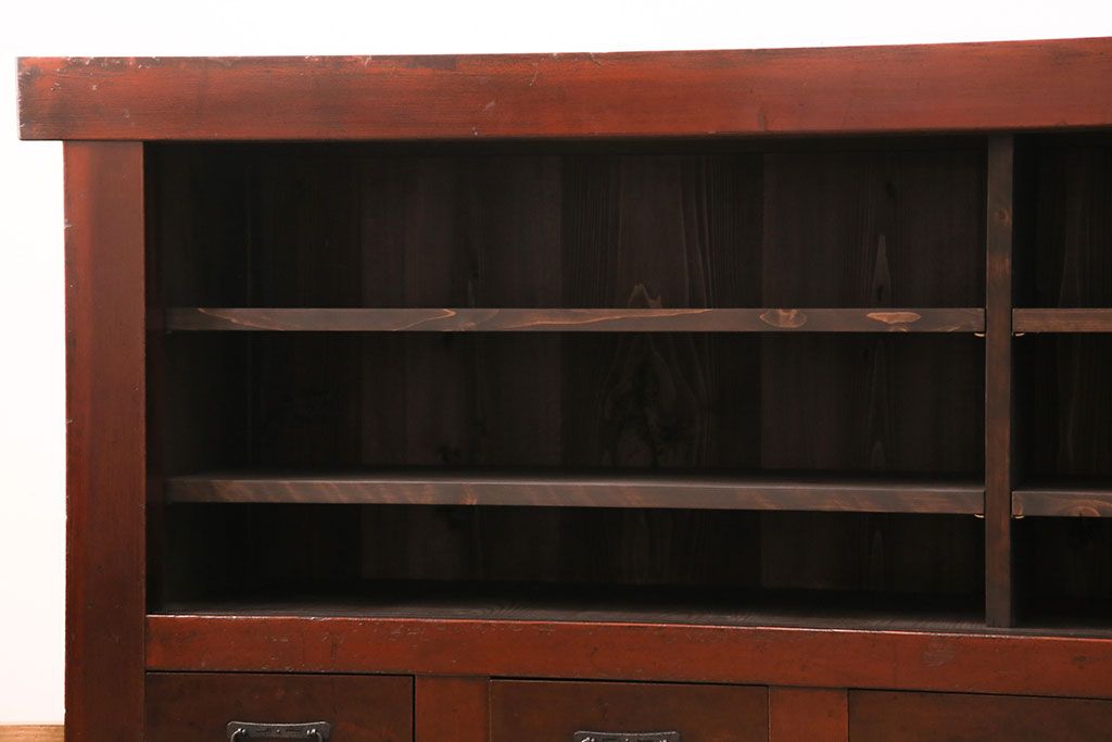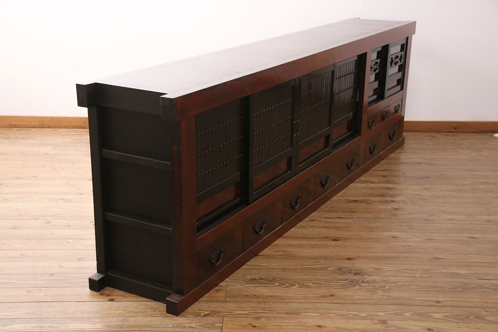 セミオーダー家具実績 > 明治期の水屋箪笥・上段をリペア&カスタム!高さと奥行きをリサイズ。建具の金網をクリアガラスに変更。可動式の棚板を設置。天板を取り付け。(食器棚、収納棚、戸棚)