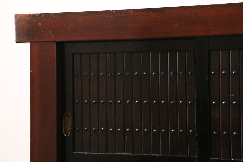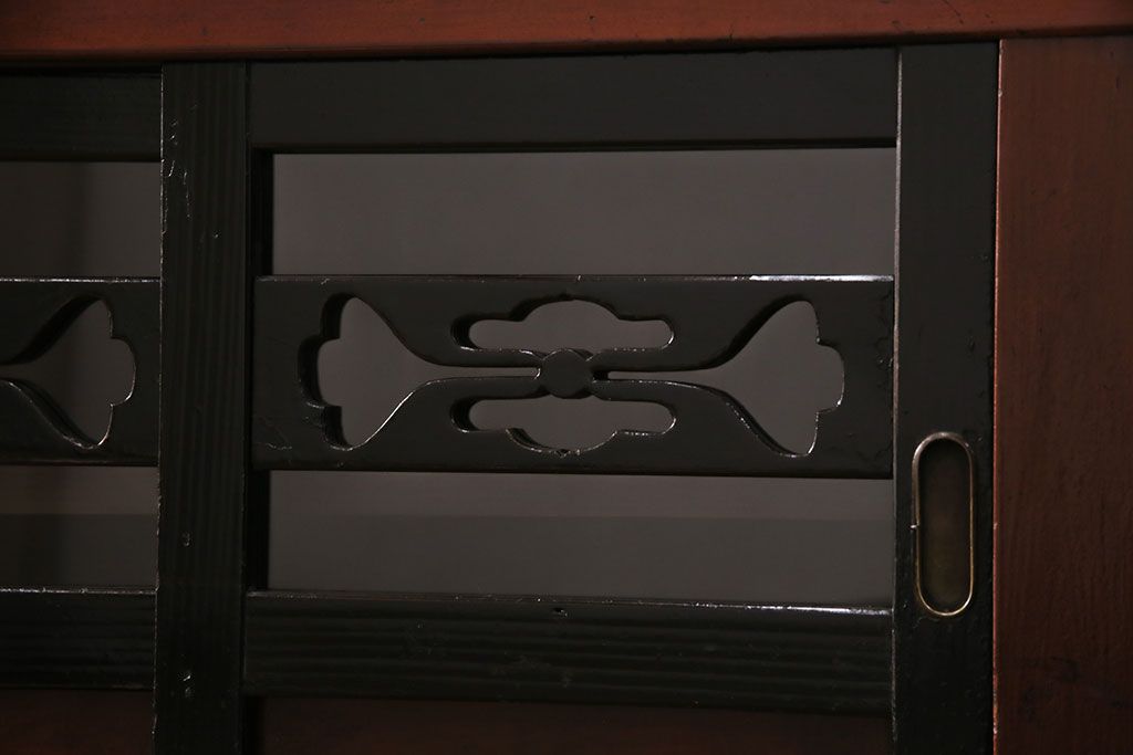 和箪笥 > 明治期の水屋箪笥・上段をリペア&カスタム!高さと奥行きをリサイズ。建具の金網をクリアガラスに変更。可動式の棚板を設置。天板を取り付け。(食器棚、収納棚、戸棚)