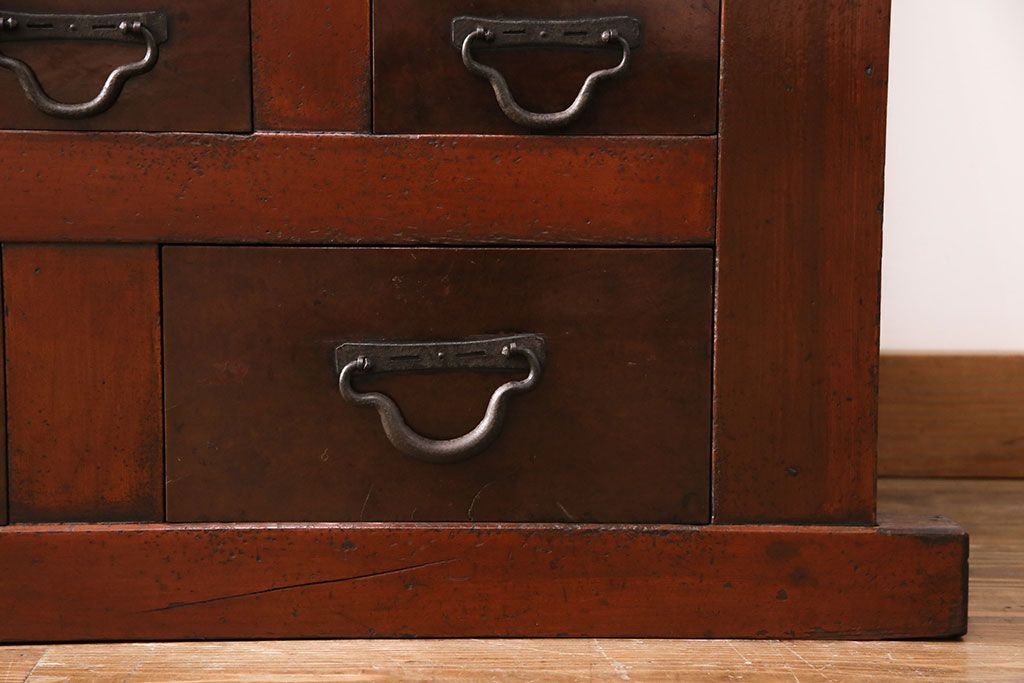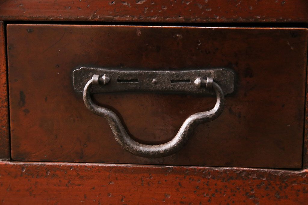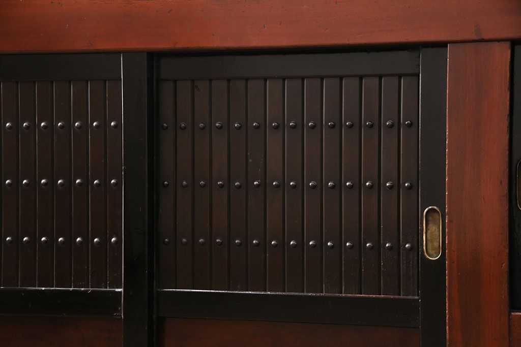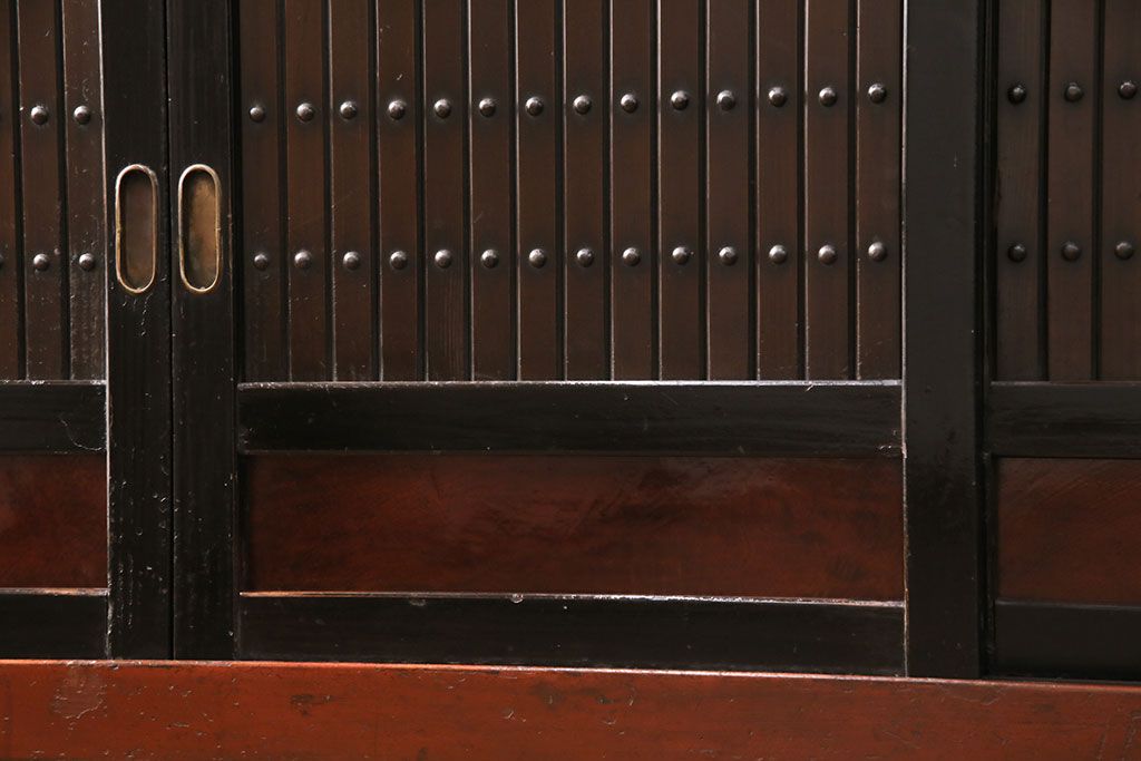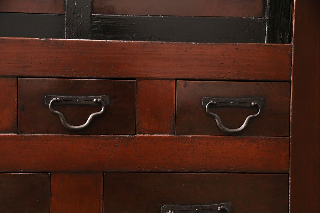和箪笥> 水屋箪笥 > 明治期の水屋箪笥・上段をリペア&カスタム!高さと奥行きをリサイズ。建具の金網をクリアガラスに変更。可動式の棚板を設置。天板を取り付け。(食器棚、収納棚、戸棚)