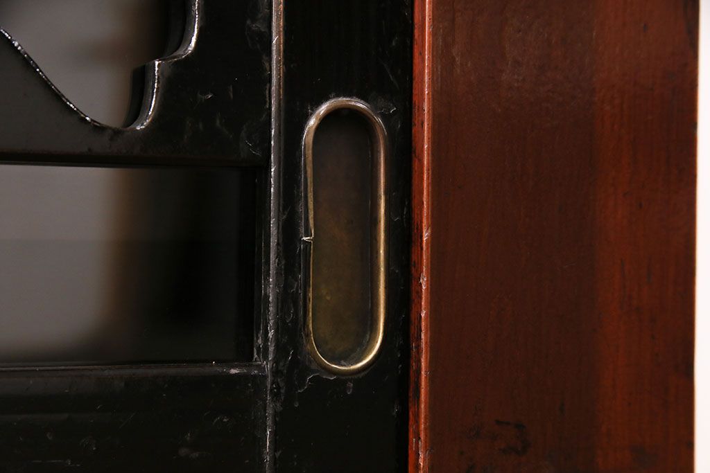 明治期の水屋箪笥・上段をリペア&カスタム!高さと奥行きをリサイズ。建具の金網をクリアガラスに変更。可動式の棚板を設置。天板を取り付け。(食器棚、収納棚、戸棚)