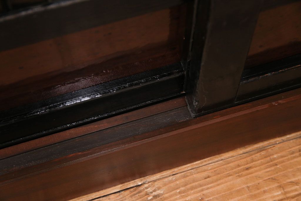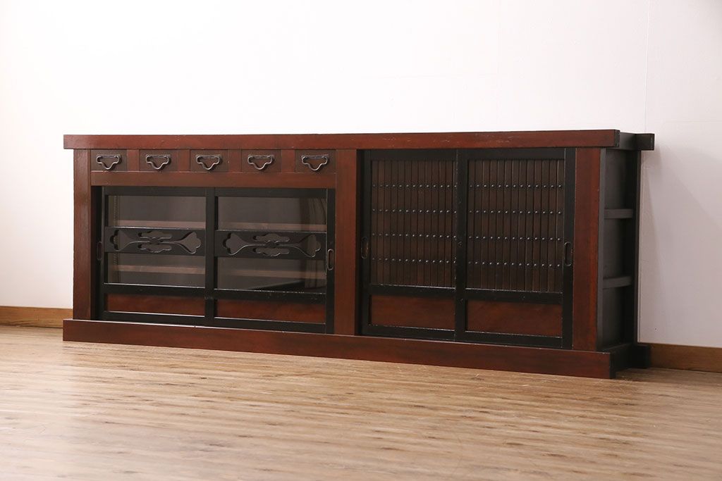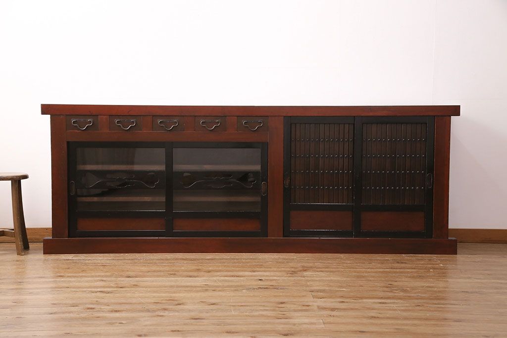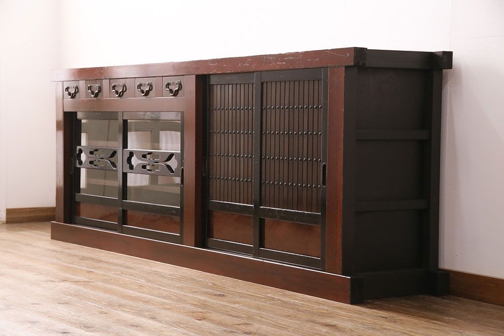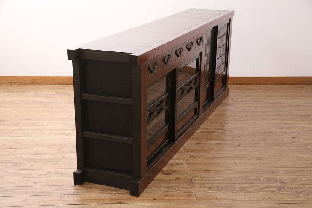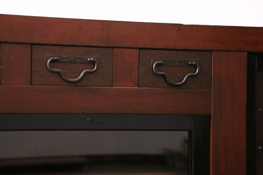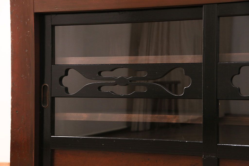 ・ガラス引き戸のデザイン(透かし彫り、鏡板など)は水屋箪笥・上段R-040382と同じ