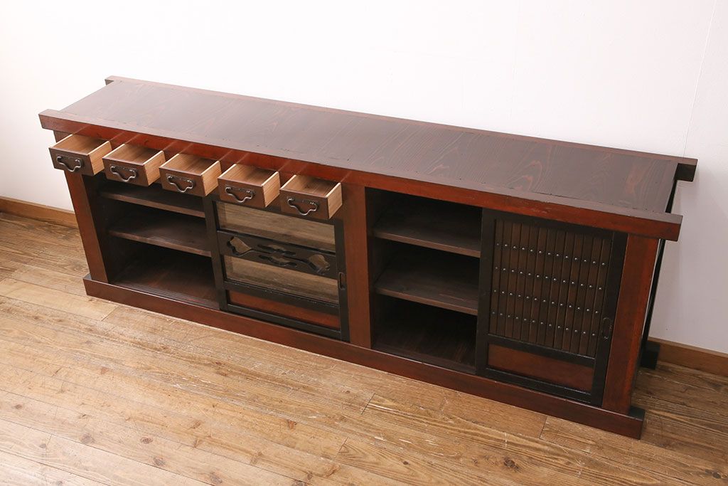 明治期の水屋箪笥・下段をリペア&カスタム!幅と奥行きをリサイズし。引き出しを新たに製作。可動式の棚板を設置。天板を取り付け。(食器棚、収納棚、戸棚)