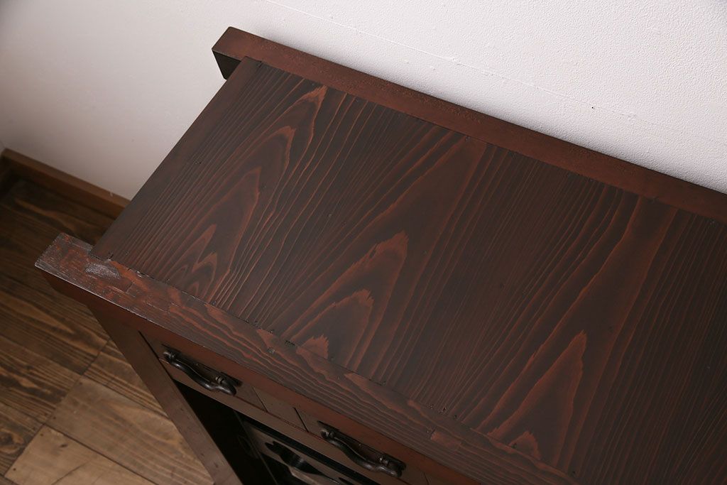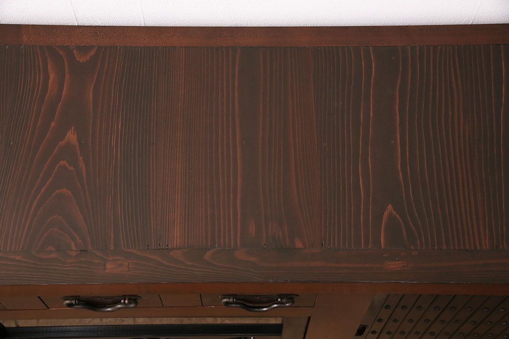 和箪笥> 水屋箪笥 > 明治期の水屋箪笥・下段をリペア&カスタム!幅と奥行きをリサイズし。引き出しを新たに製作。可動式の棚板を設置。天板を取り付け。(食器棚、収納棚、戸棚)