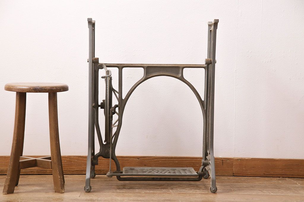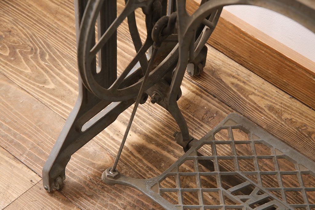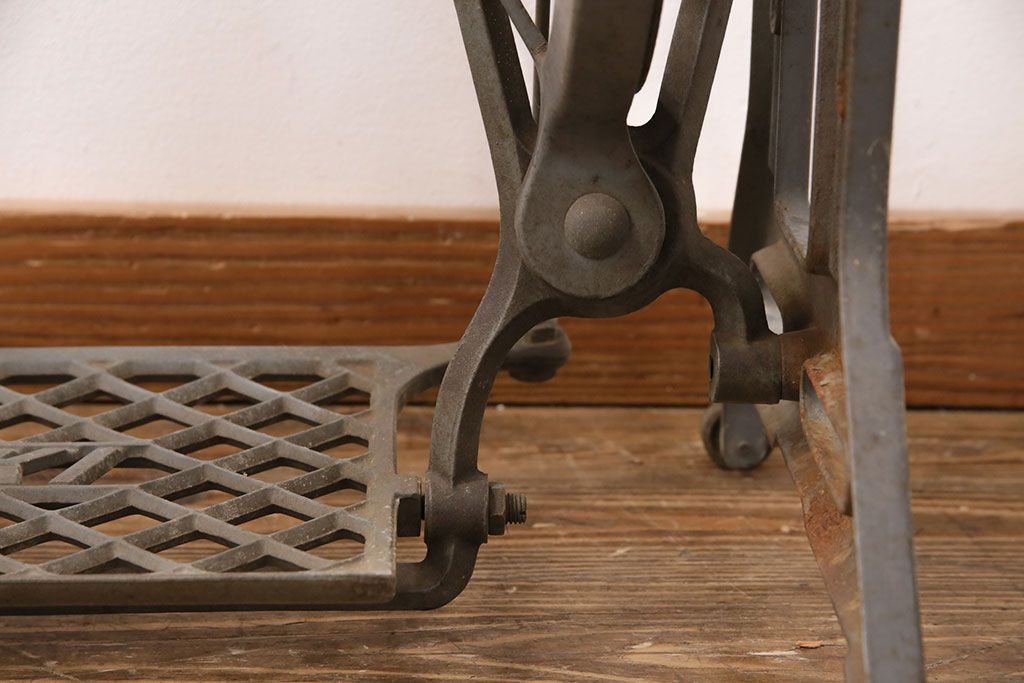 和製アンティーク JUKI(ジューキ) 天板を付けて仕上げる、カフェ風インテリアに活躍するミシンの鉄脚(ミシンテーブル、ミシン台、ミシン脚)(R-049757)