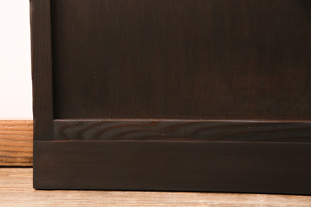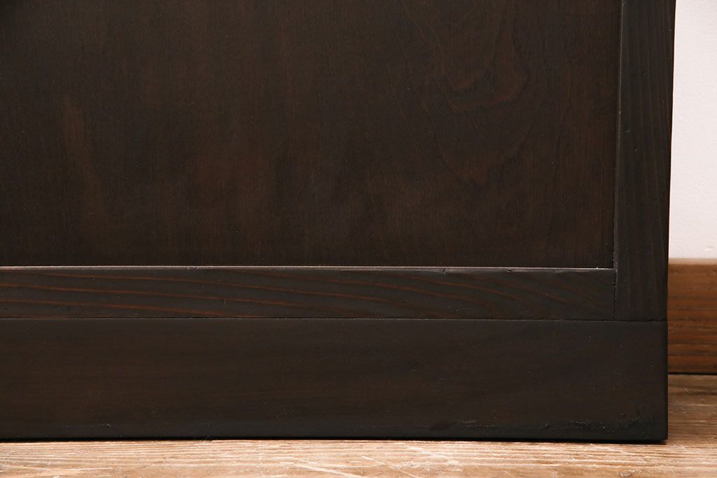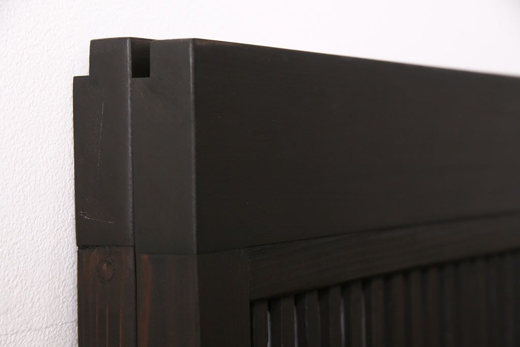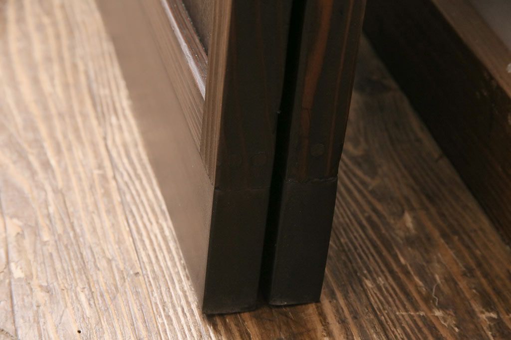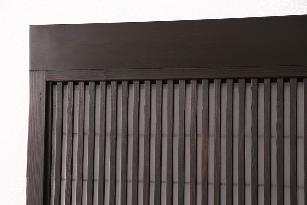 セミオーダー家具実績 > 格子戸2枚をリペア&カスタム!設置場所に合わせてリサイズ。裏障子は破れにくい障子紙に張り替え。ガラスは花菱模様ガラスに入れ替え。濃い茶色で着色し仕上げ。(引き戸、建具)