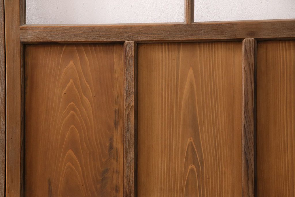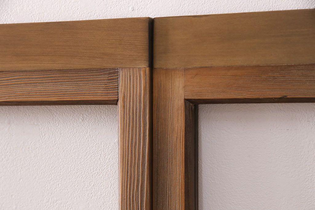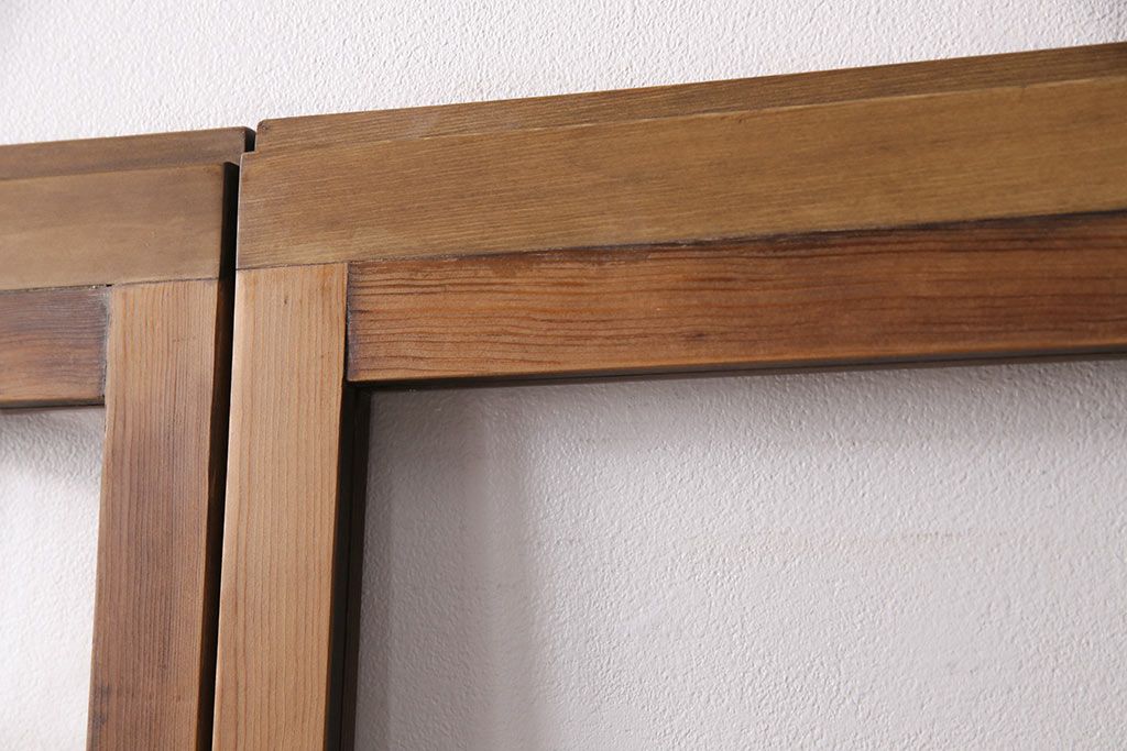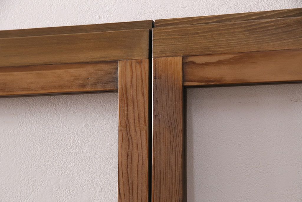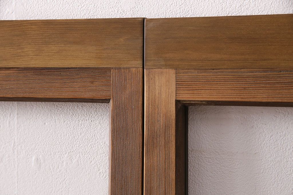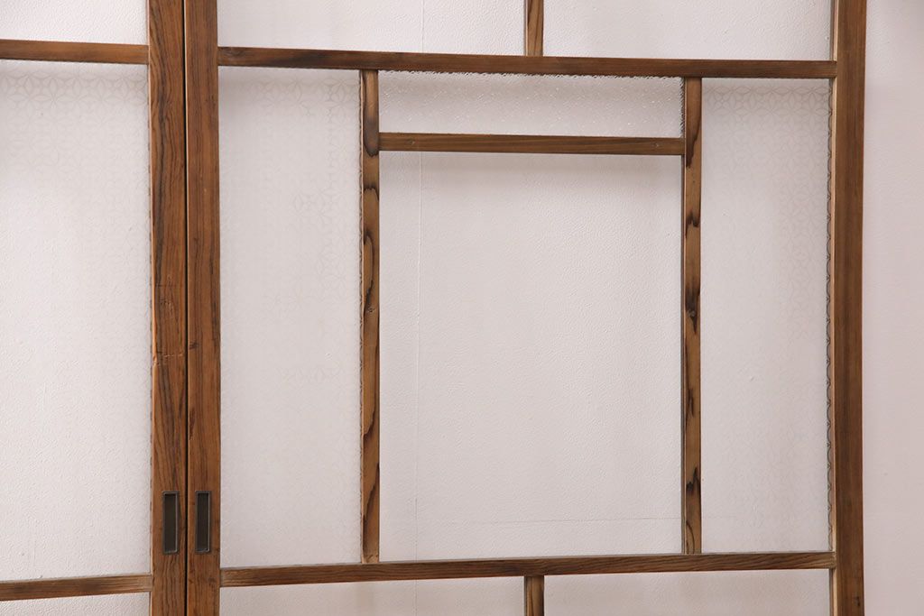 ドア・建具> ガラス戸 > 昭和初期のガラス戸4枚をリペア&カスタム!設置場所に合わせてリサイズ。引手と戸車を取り付け。クリアガラス、ダイヤガラス、ゆらゆらガラス、変わり花菱模様ガラスに差し替え。クリアワックス仕上げ。戸枠を新たに製作。(引き戸、建具)