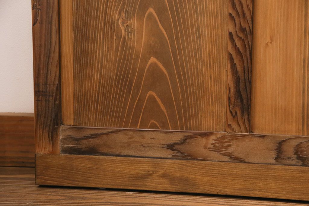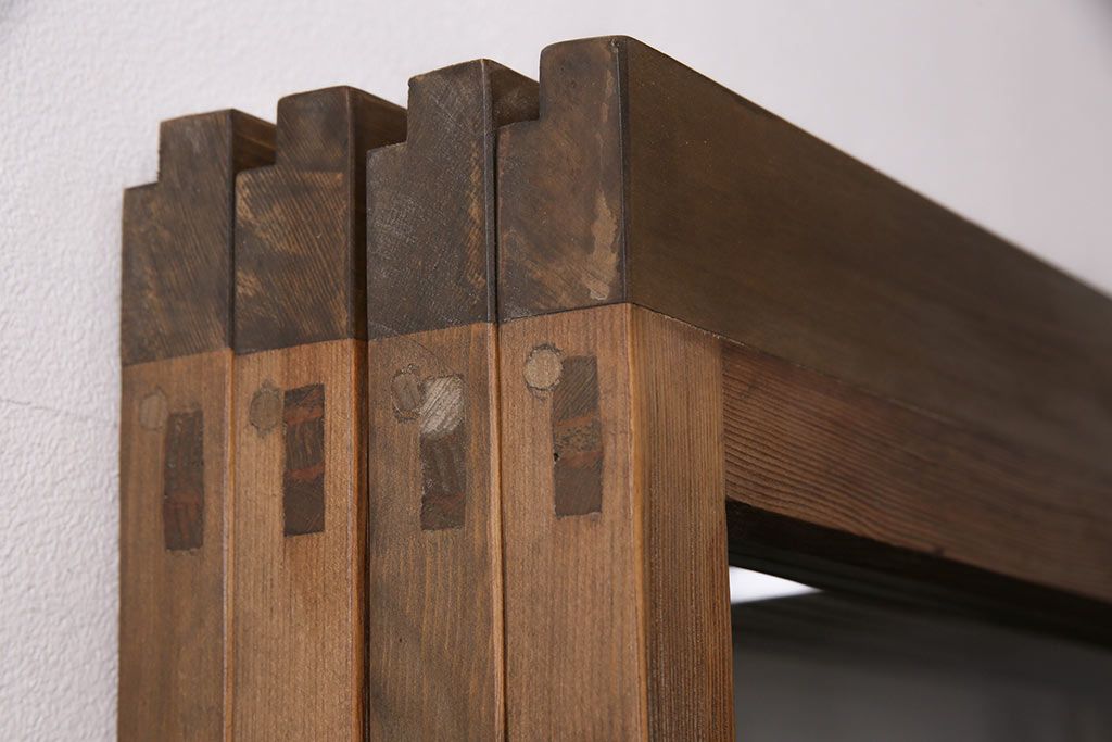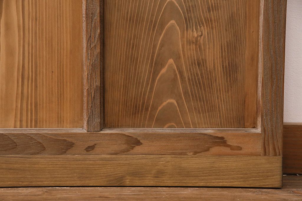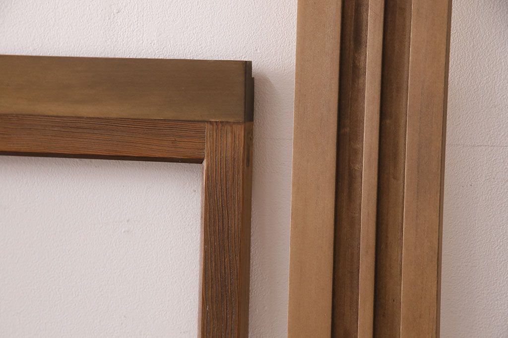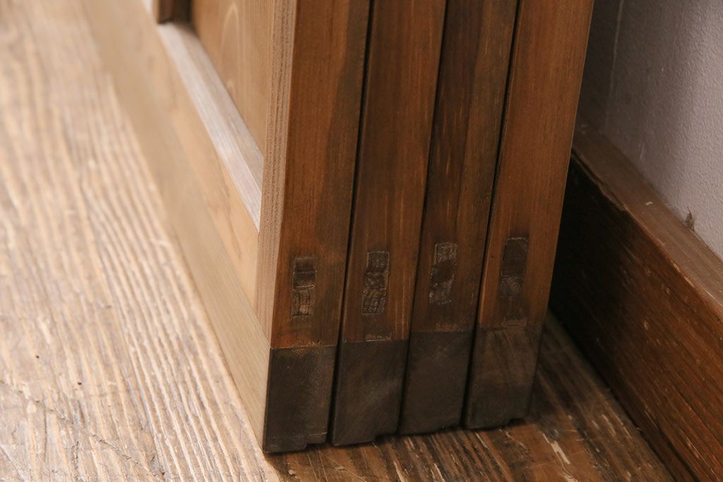 セミオーダー家具実績 > 昭和初期のガラス戸4枚をリペア&カスタム!設置場所に合わせてリサイズ。引手と戸車を取り付け。クリアガラス、ダイヤガラス、ゆらゆらガラス、変わり花菱模様ガラスに差し替え。クリアワックス仕上げ。戸枠を新たに製作。(引き戸、建具)