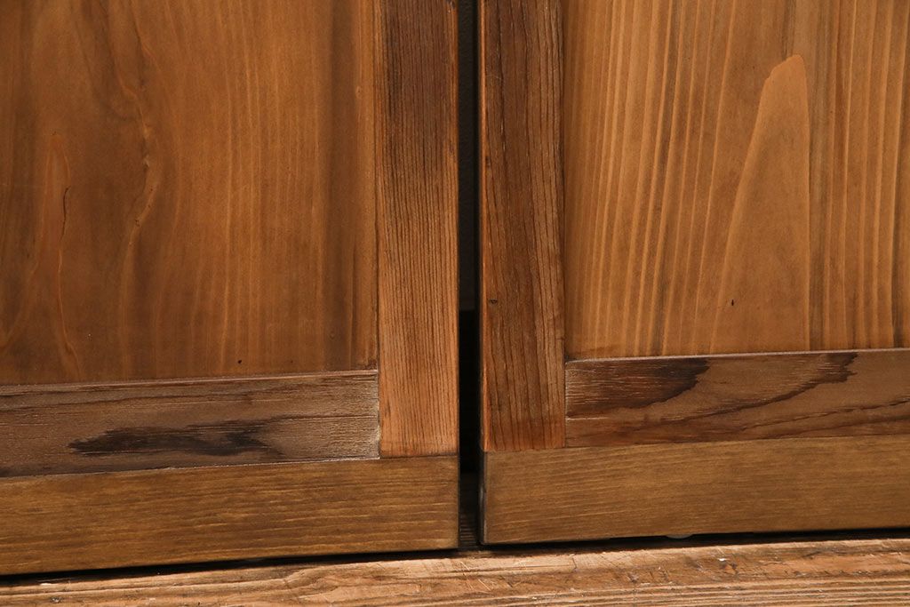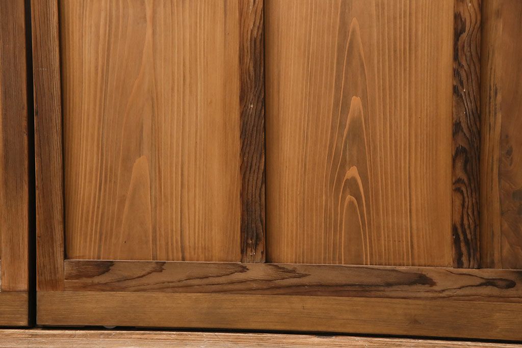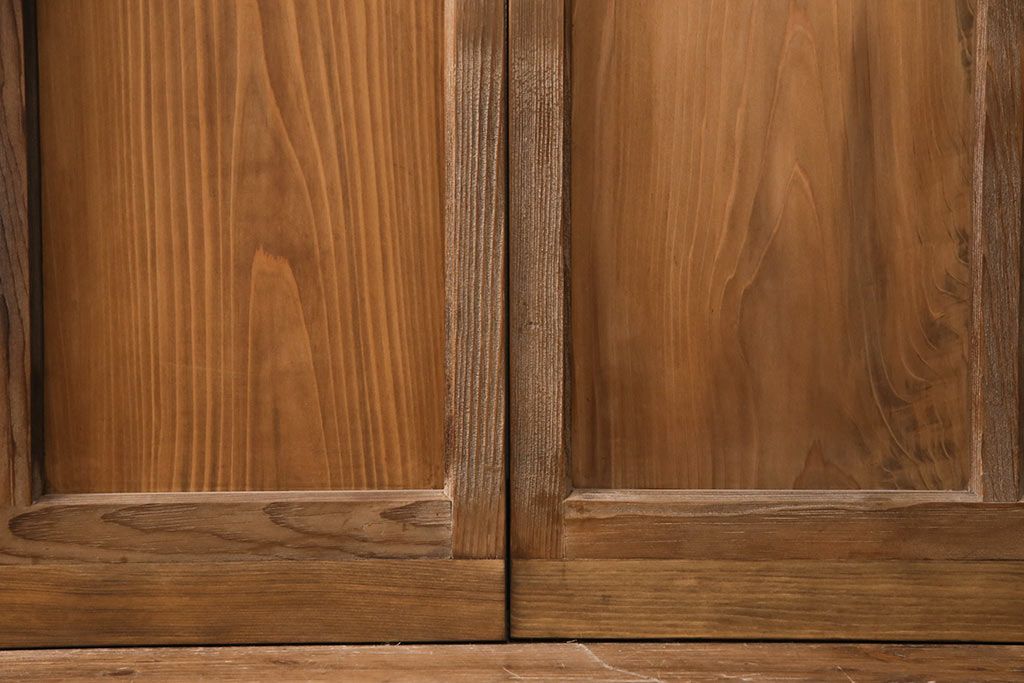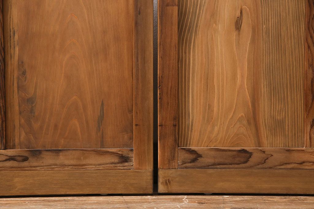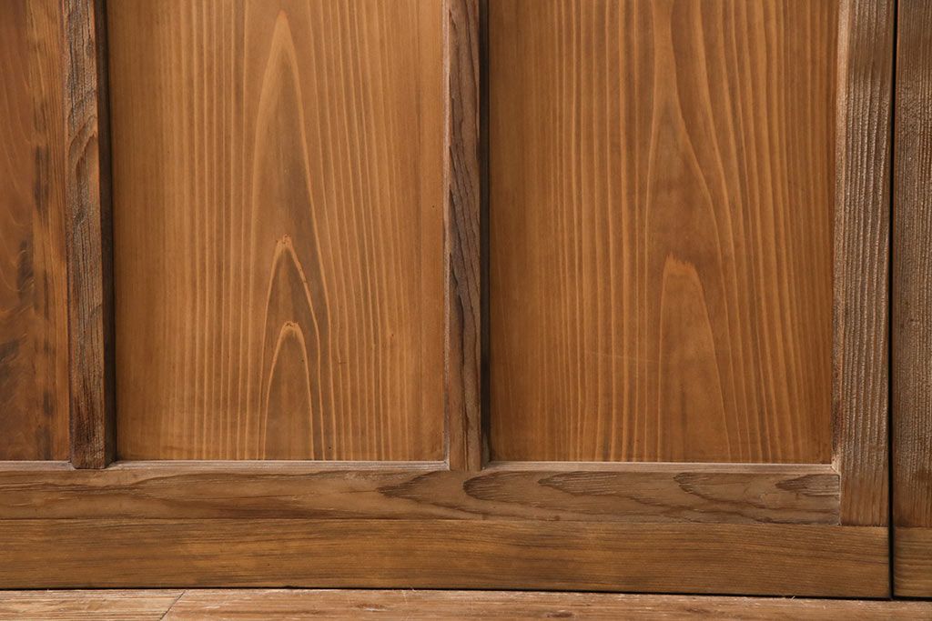 セミオーダー家具実績 > 昭和初期のガラス戸4枚をリペア&カスタム!設置場所に合わせてリサイズ。引手と戸車を取り付け。クリアガラス、ダイヤガラス、ゆらゆらガラス、変わり花菱模様ガラスに差し替え。クリアワックス仕上げ。戸枠を新たに製作。(引き戸、建具)