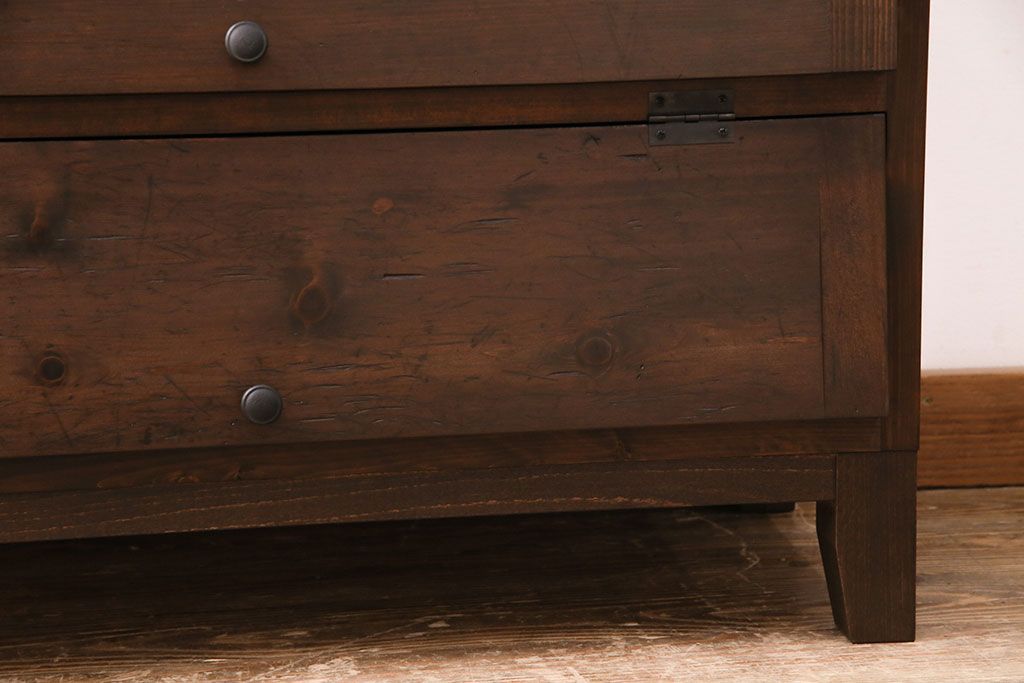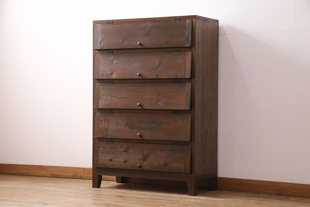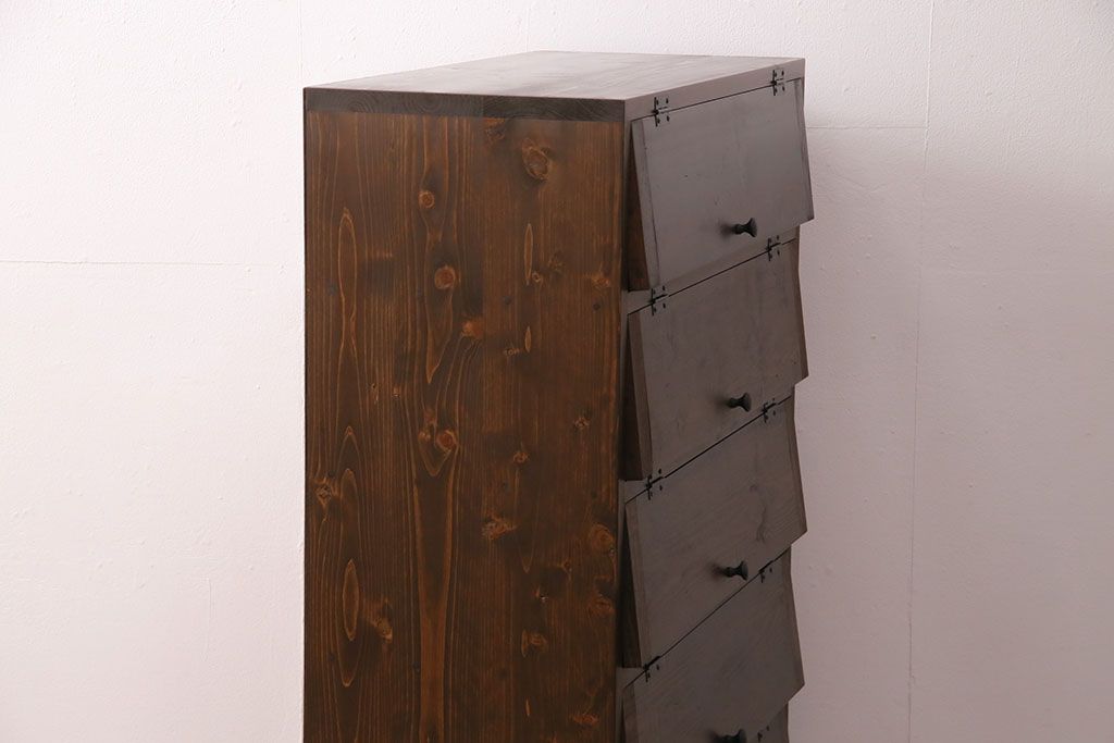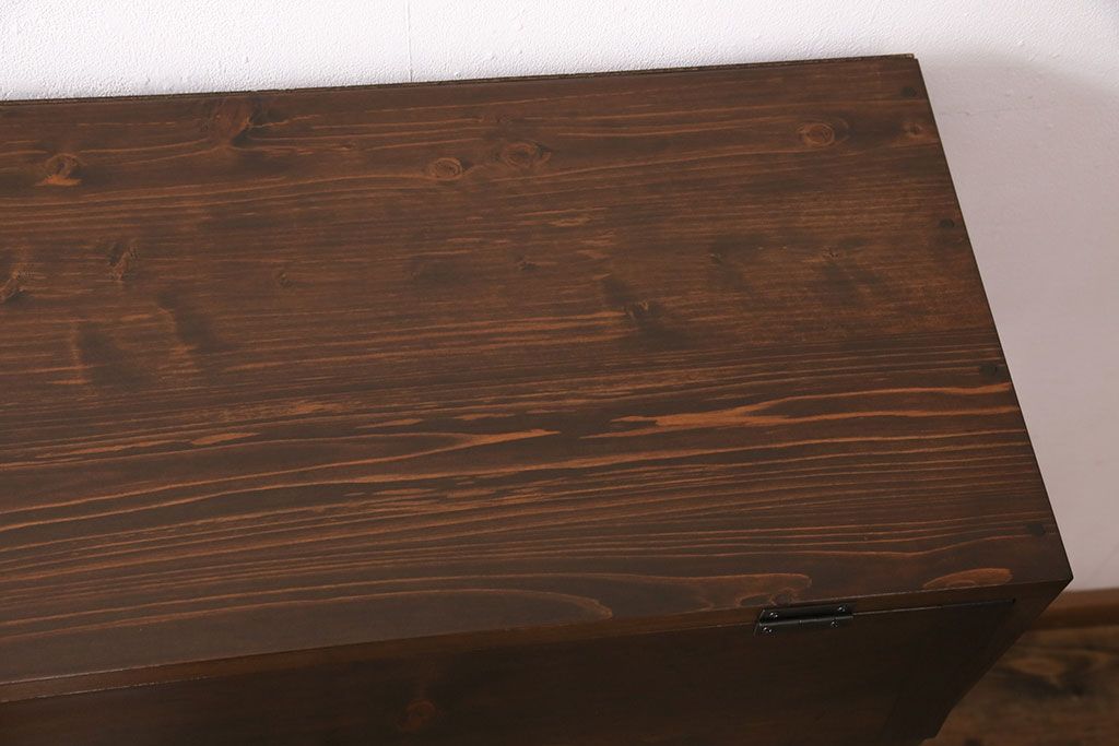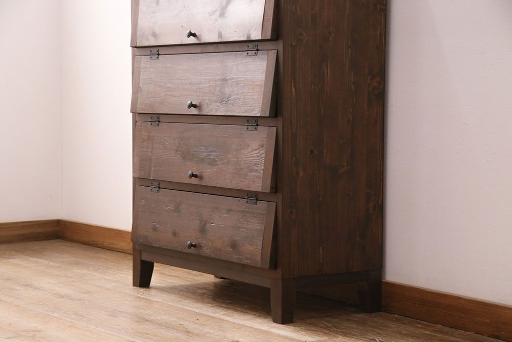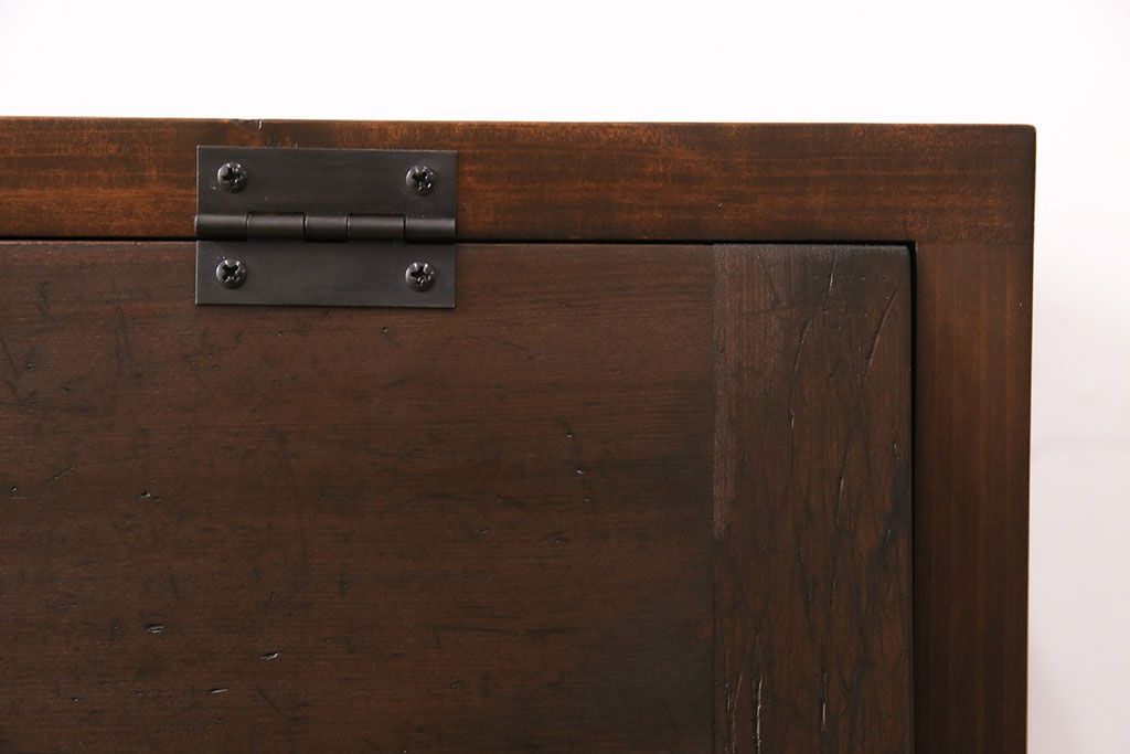 パタパタ扉の収納棚を新規製作!本体は新材、扉は古材を使用。濃い茶色で着色し仕上げ。(下駄箱、ロッカー、キャビネット)