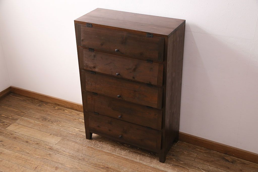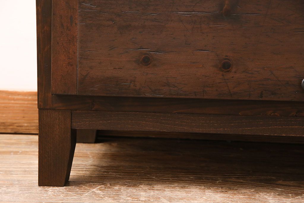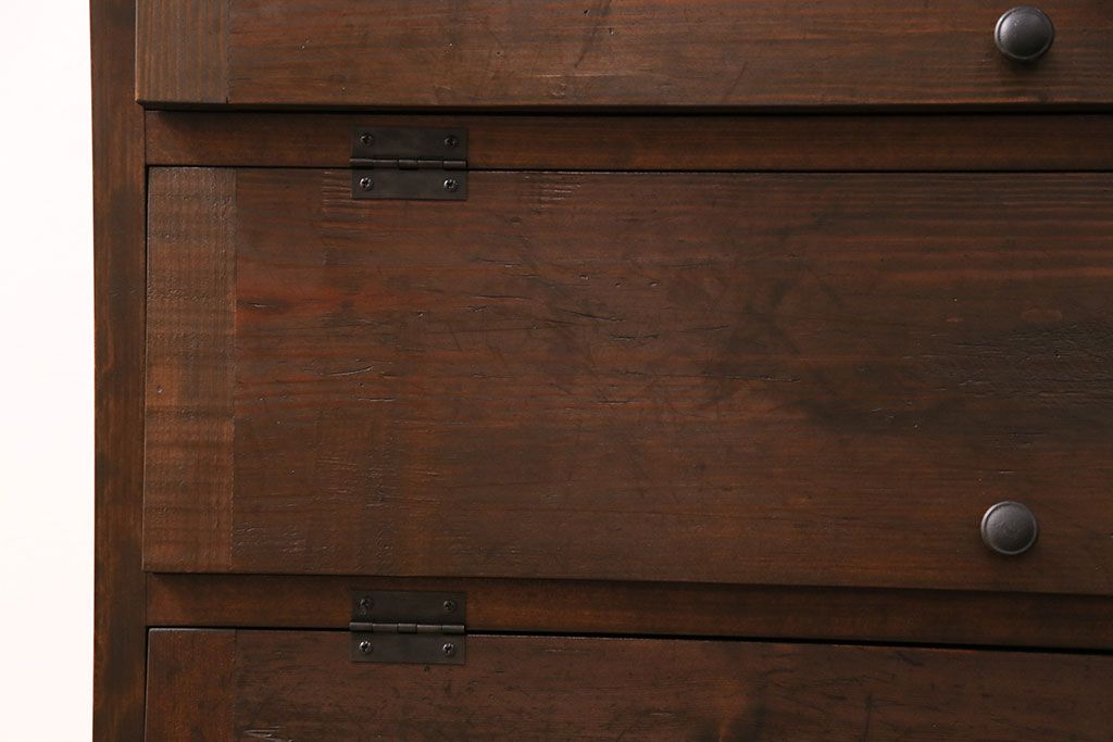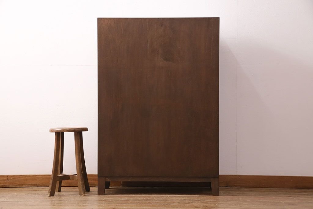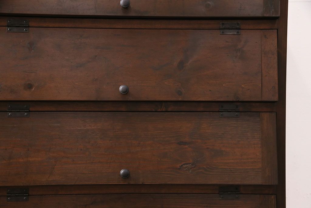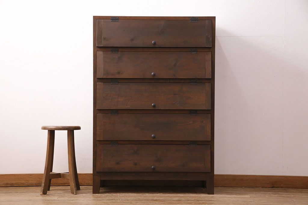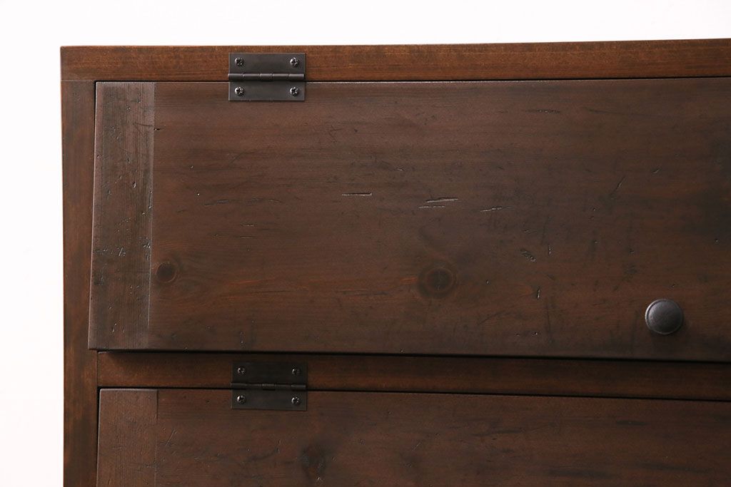 パタパタ扉の収納棚を新規製作!本体は新材、扉は古材を使用。濃い茶色で着色し仕上げ。(下駄箱、ロッカー、キャビネット)