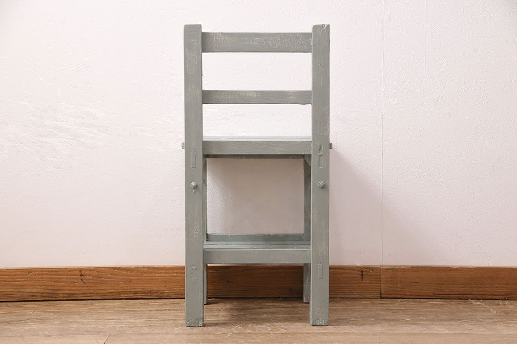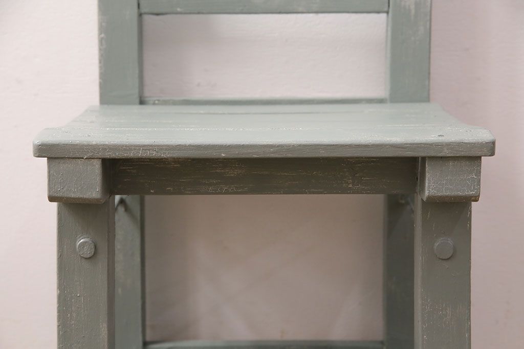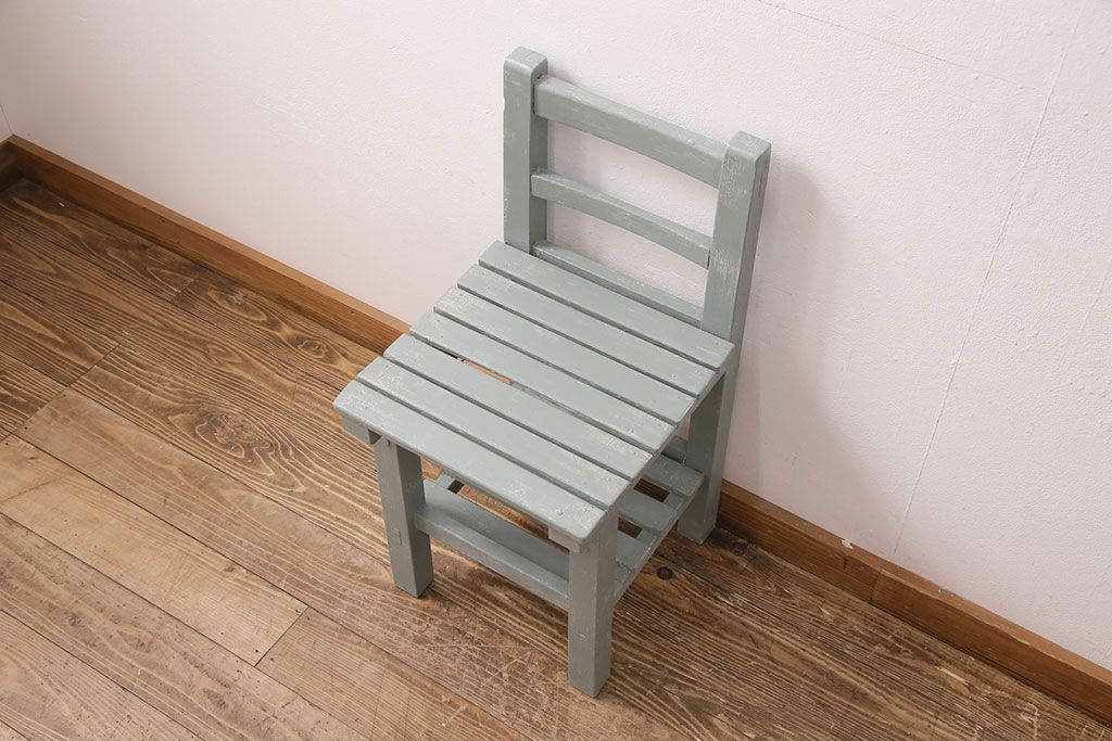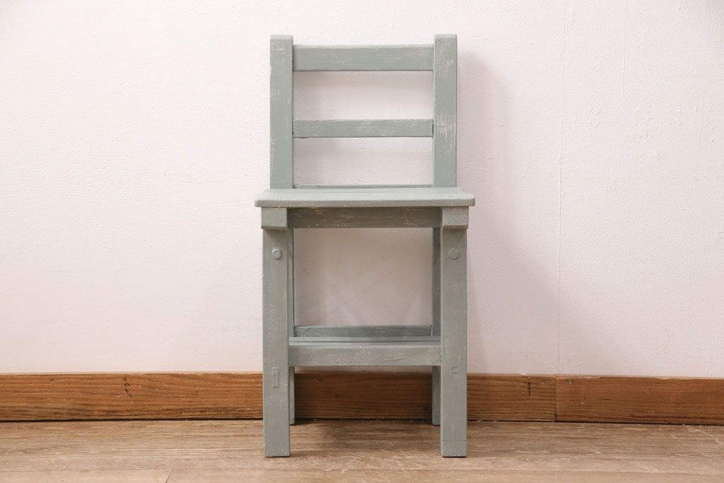 和製アンティーク ペイントカラーが可愛らしいレトロな木製チェア(椅子、板座チェア、スクールチェア、キッズチェア)(R-050438)