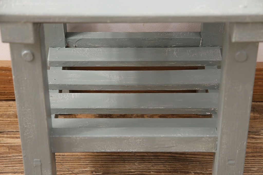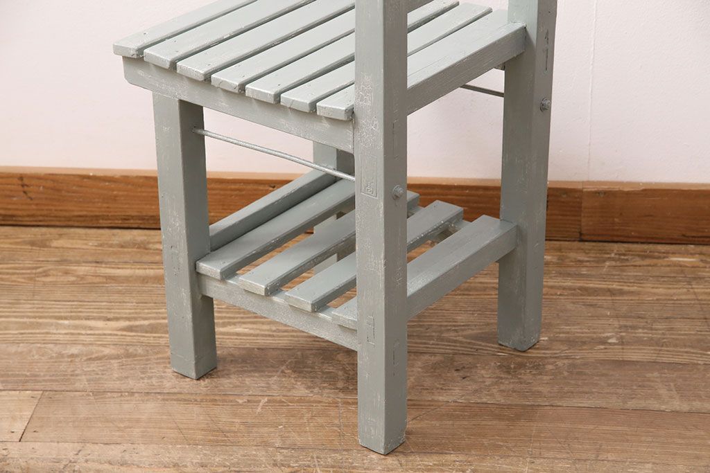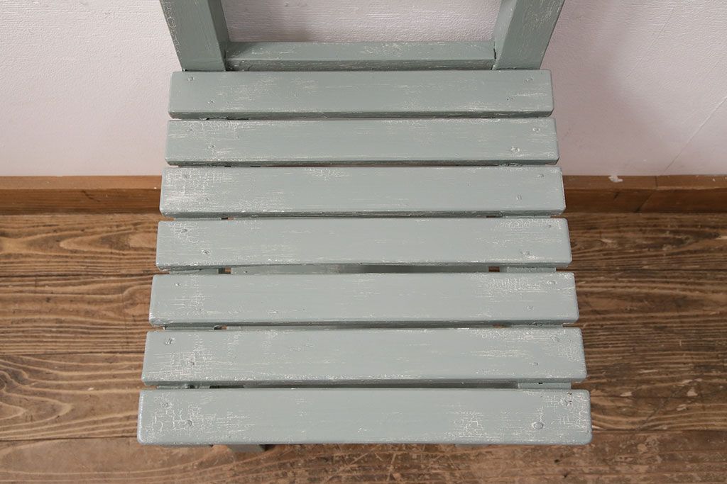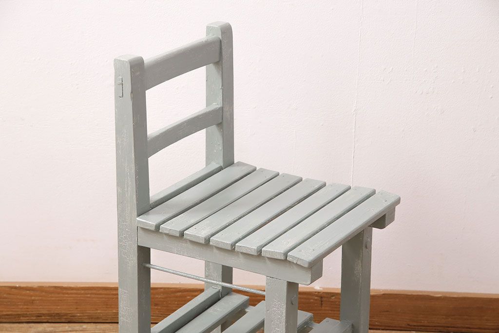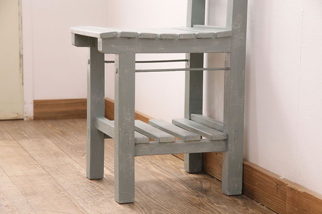 和製アンティーク ペイントカラーが可愛らしいレトロな木製チェア(椅子、板座チェア、スクールチェア、キッズチェア)(R-050438)