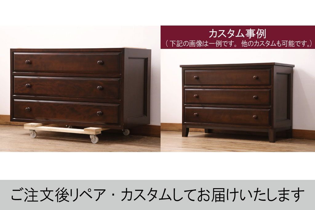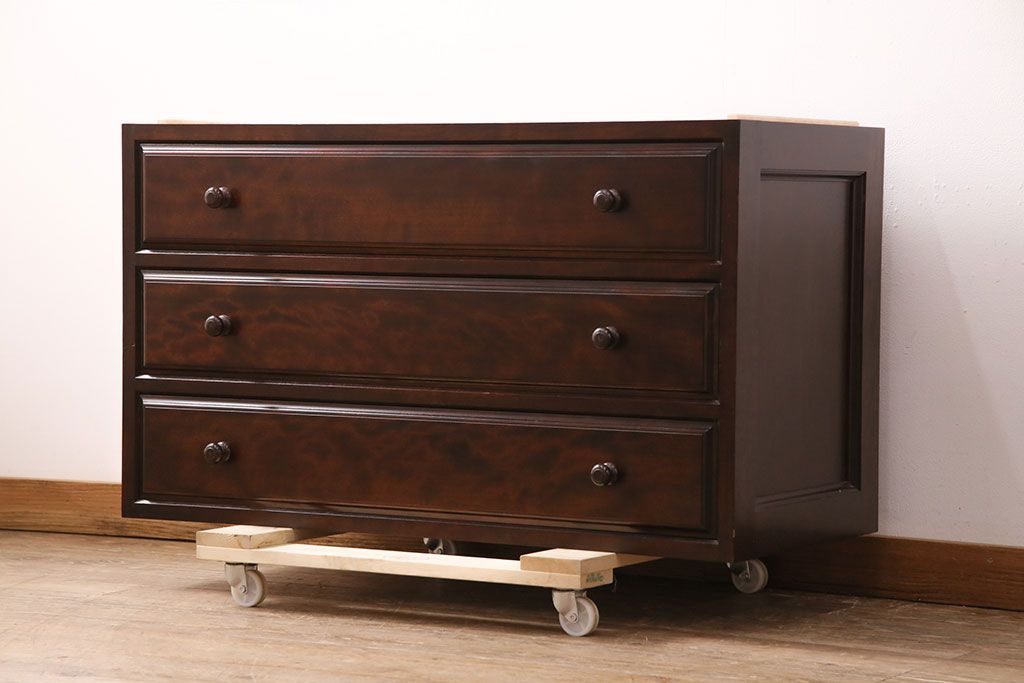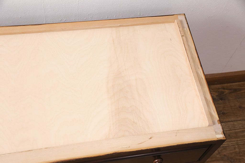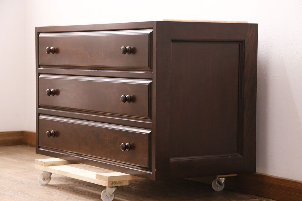 中古 美品 松本民芸家具 天板・脚(台輪)付きリメイク シックな佇まいが魅力!落ち着きのある空間づくりにおすすめのローチェスト(サイドチェスト、引き出し)(R-050366)