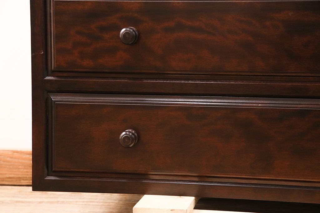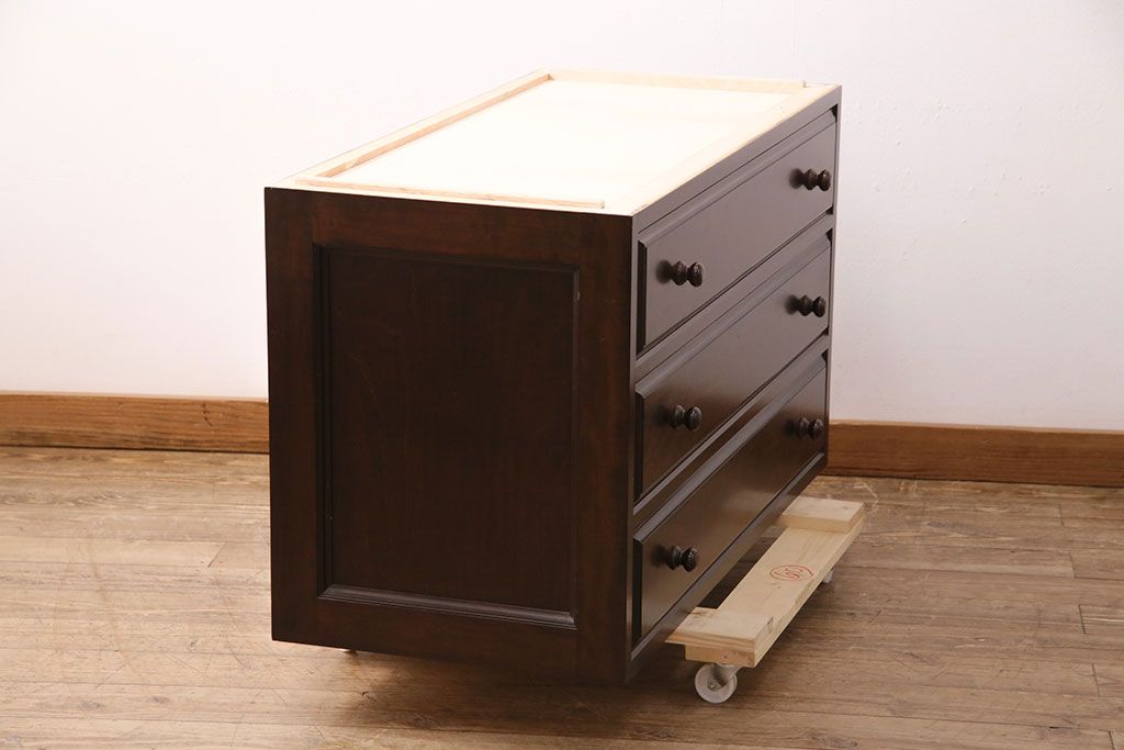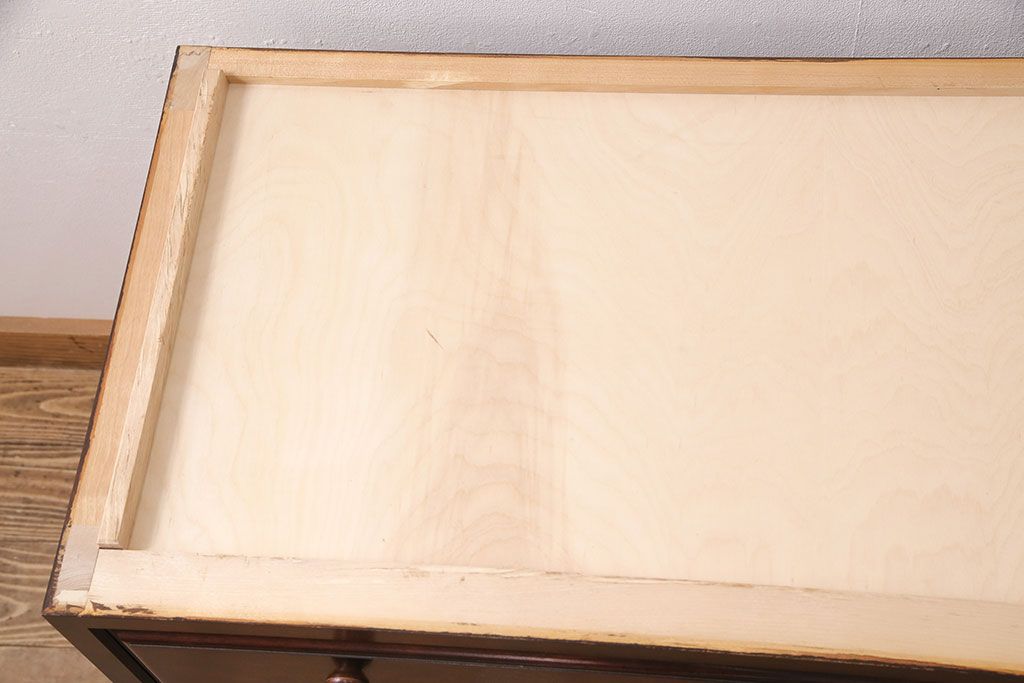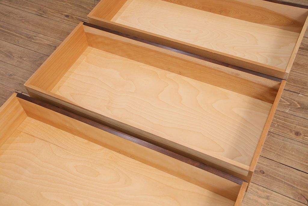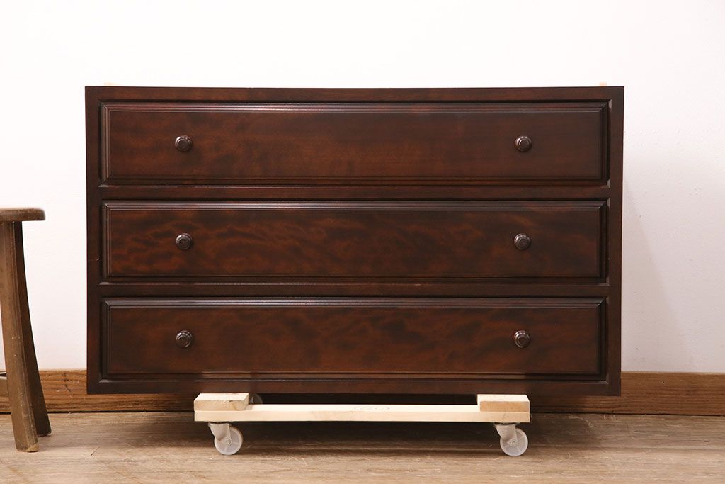 中古 美品 松本民芸家具 天板・脚(台輪)付きリメイク シックな佇まいが魅力!落ち着きのある空間づくりにおすすめのローチェスト(サイドチェスト、引き出し)(R-050366)