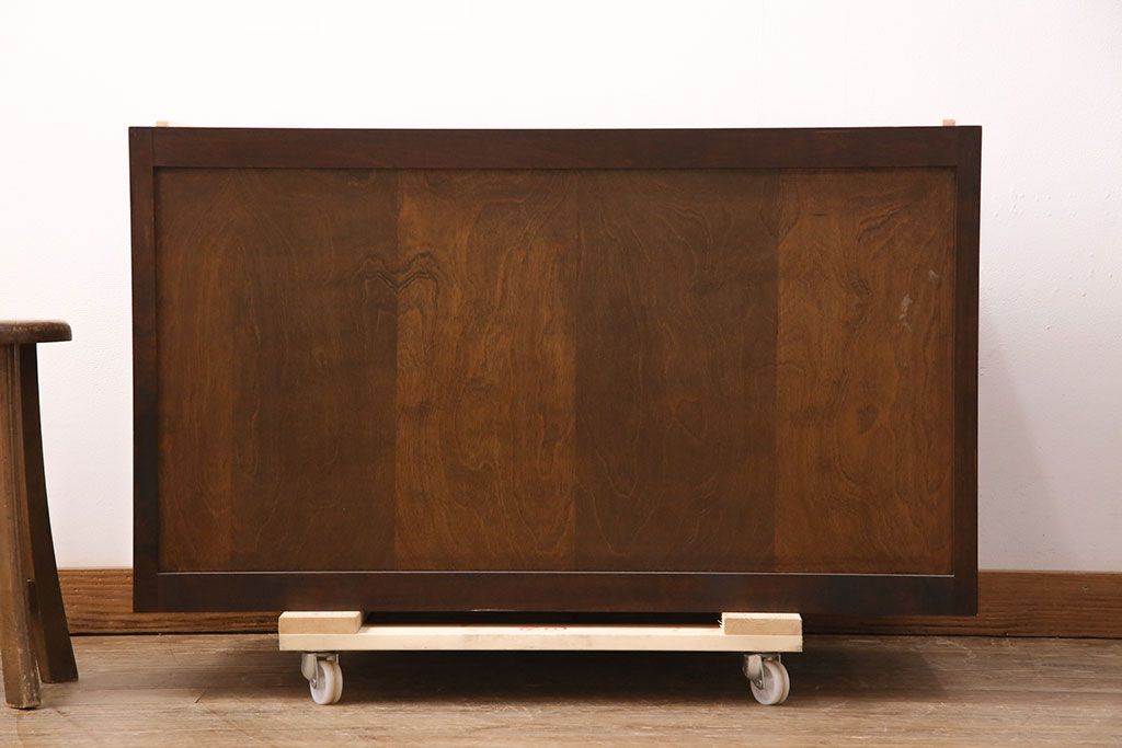 ラフジュ工房> キャビネット・戸棚> テレビ台・ローボード > 中古 美品 松本民芸家具 天板・脚(台輪)付きリメイク シックな佇まいが魅力!落ち着きのある空間づくりにおすすめのローチェスト(サイドチェスト、引き出し)(R-050366)