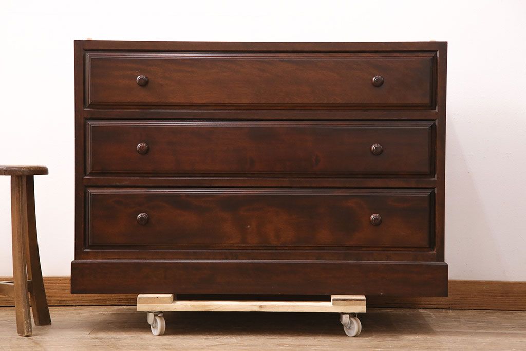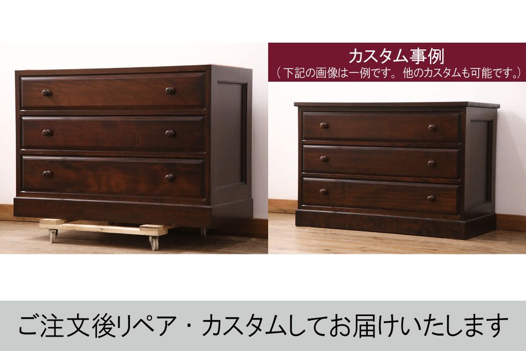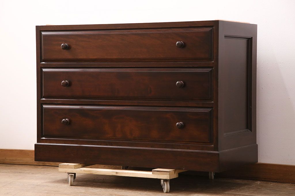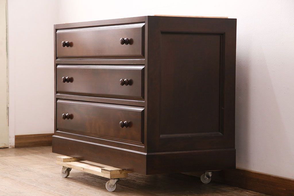 チェスト・引き出し> ローチェスト > 中古 美品 松本民芸家具 当店リメイク シックな佇まいが魅力!落ち着きのある空間づくりにおすすめのローチェスト(サイドチェスト、引き出し)(R-050367)