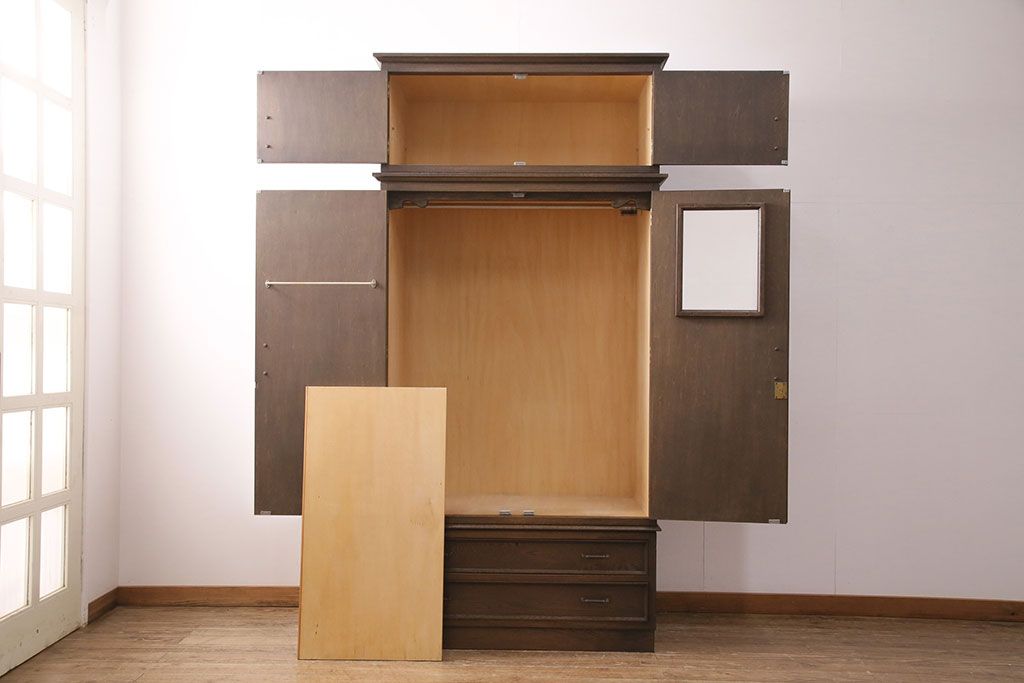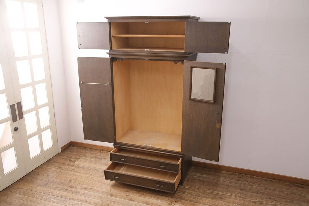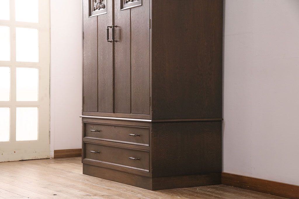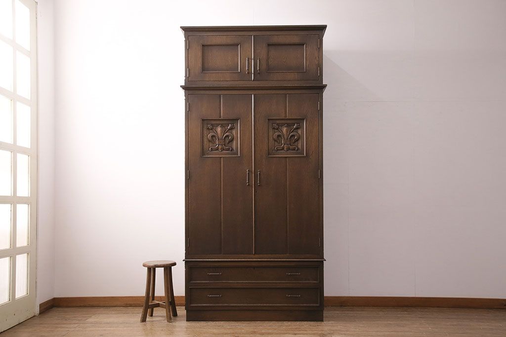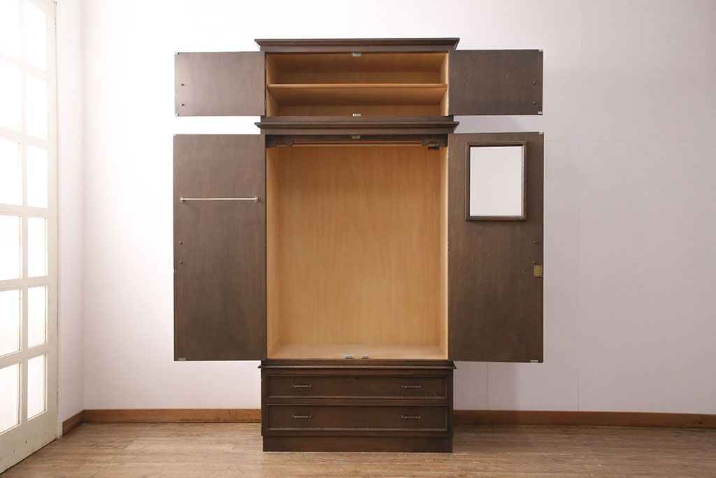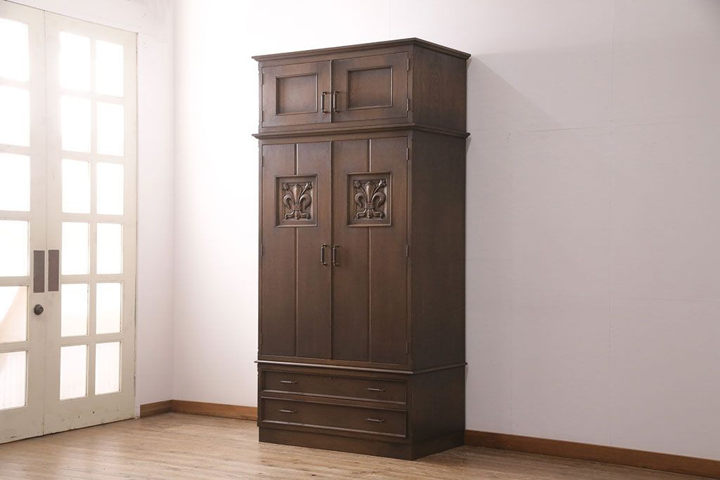 中古 美品 神戸家具 永田良介商店 レリーフのがアクセントの上置き棚付きのワードローブ(洋服タンス)(R-050472)