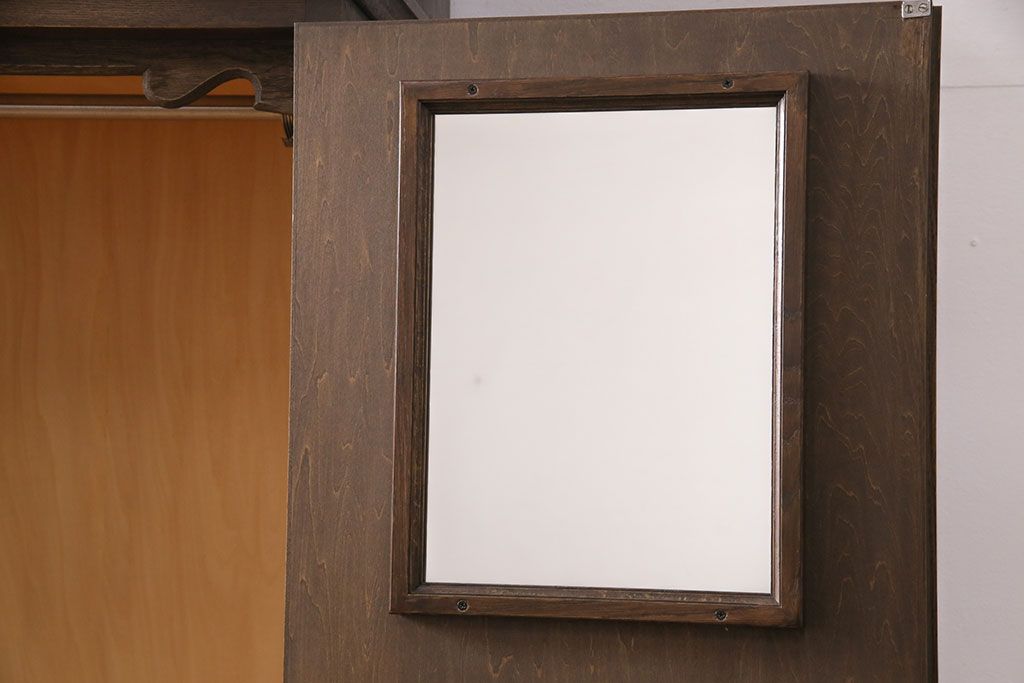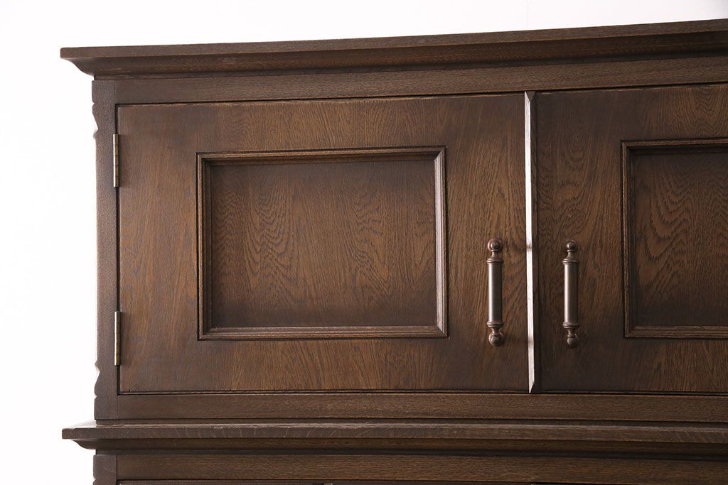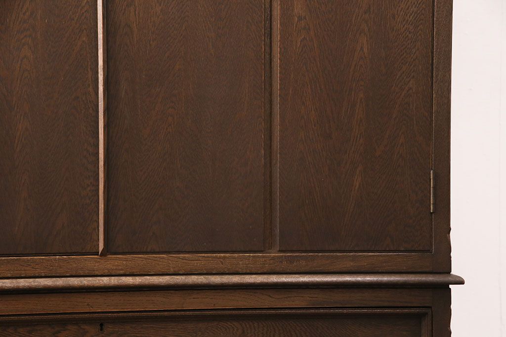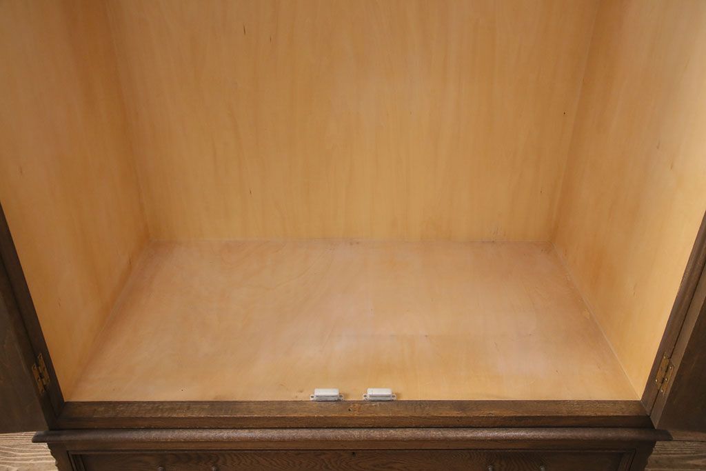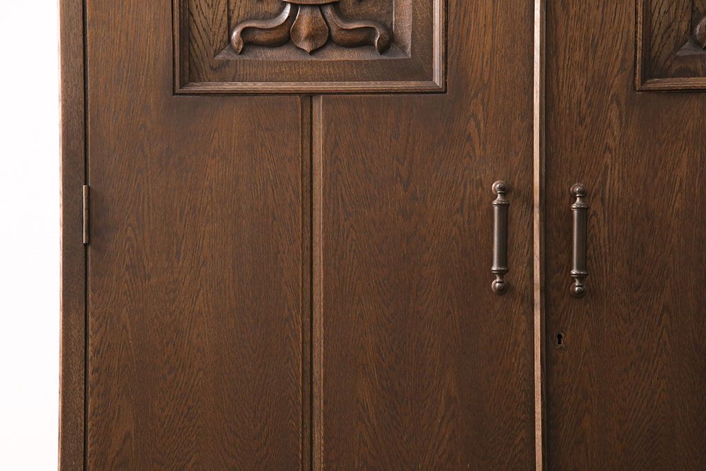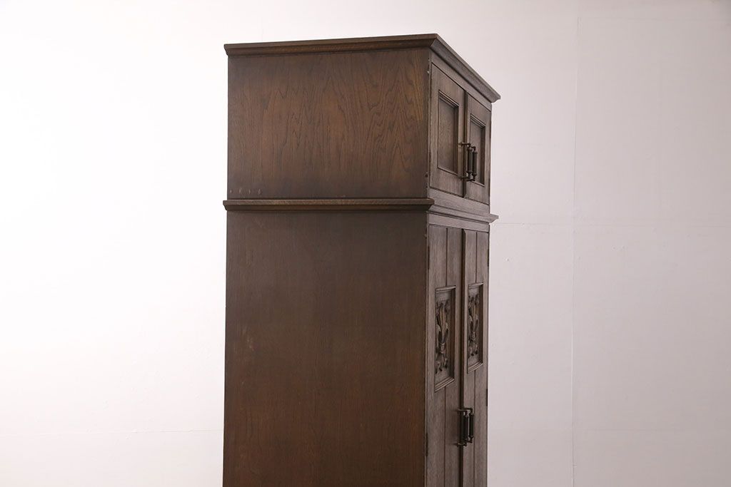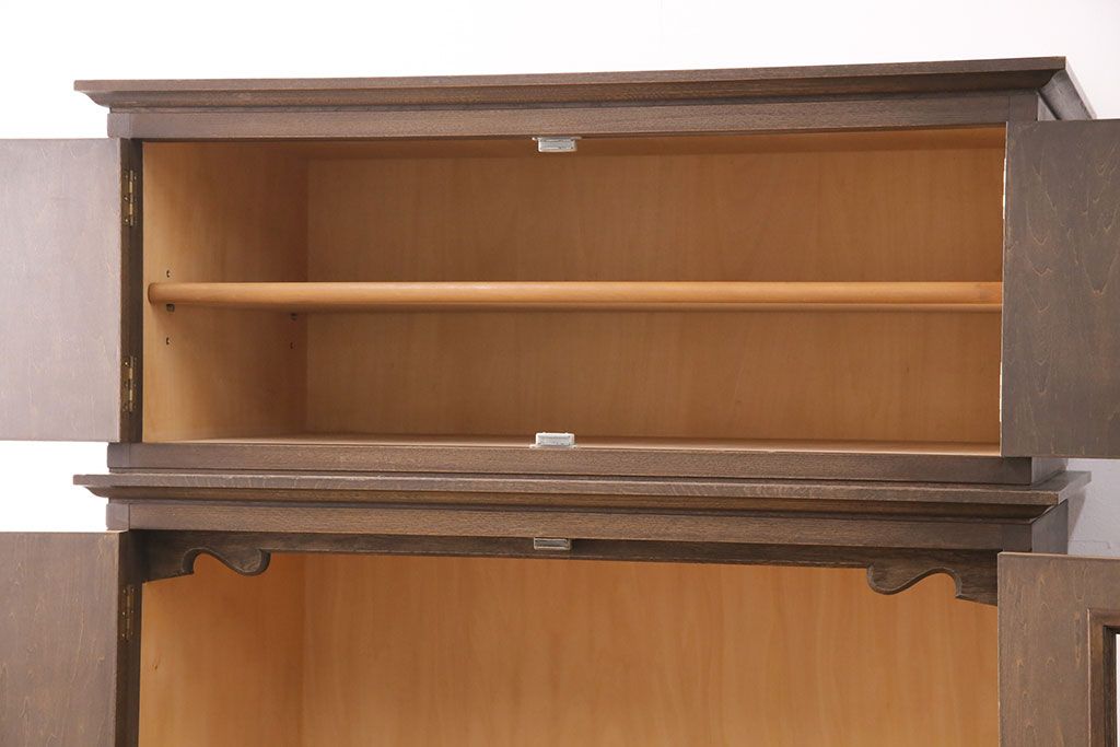 中古 美品 神戸家具 永田良介商店 レリーフのがアクセントの上置き棚付きのワードローブ(洋服タンス)(R-050472)