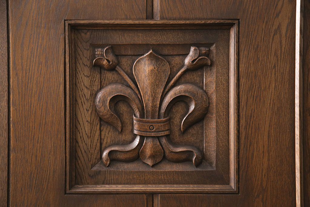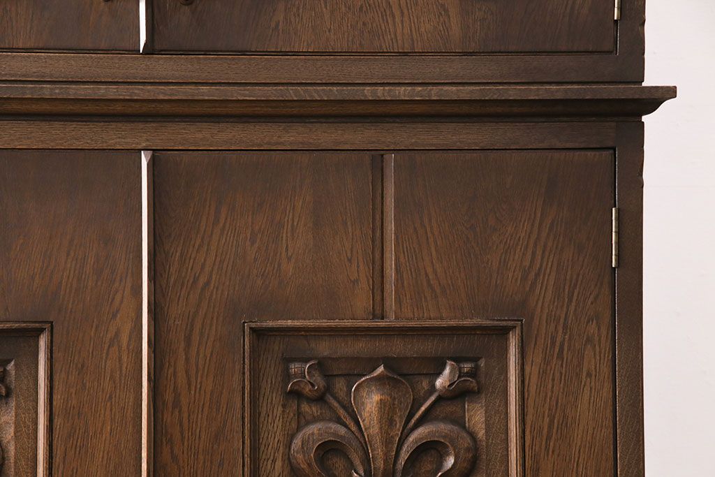 お問い合わせいただければ、優先してアップいたします。中古 美品 神戸家具 永田良介商店 レリーフのがアクセントの上置き棚付きのワードローブ(洋服タンス)(R-050472)です。