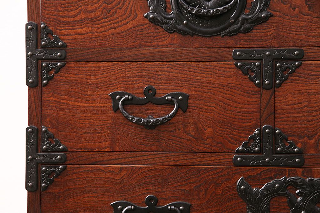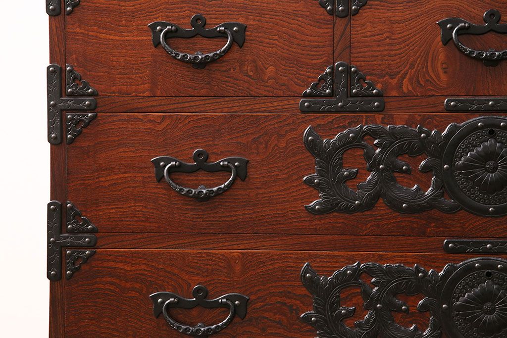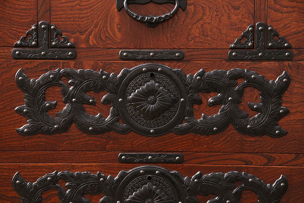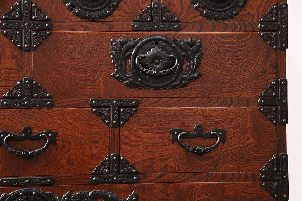 和箪笥> 衣装箪笥 > 中古 美品 岩谷堂箪笥 黒々とした迫力のある金具が目を引く整理箪笥(収納タンス、衣装箪笥、引き出し)(R-050470)