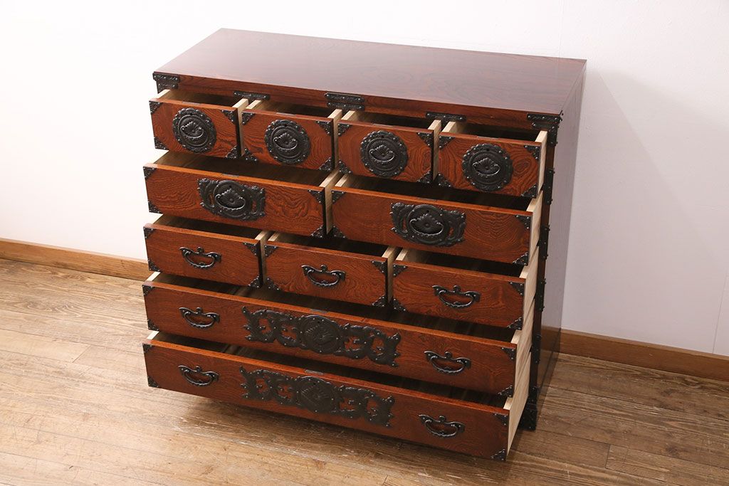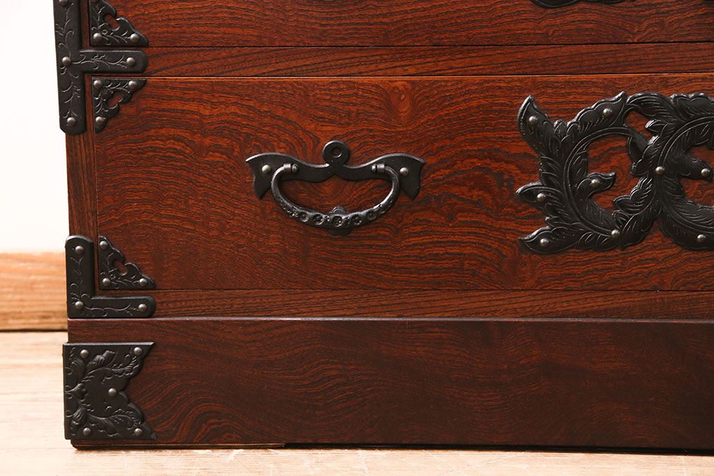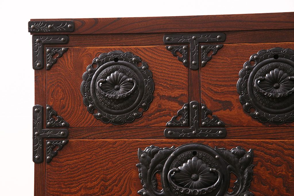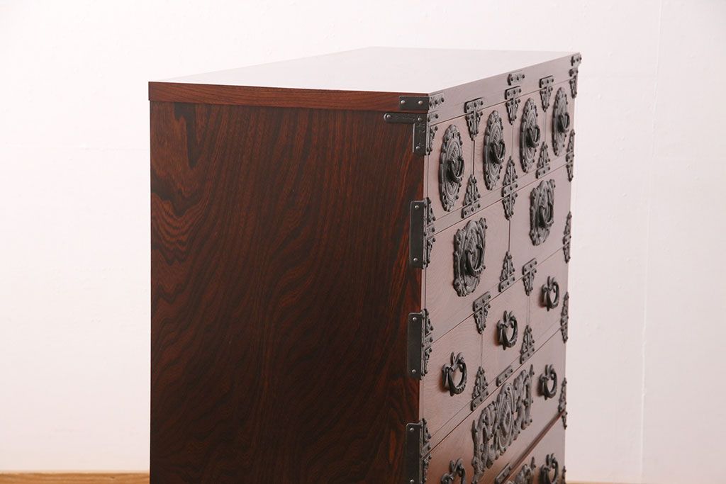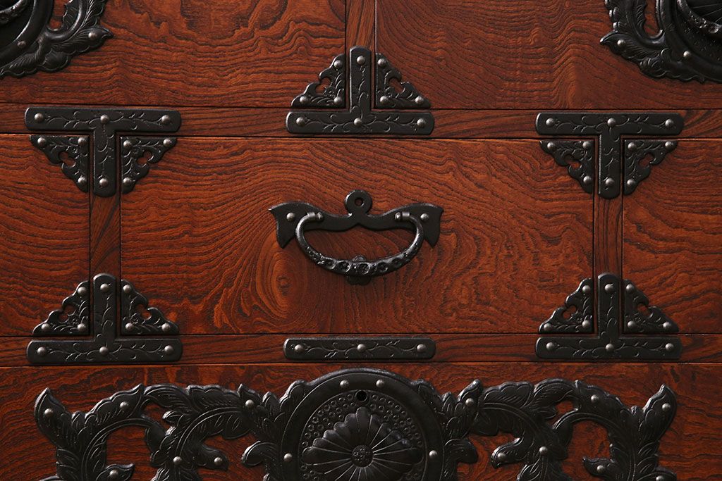 和箪笥> 衣装箪笥 > 中古 美品 岩谷堂箪笥 黒々とした迫力のある金具が目を引く整理箪笥(収納タンス、衣装箪笥、引き出し)(R-050470)