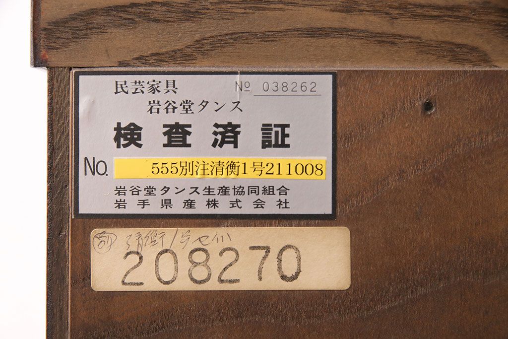 民芸家具 > 中古 美品 岩谷堂箪笥 黒々とした迫力のある金具が目を引く整理箪笥(収納タンス、衣装箪笥、引き出し)(R-050470)