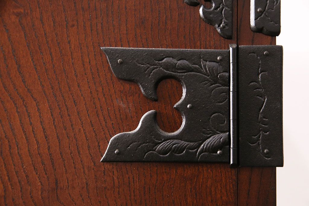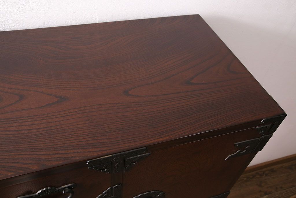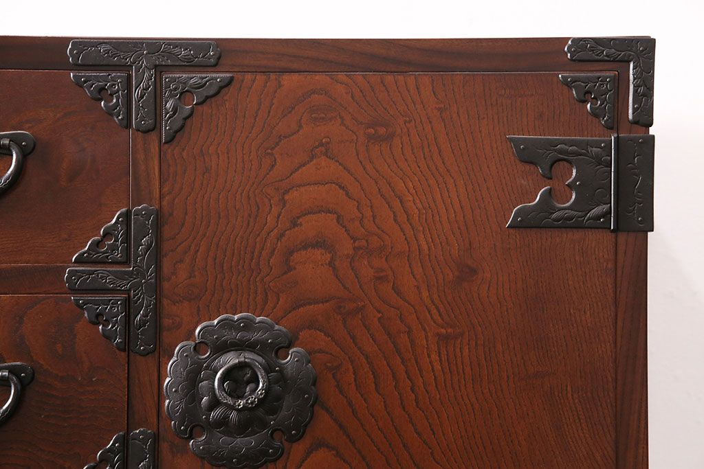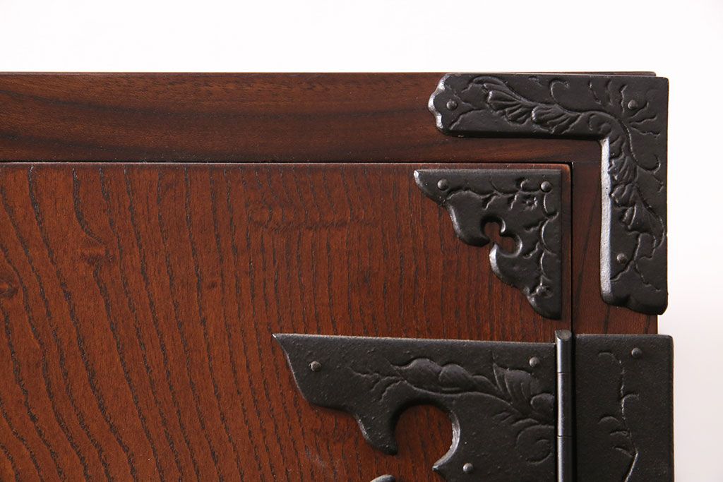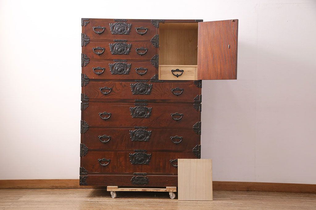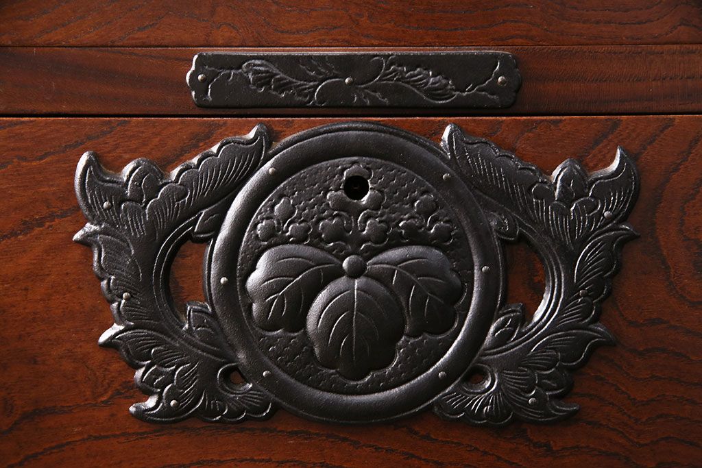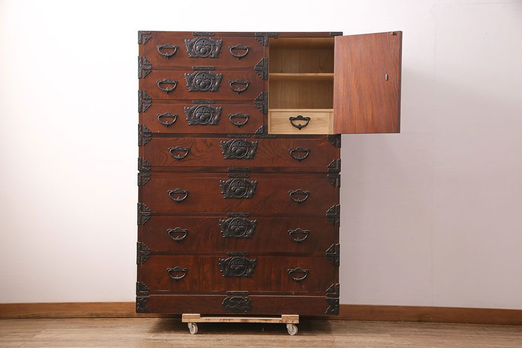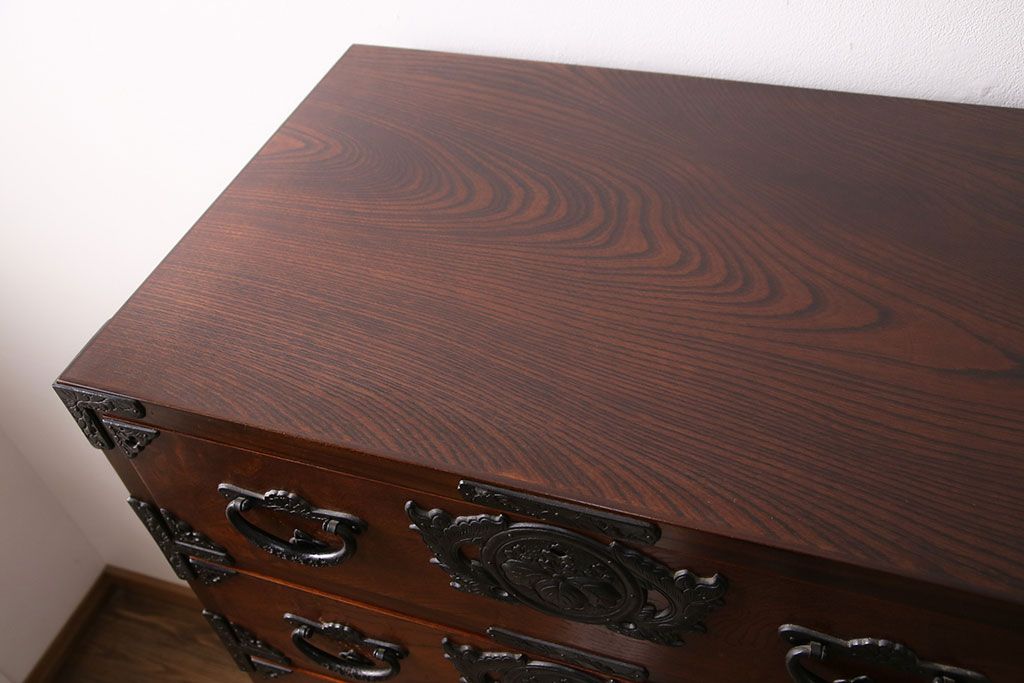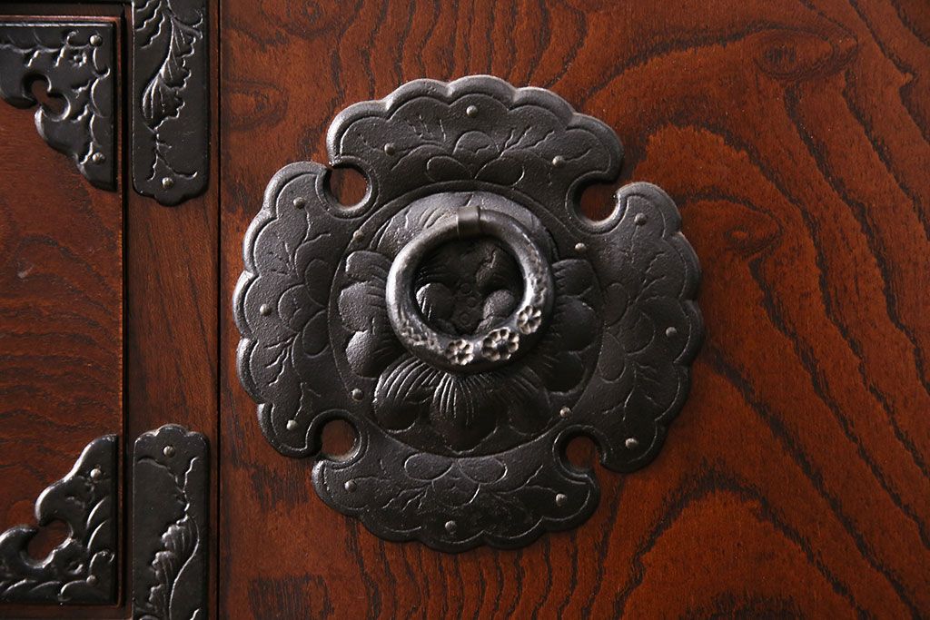 ラフジュ工房> 和箪笥> 衣装箪笥 > 中古 岩谷堂箪笥 黒々とした金具が堂々とした存在感を放つ重ね箪笥(引き出し、衣装箪笥、収納タンス、上下バラ売り可能)(R-050473)