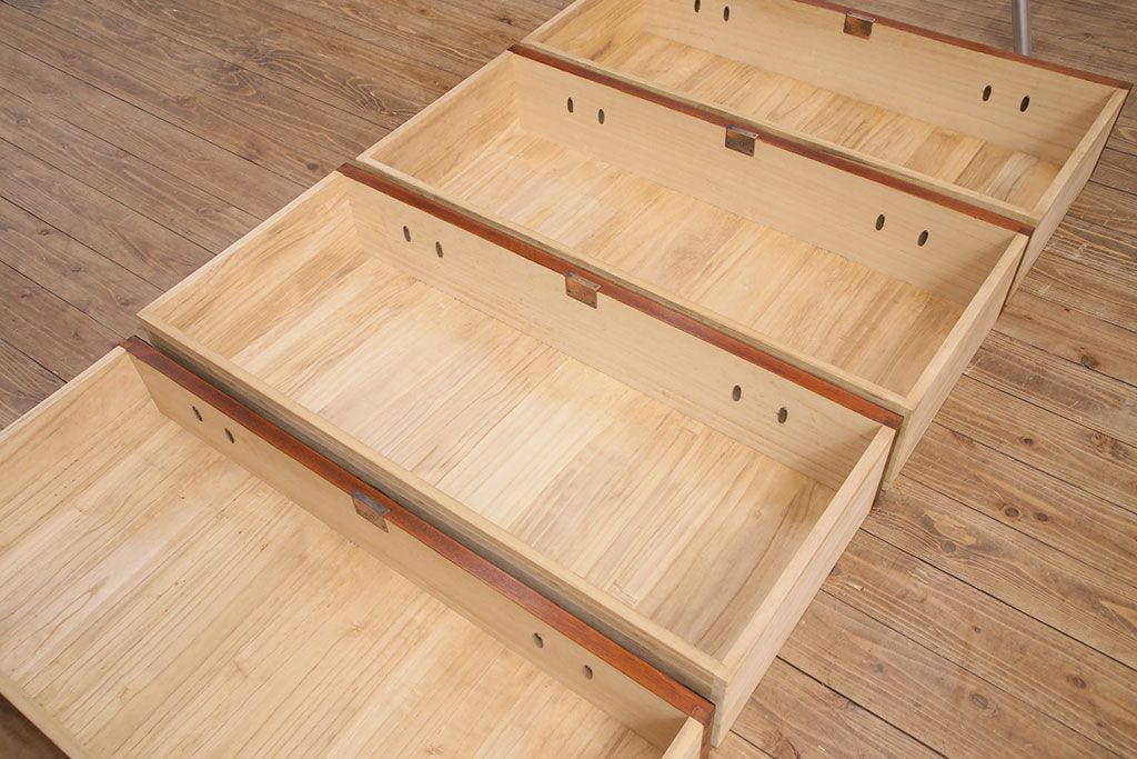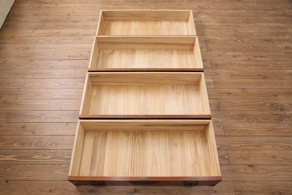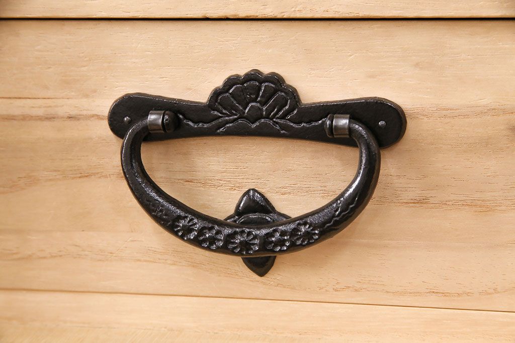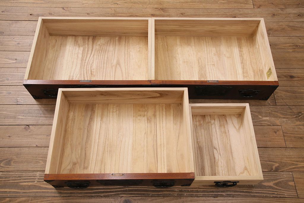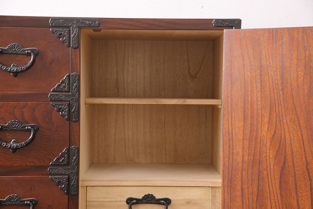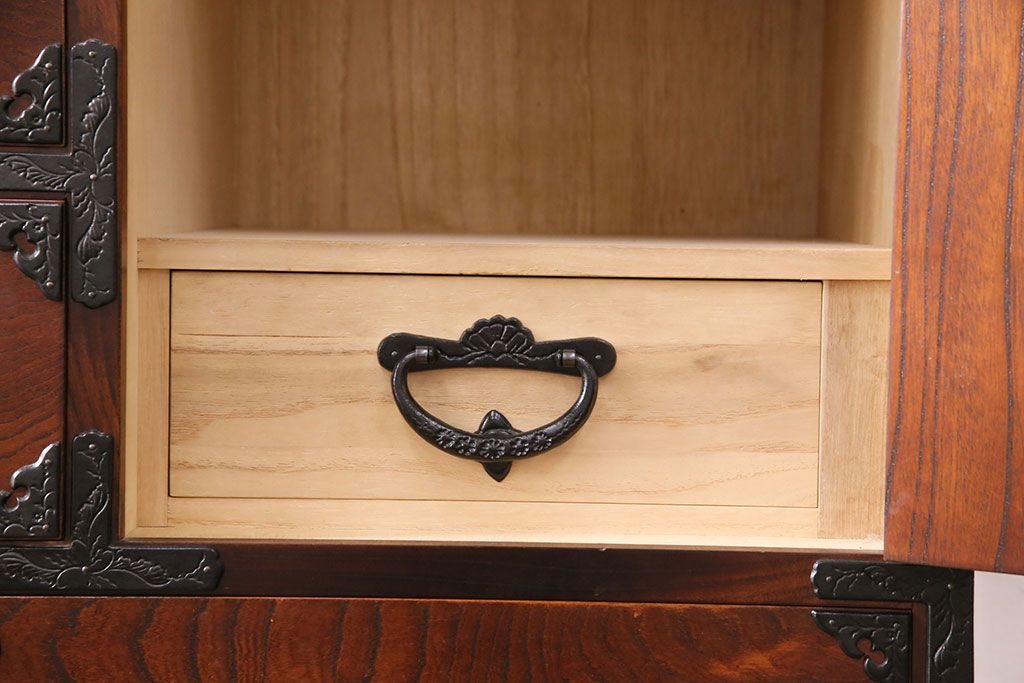 ラフジュ工房> 民芸家具 > 中古 岩谷堂箪笥 黒々とした金具が堂々とした存在感を放つ重ね箪笥(引き出し、衣装箪笥、収納タンス、上下バラ売り可能)(R-050473)