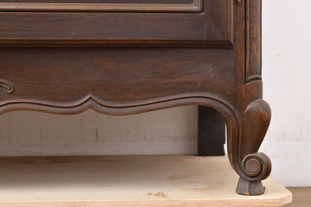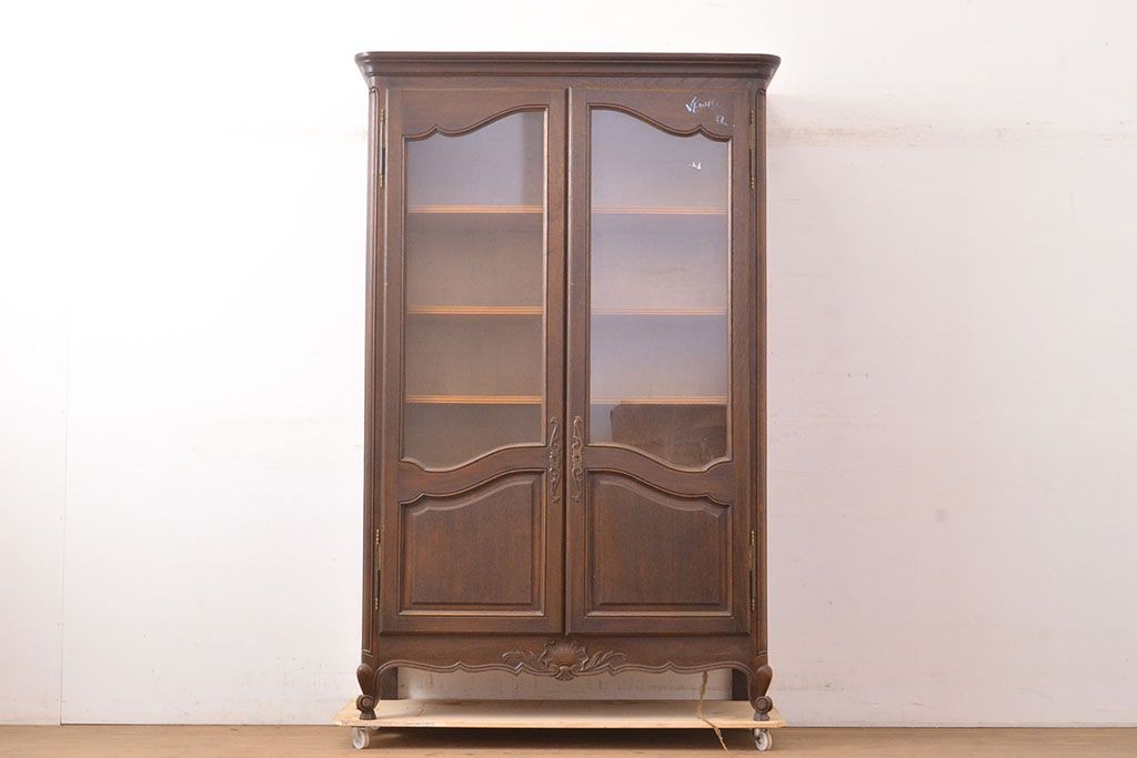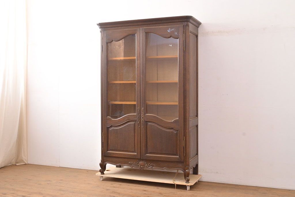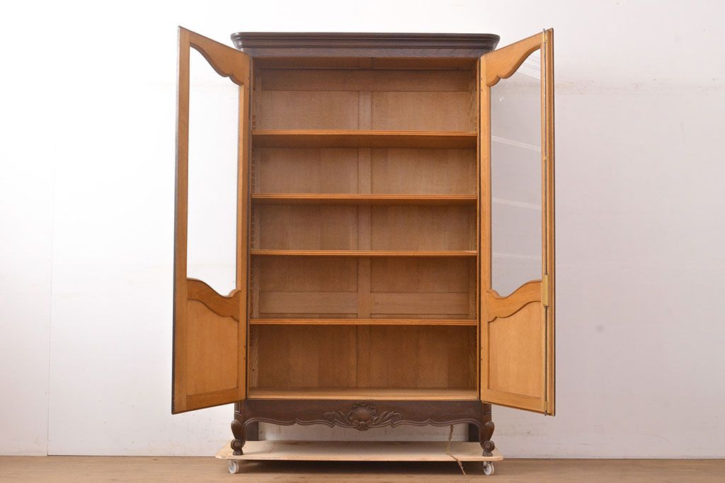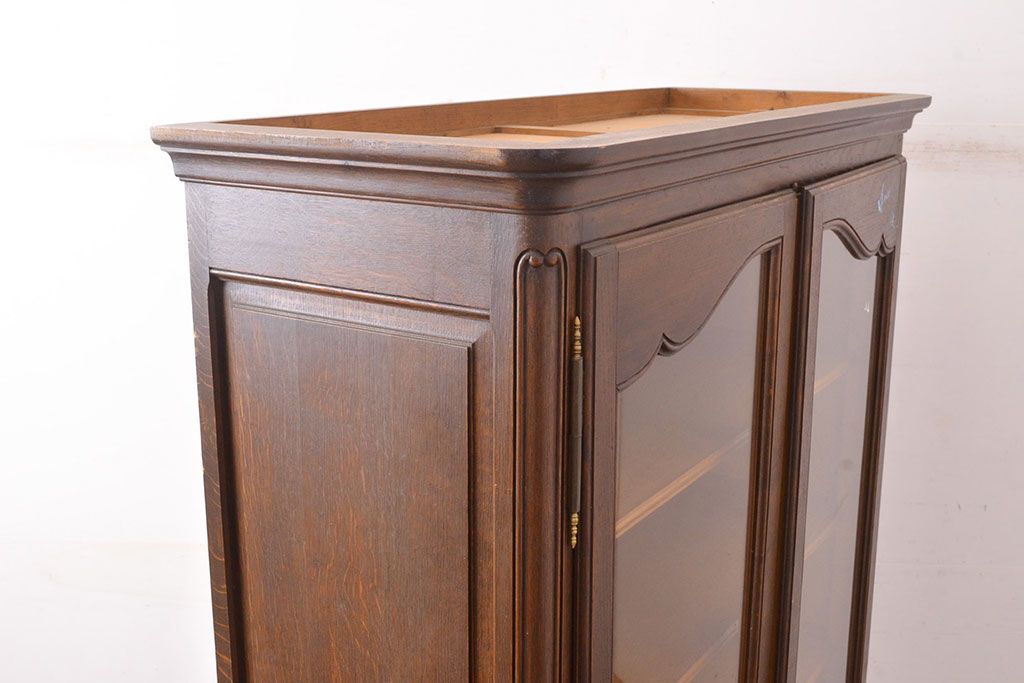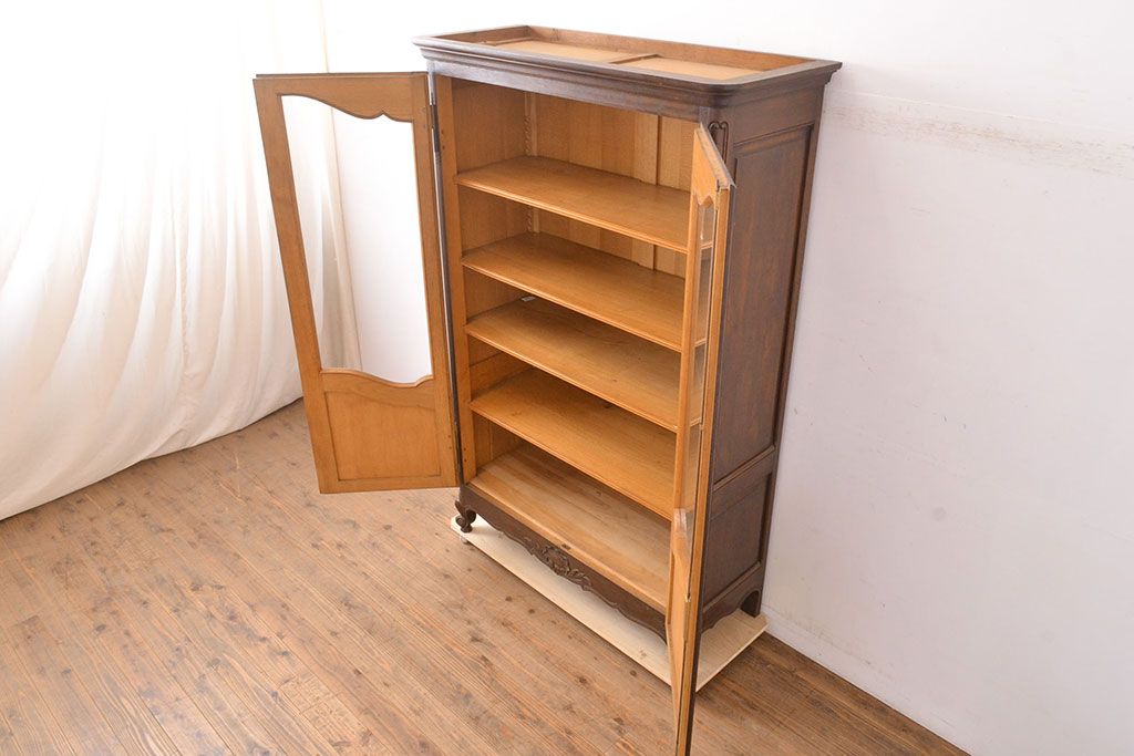 キャビネット・戸棚> 本箱 > フランスアンティーク 優美なレリーフが上品な印象を高めるオーク材製キャビネット(収納棚、戸棚、飾り棚、本箱、ブックケース)(R-049474)