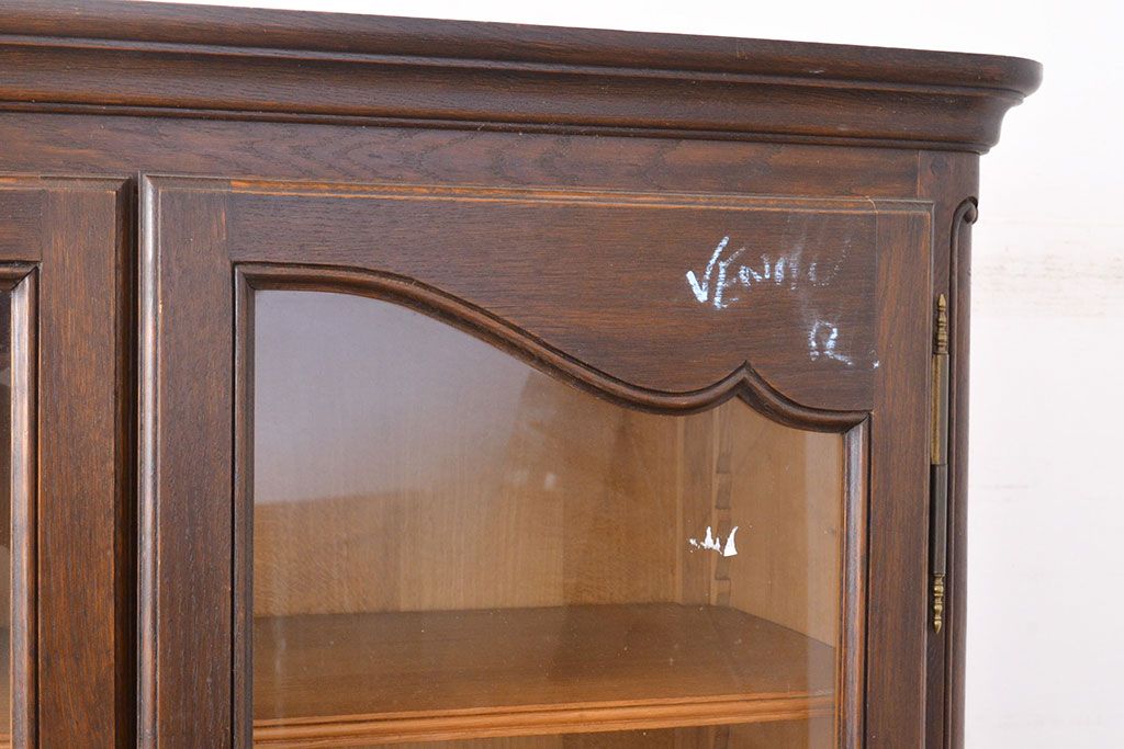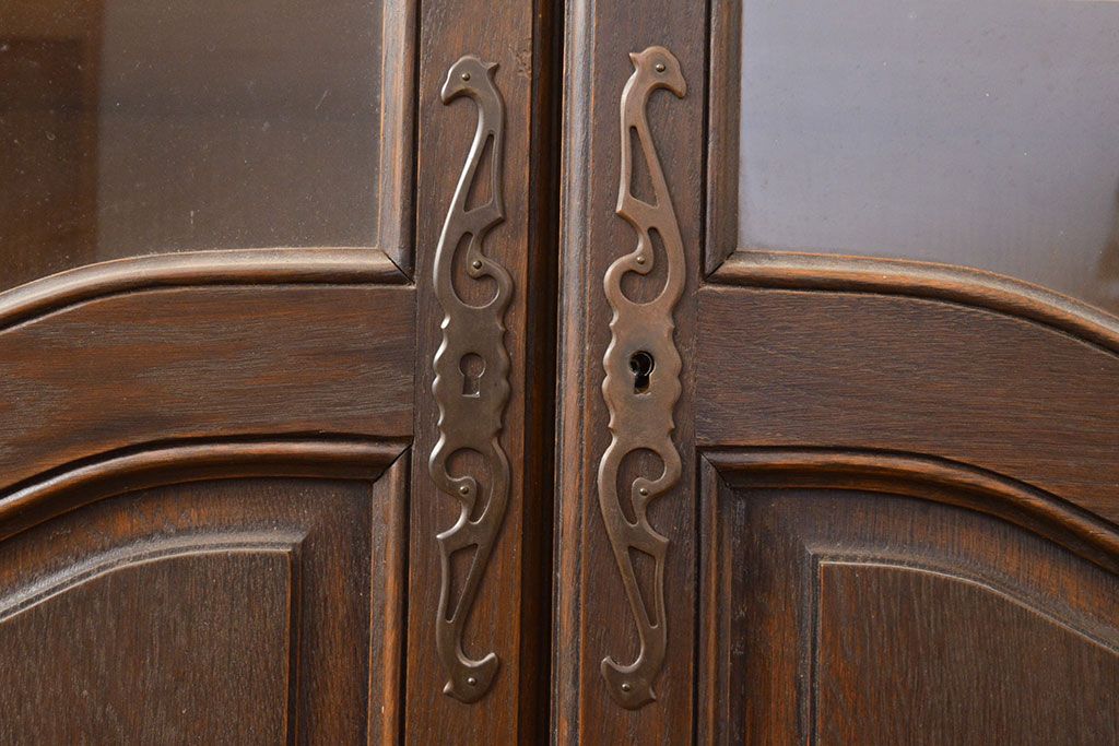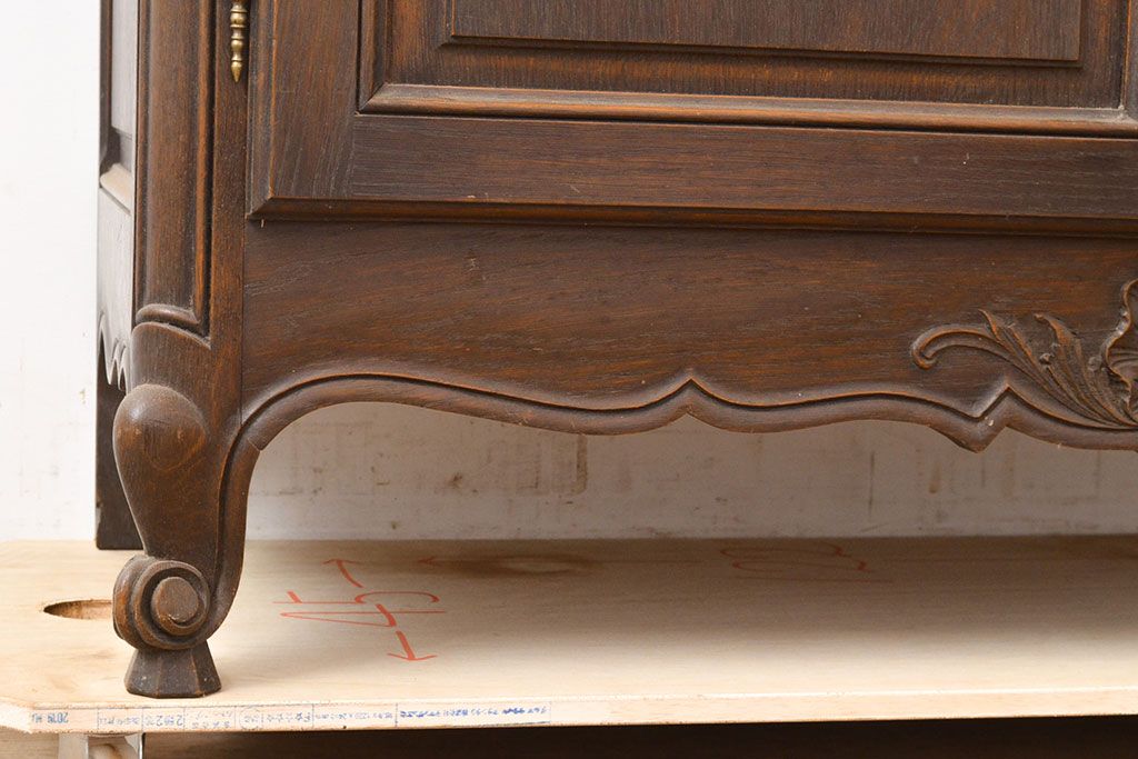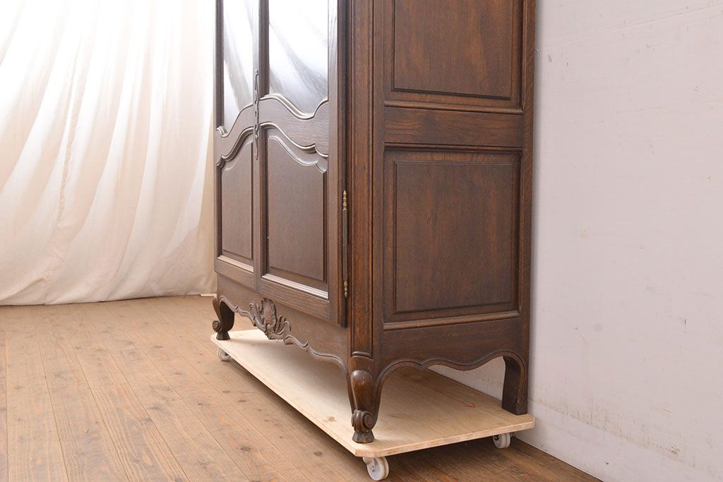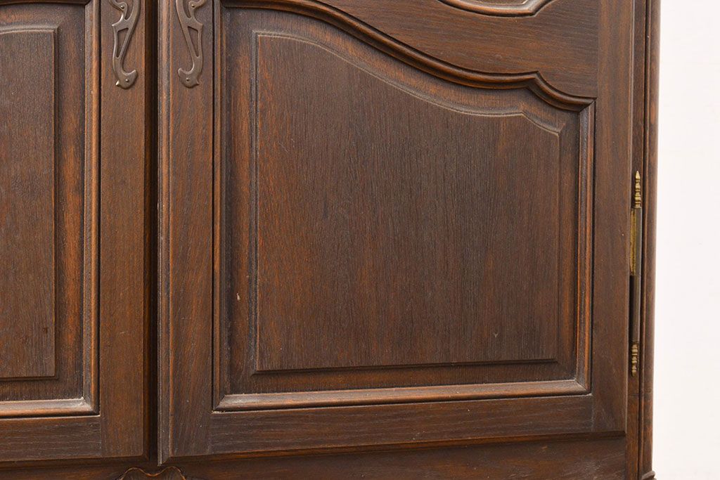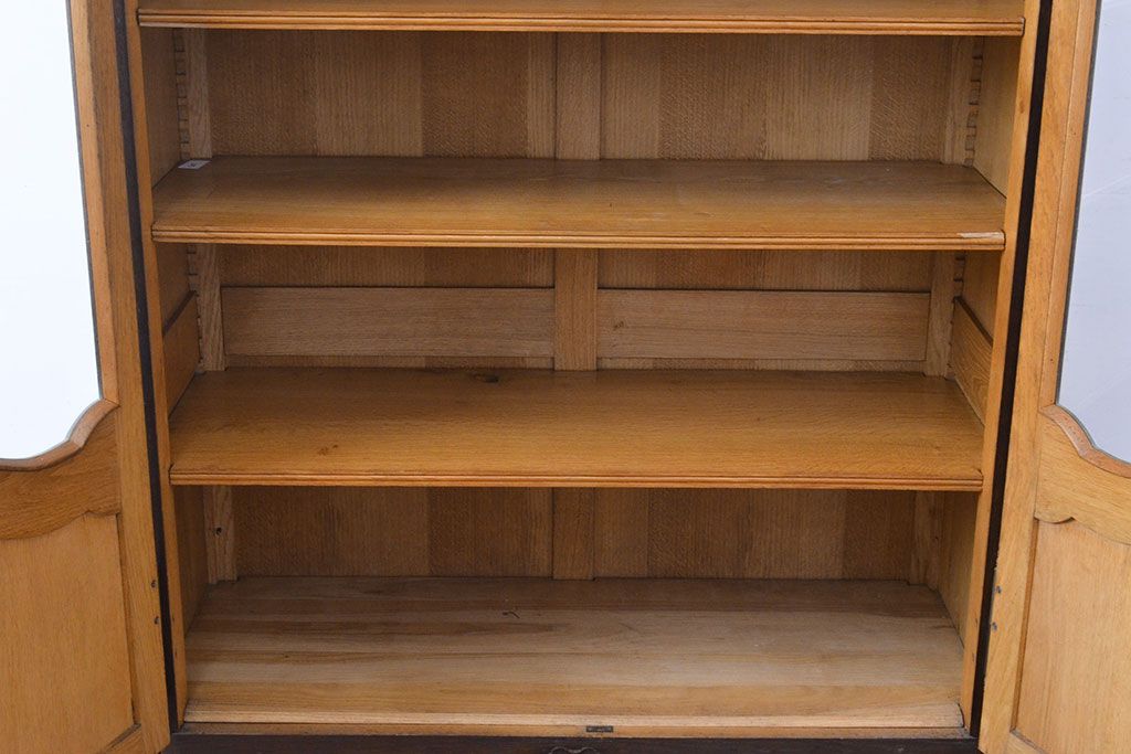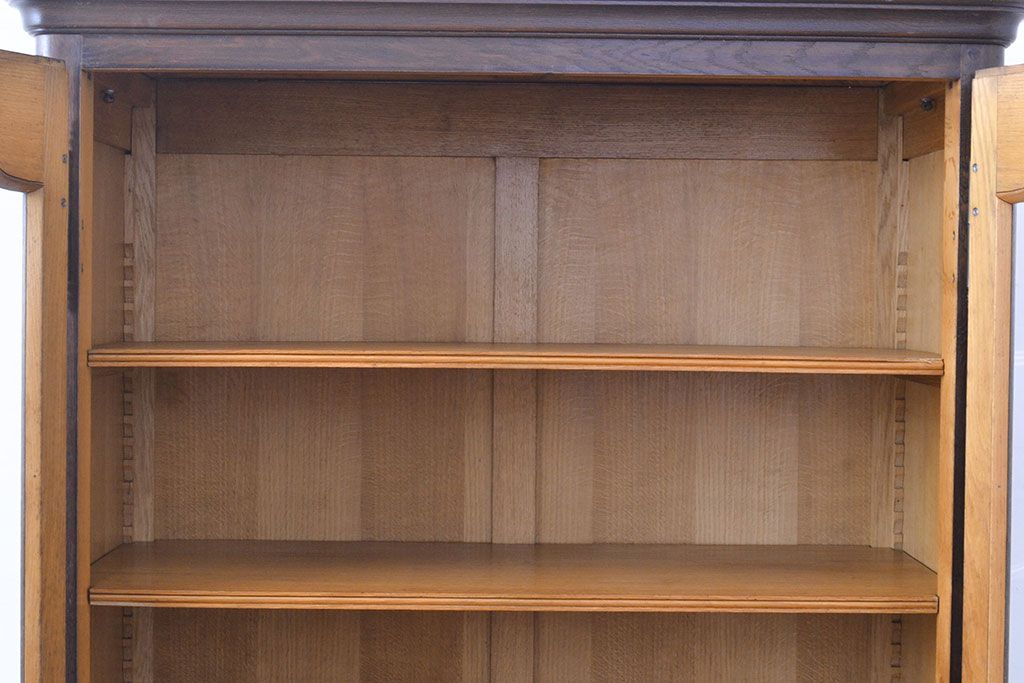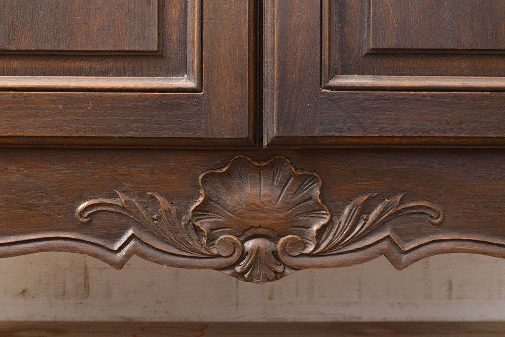フランスアンティーク 優美なレリーフが上品な印象を高めるオーク材製キャビネット(収納棚、戸棚、飾り棚、本箱、ブックケース)(R-049474)