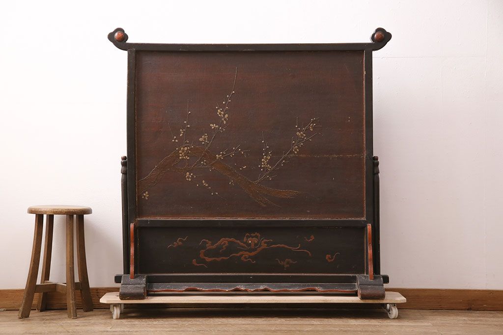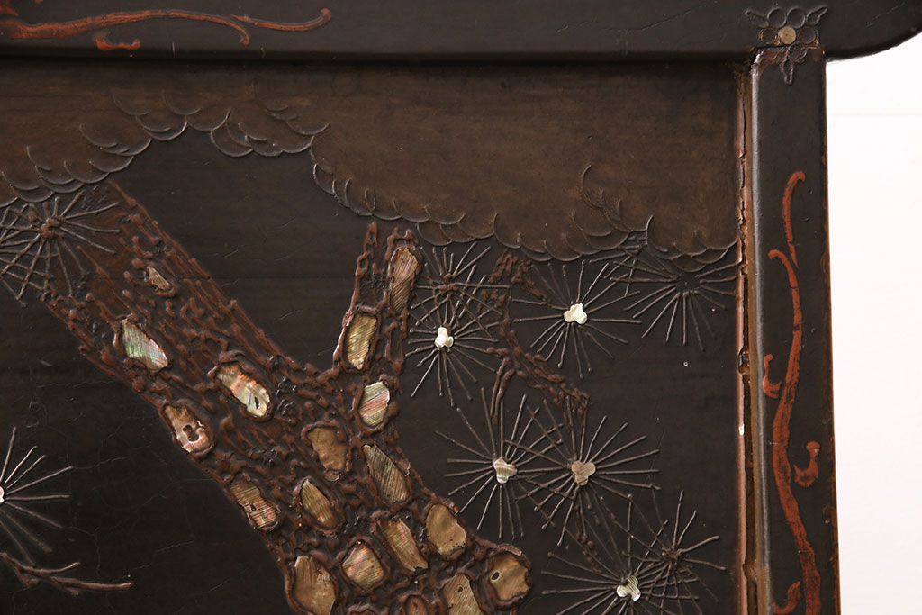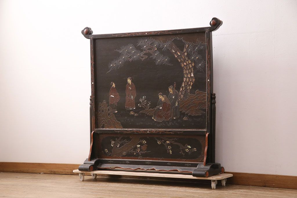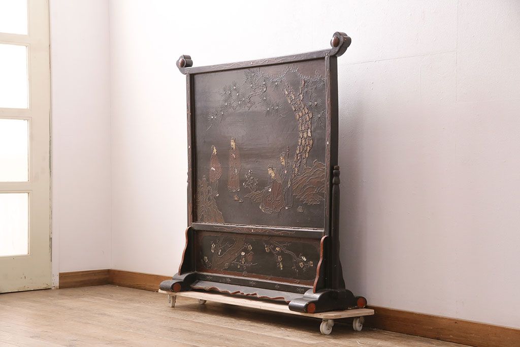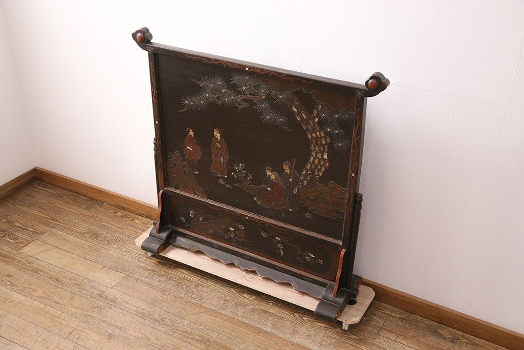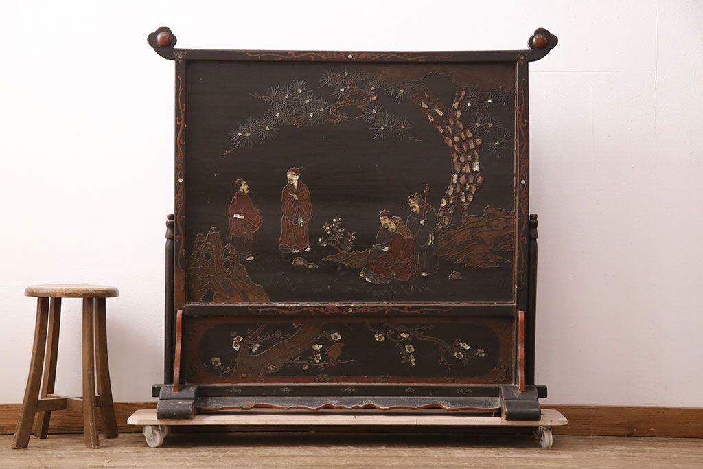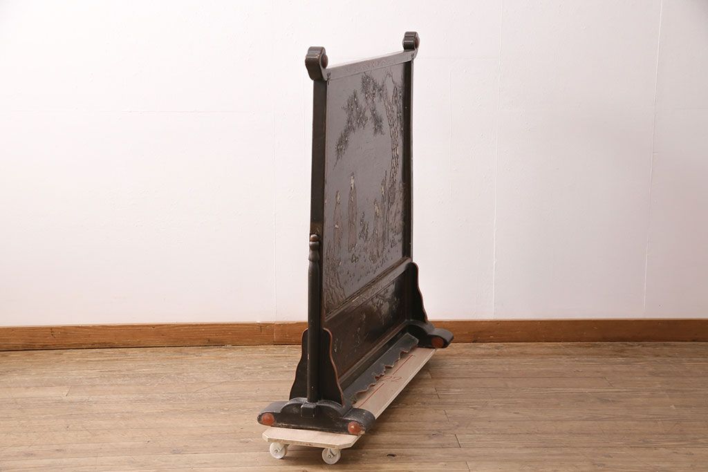 【簡易リペア限定品】和製アンティーク 希少品!漆絵と螺鈿細工が施された、趣ある佇まいの時代衝立(つい立て、パーテーション)(R-050454)