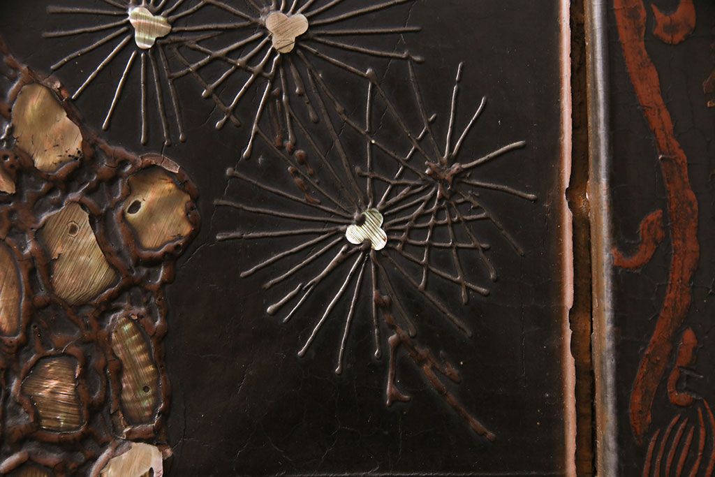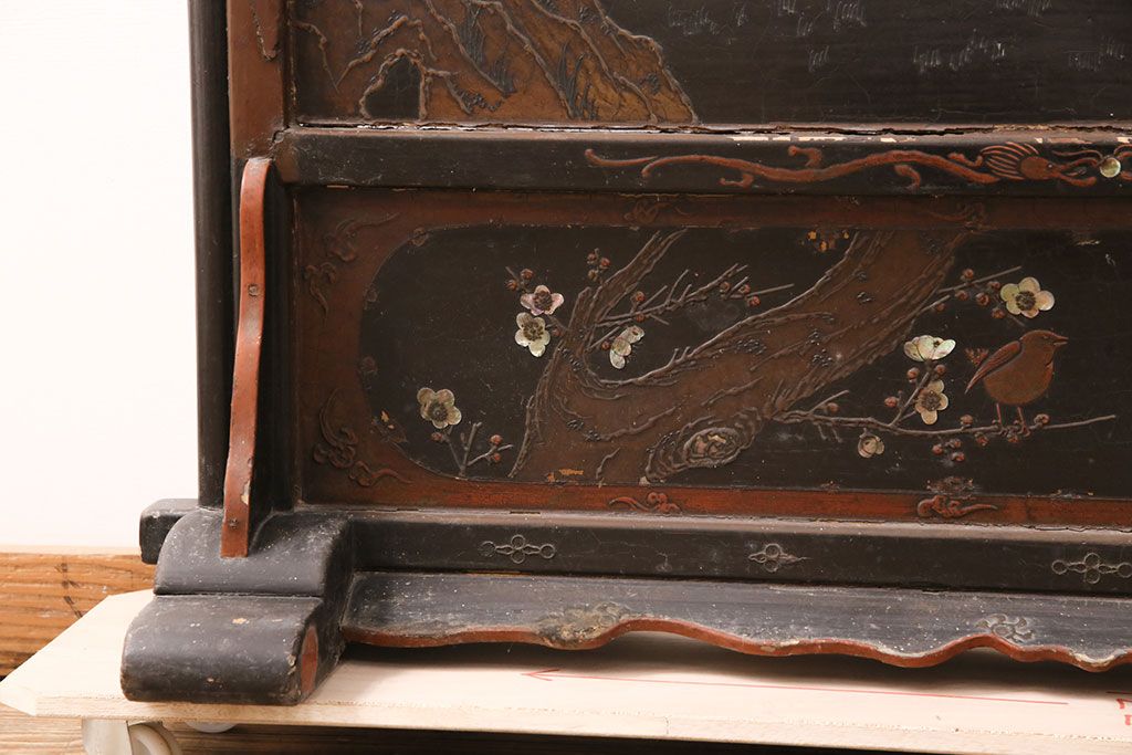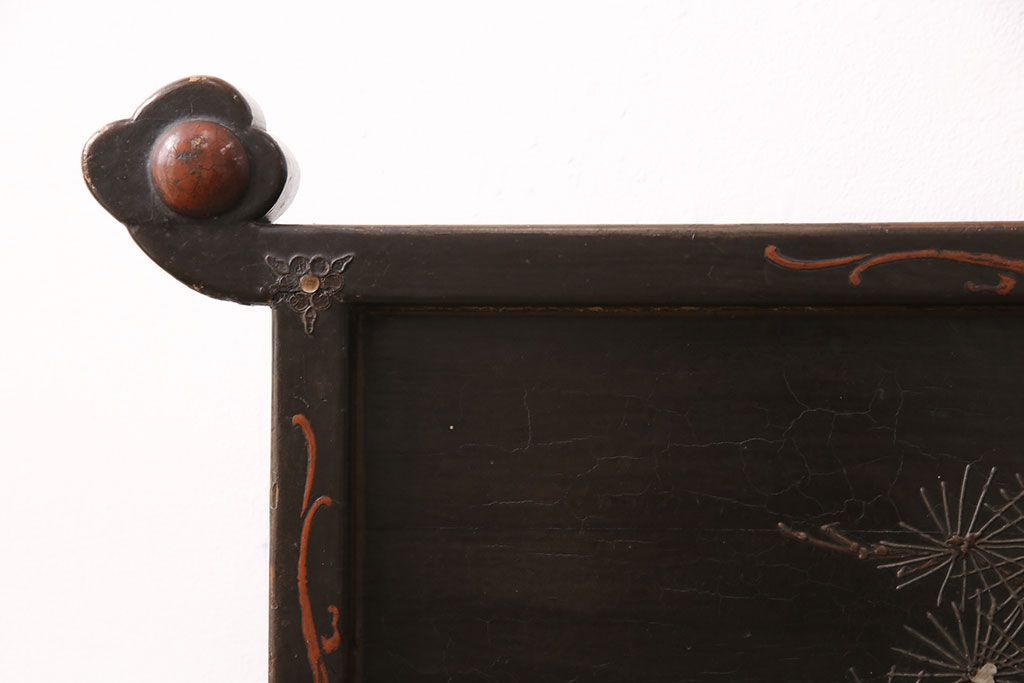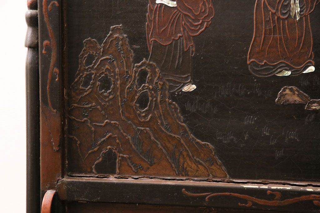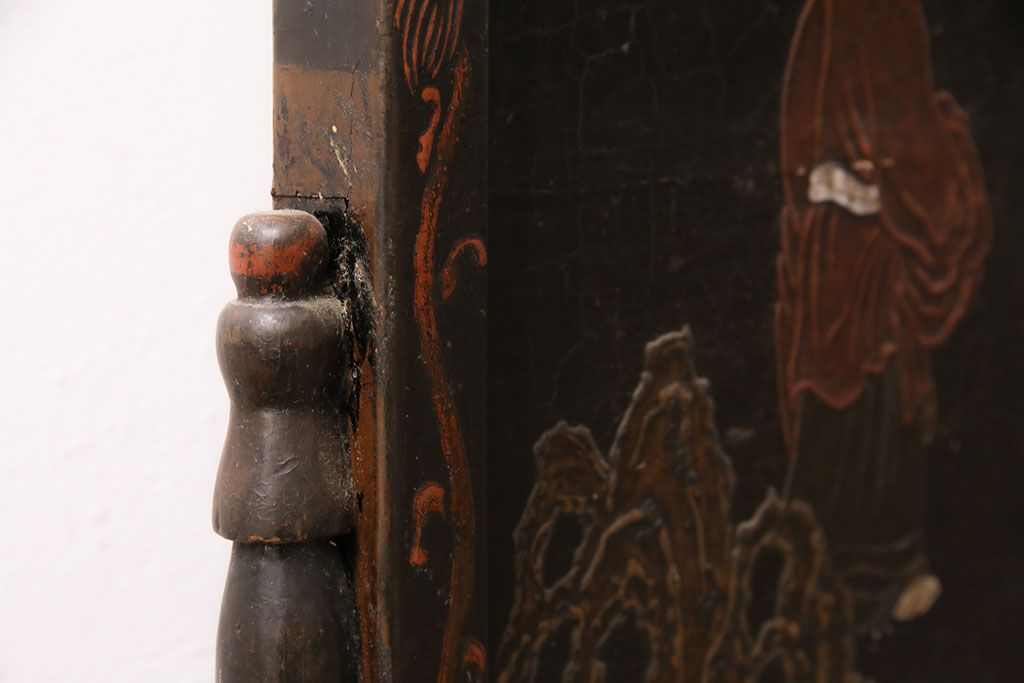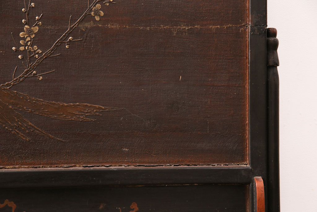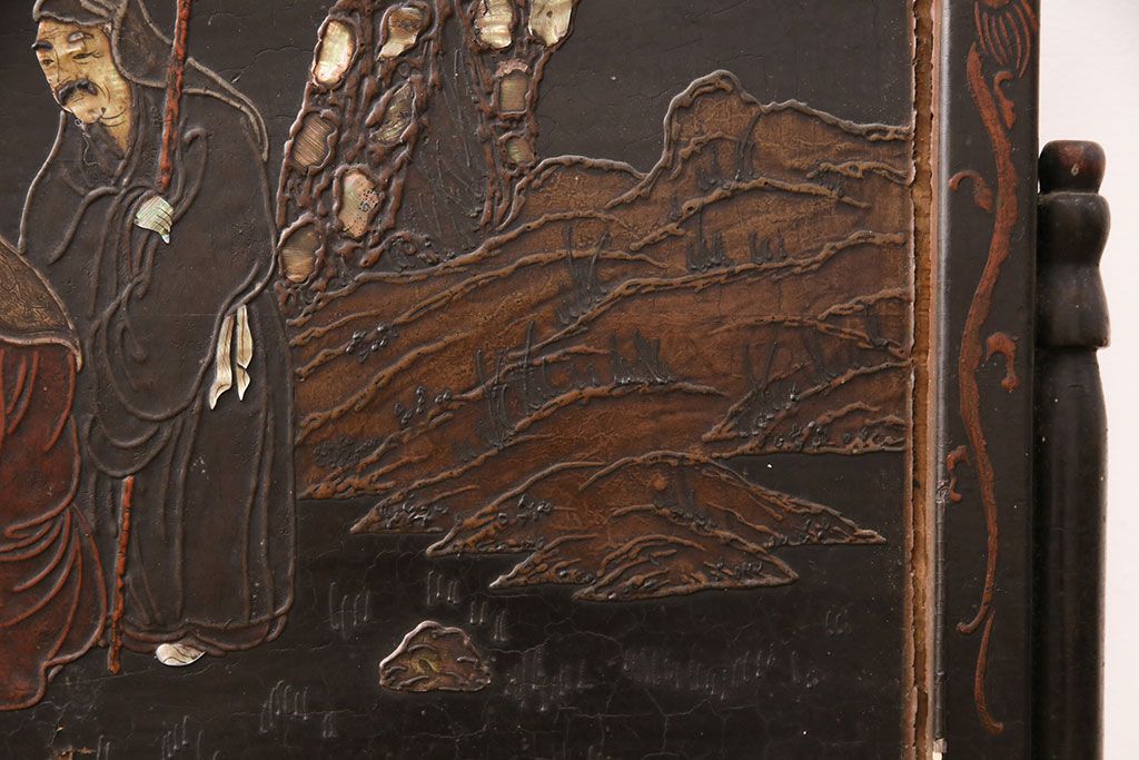 【簡易リペア限定品】和製アンティーク 希少品!漆絵と螺鈿細工が施された、趣ある佇まいの時代衝立(つい立て、パーテーション)(R-050454)