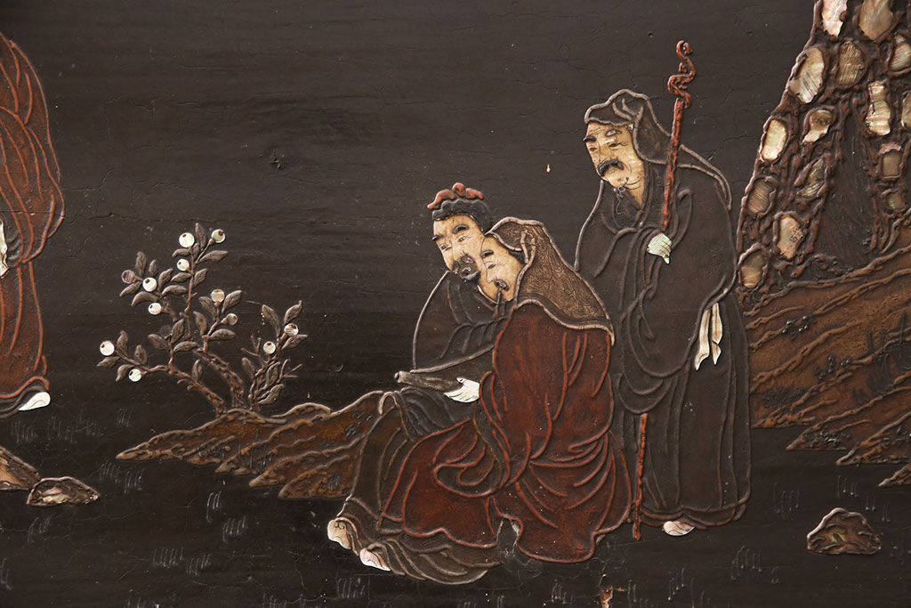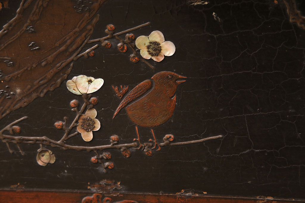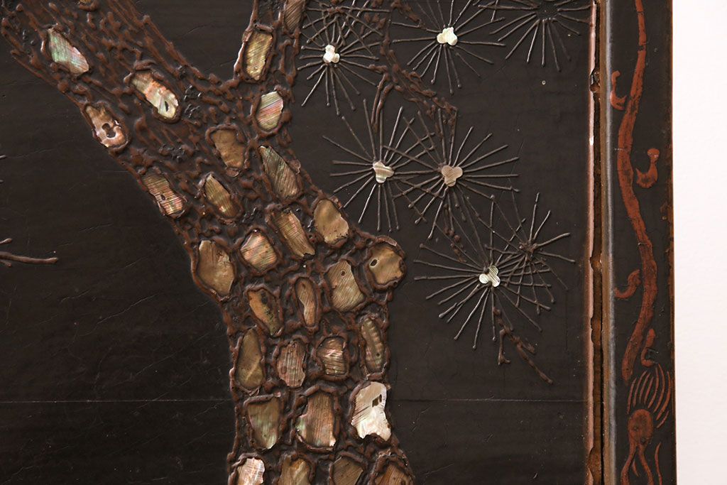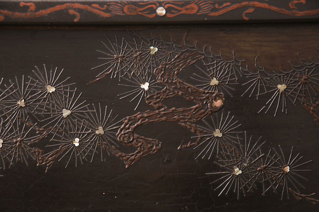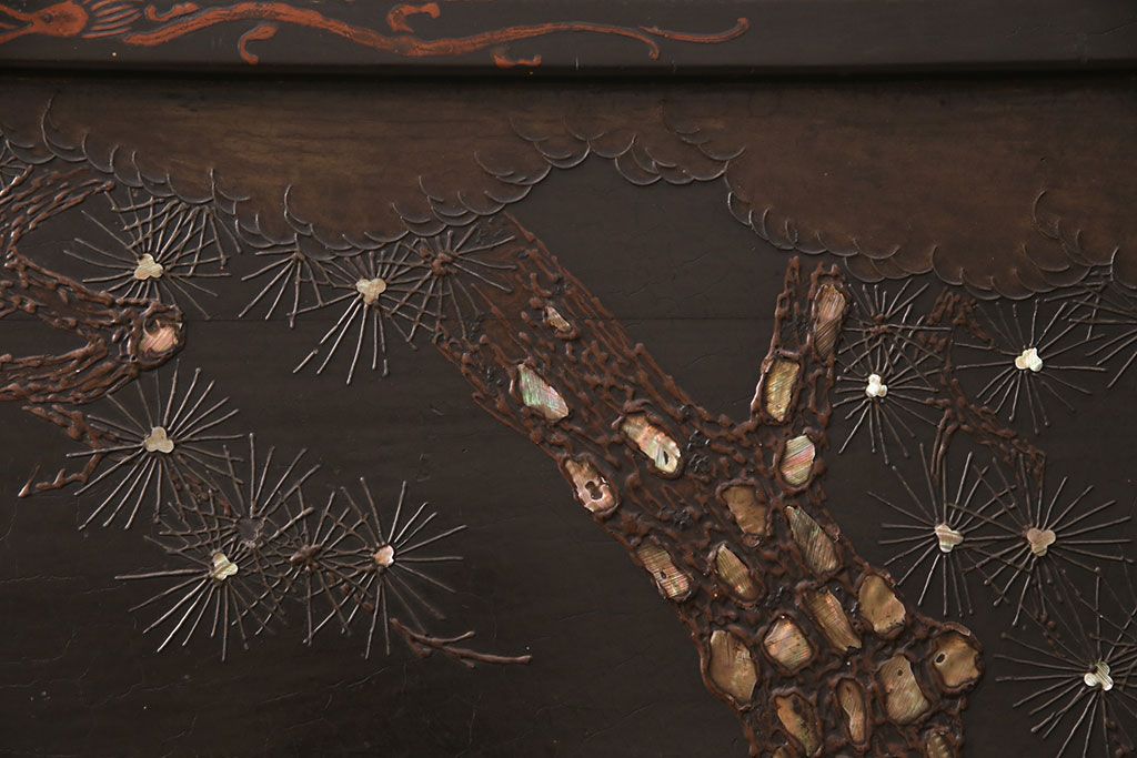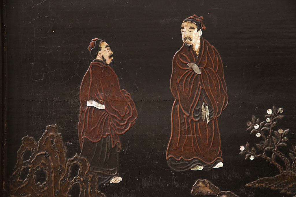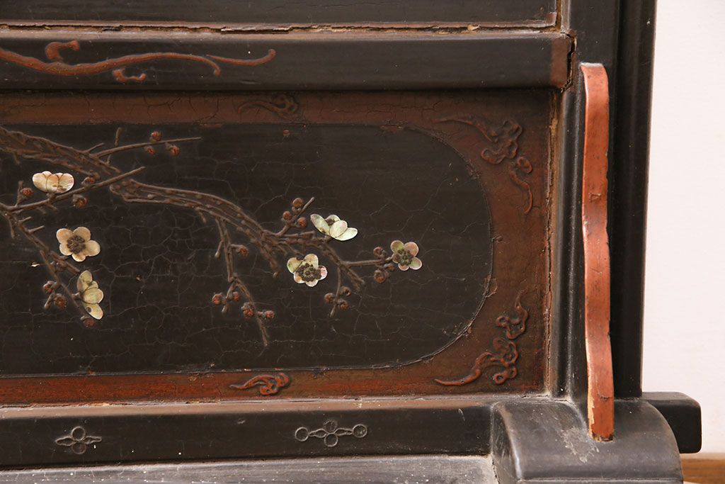 【簡易リペア限定品】和製アンティーク 希少品!漆絵と螺鈿細工が施された、趣ある佇まいの時代衝立(つい立て、パーテーション)(R-050454)
