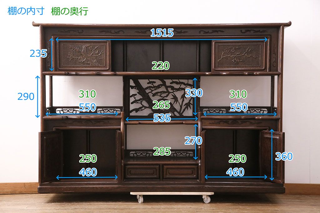和箪笥> 茶箪笥・茶棚 > 和製ヴィンテージ 鉄刀木(タガヤサン) レア品!6尺サイズが珍しい、高級感たっぷりの飾り棚(定価約150万円)(収納棚、飾り棚、茶棚、ビンテージ)(R-050487)