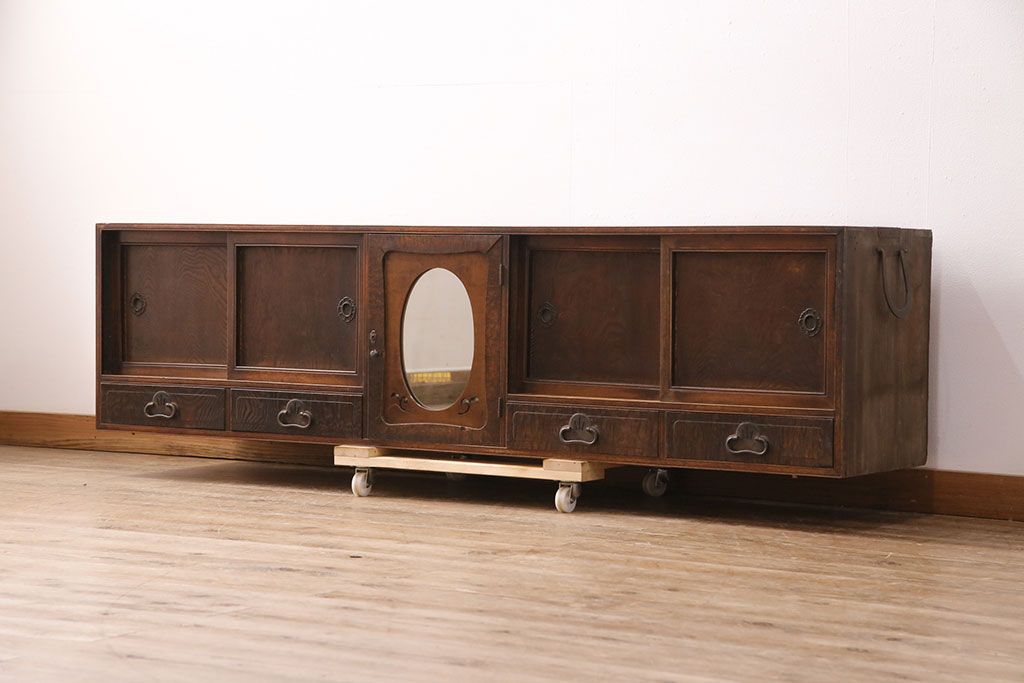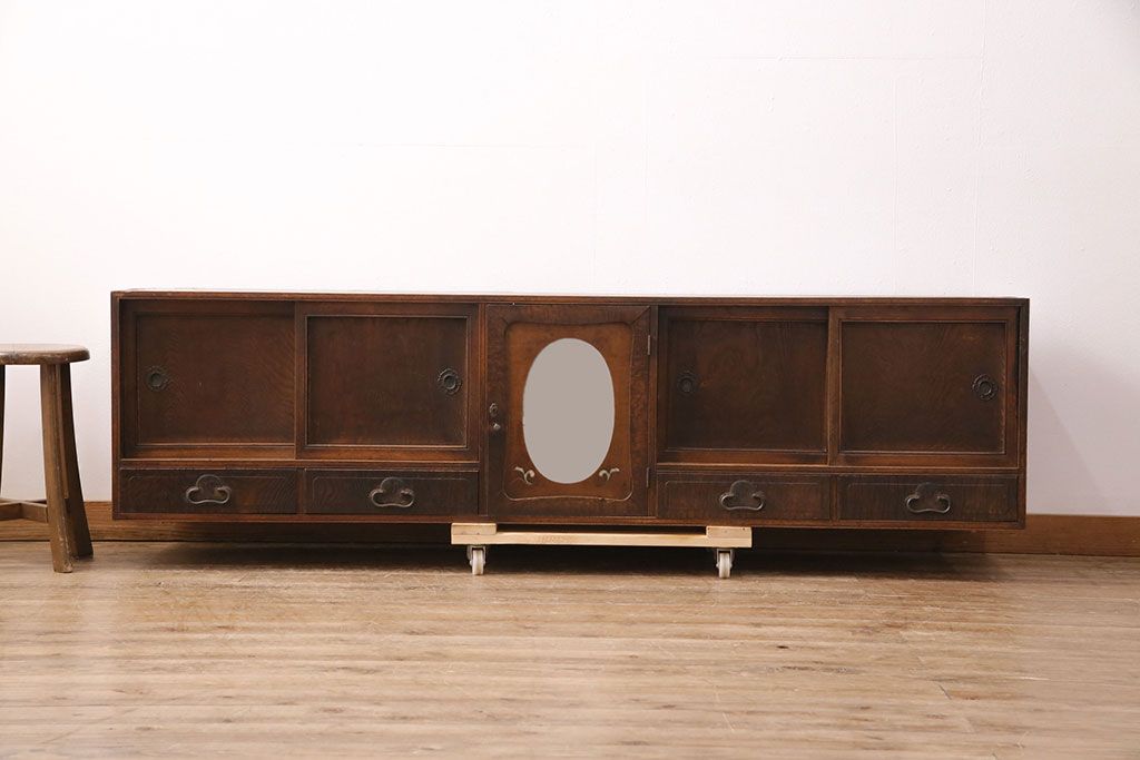 和製アンティーク 大正ロマンな雰囲気漂う珍しいデザインのテレビ台(ローボード、収納棚、戸棚)(R-050460)