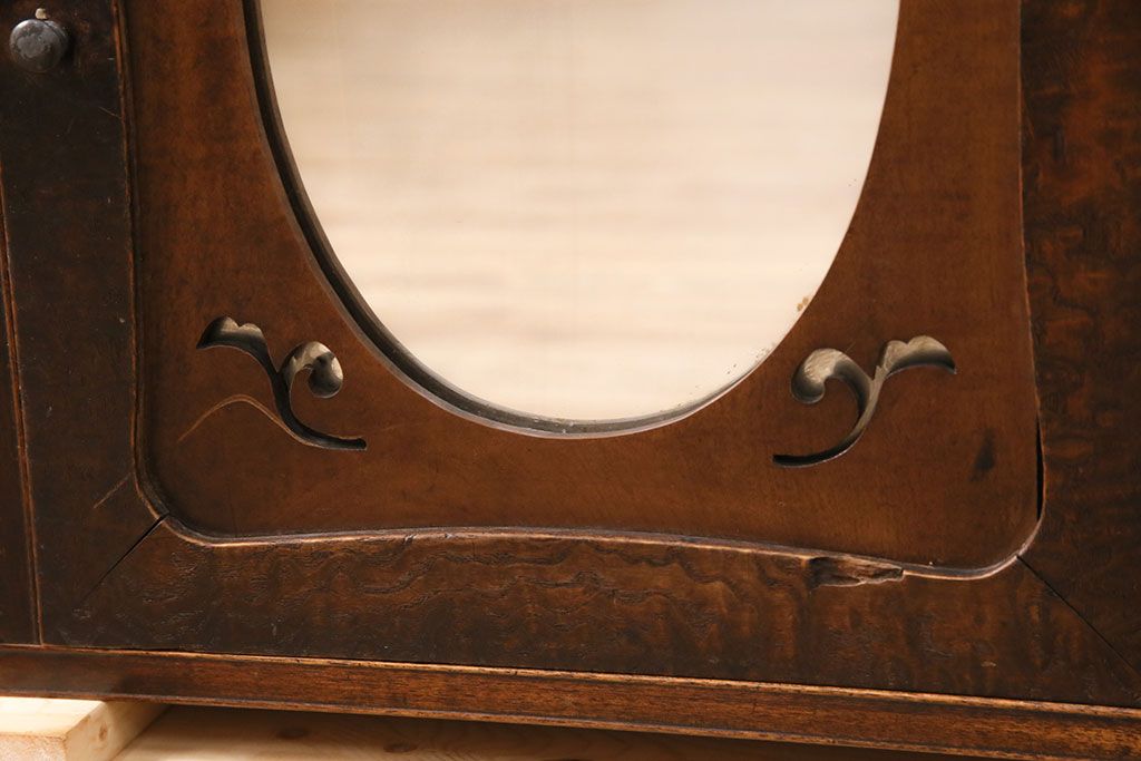 お問い合わせいただければ、優先してアップいたします。和製アンティーク 大正ロマンな雰囲気漂う珍しいデザインのテレビ台(ローボード、収納棚、戸棚)(R-050460)です。