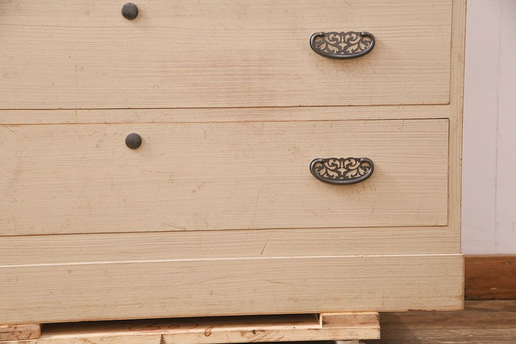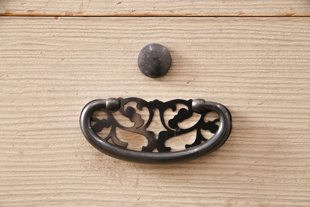 アンティーク商品では稀に引き出しや扉、つまみ等を動かすと鍵がかかる仕組みの商品があります。鍵閉じ込め防止のため、鍵は当該商品の引き出し、扉内ではなく別に保管してくださいますようお願い致します。