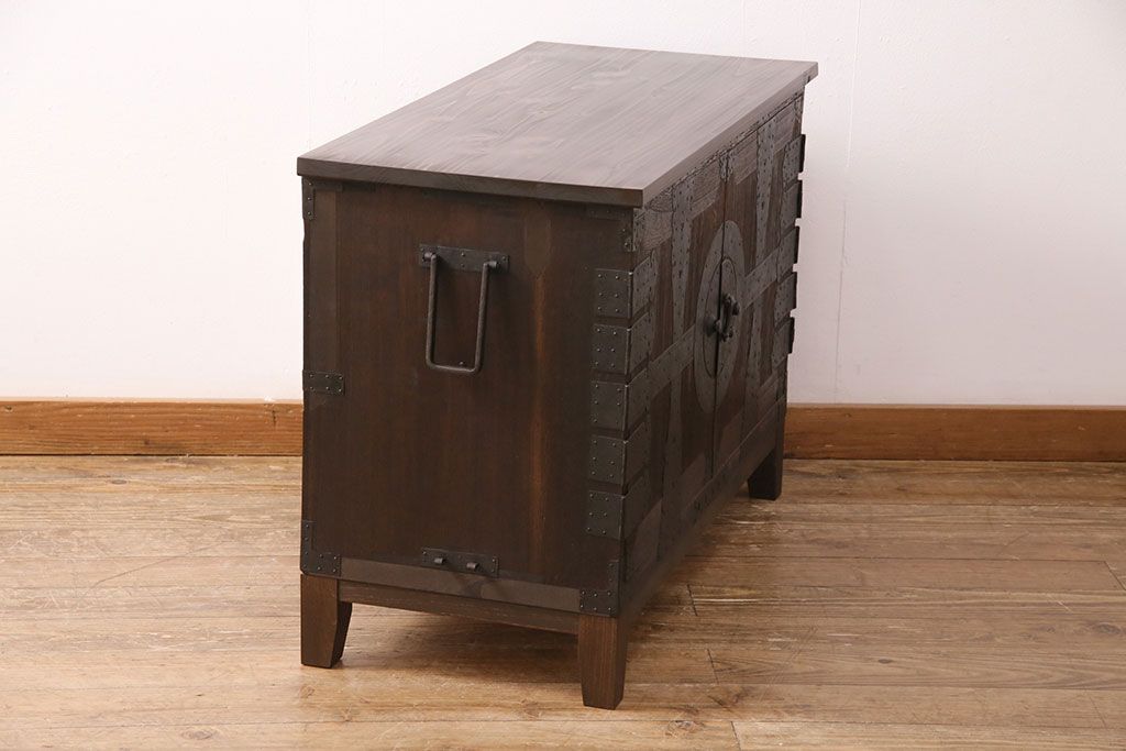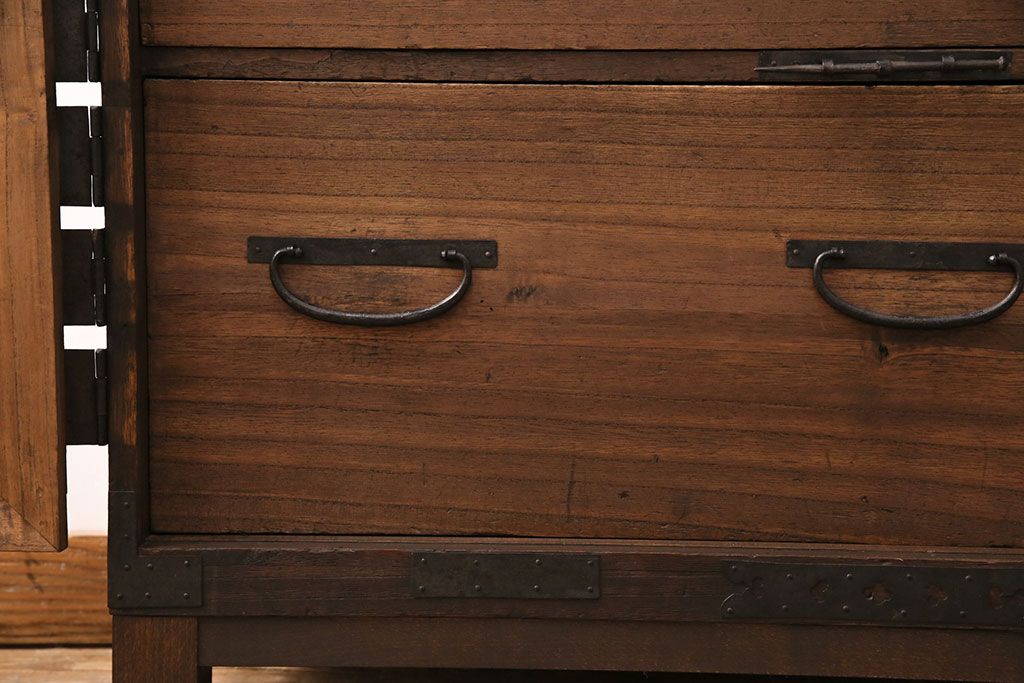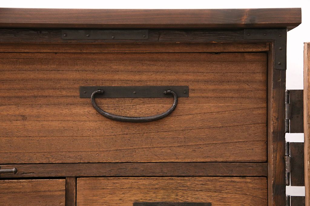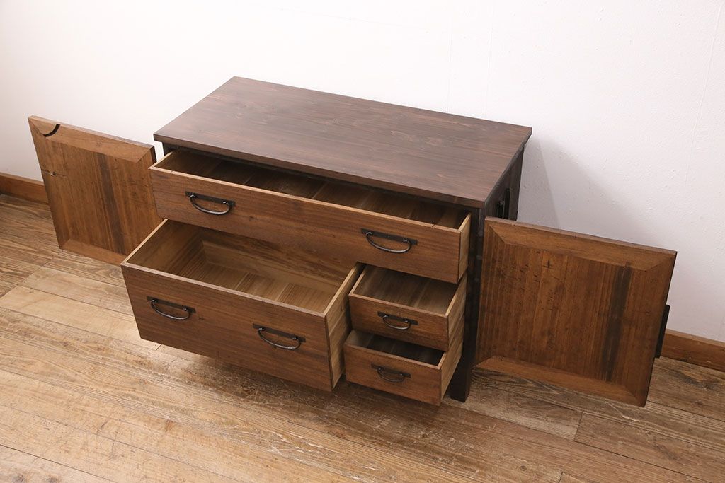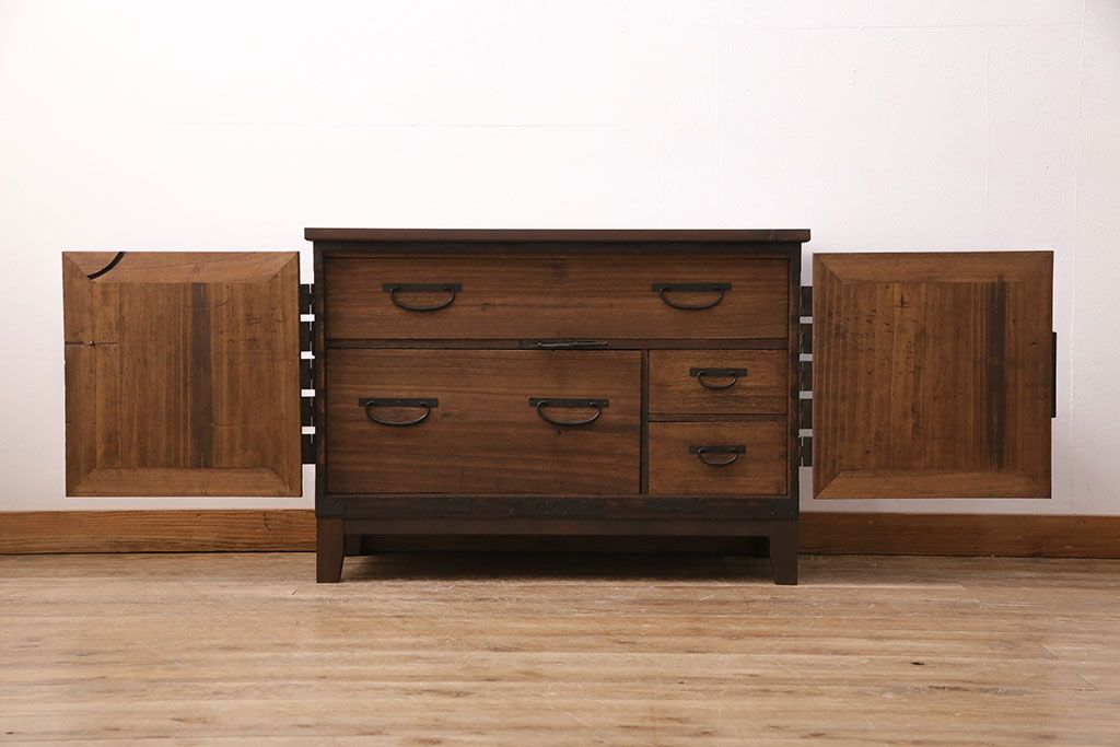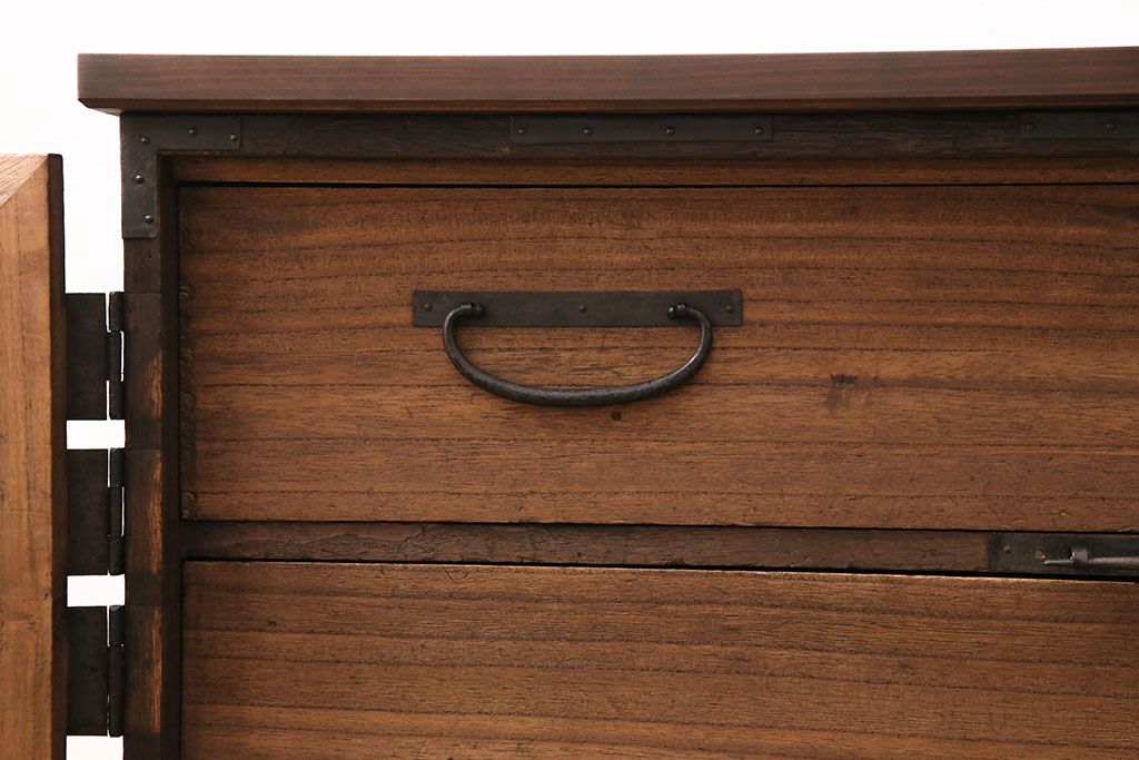 和箪笥 > 当店リメイク 脚付き・天板付き 桐材 十字金具がかっこいい!観音開きの時代箪笥ローボード(引き出し、テレビボード、テレビ台)(R-050518)