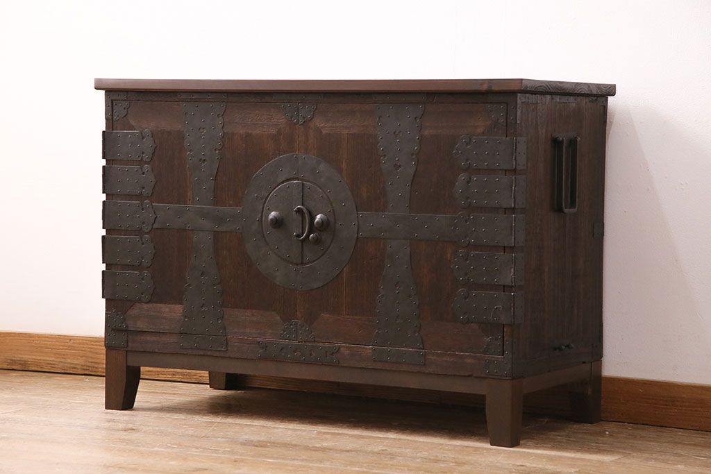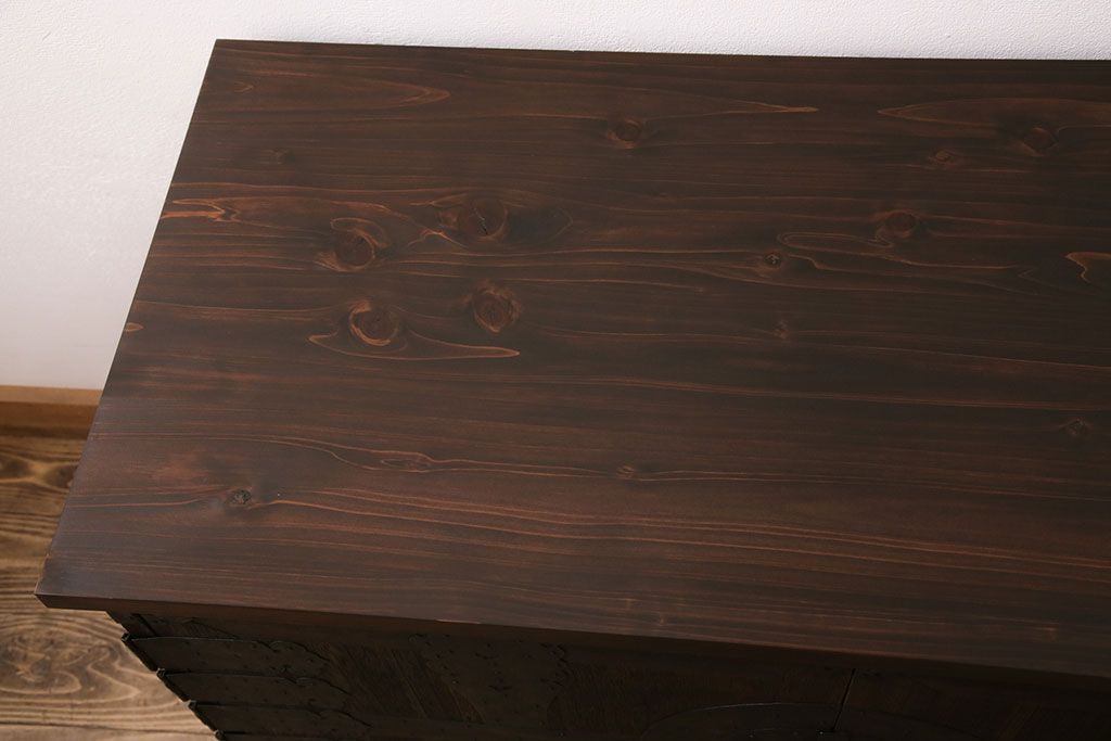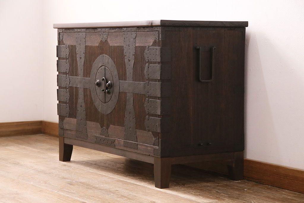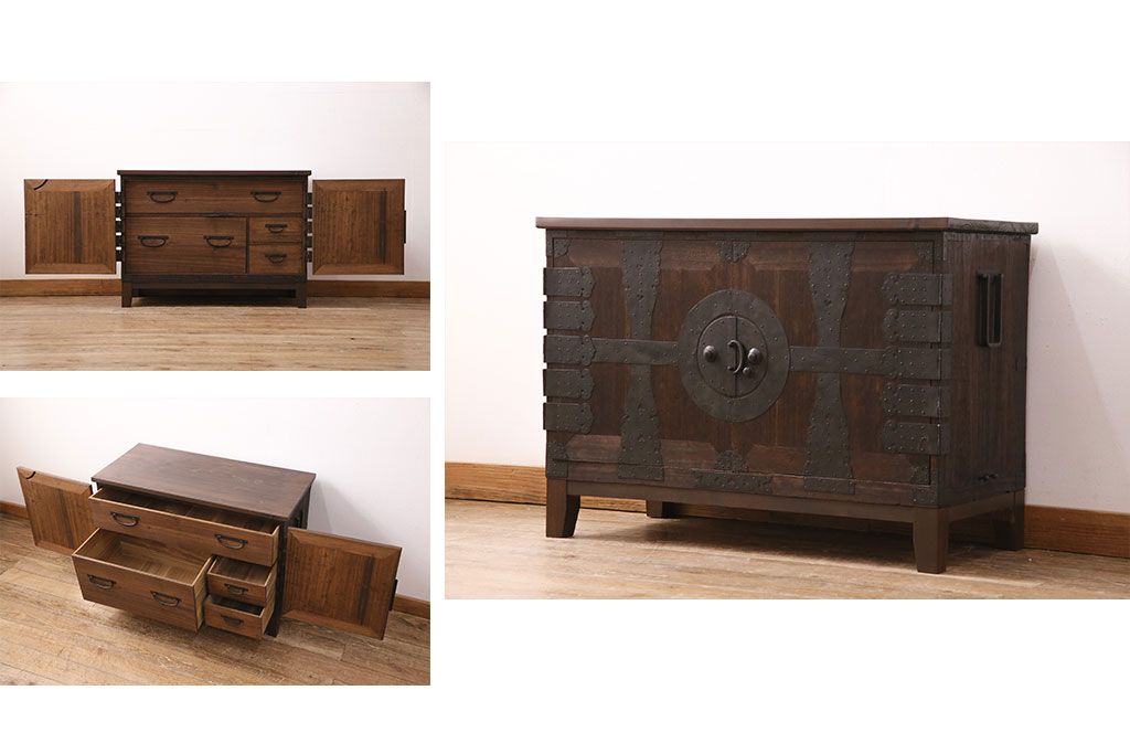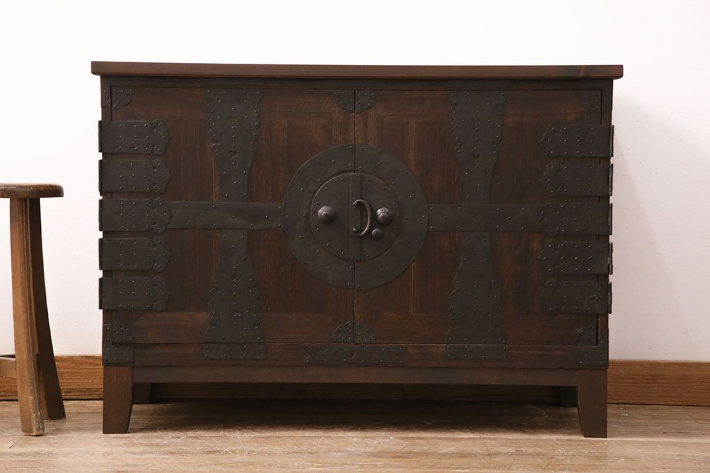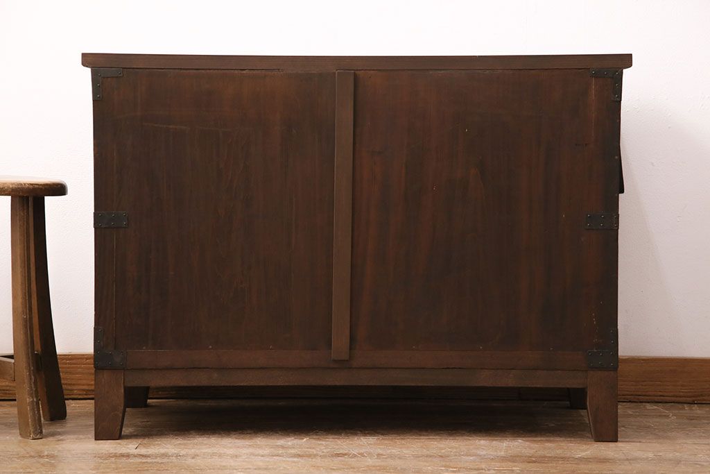 和箪笥 > 当店リメイク 脚付き・天板付き 桐材 十字金具がかっこいい!観音開きの時代箪笥ローボード(引き出し、テレビボード、テレビ台)(R-050518)