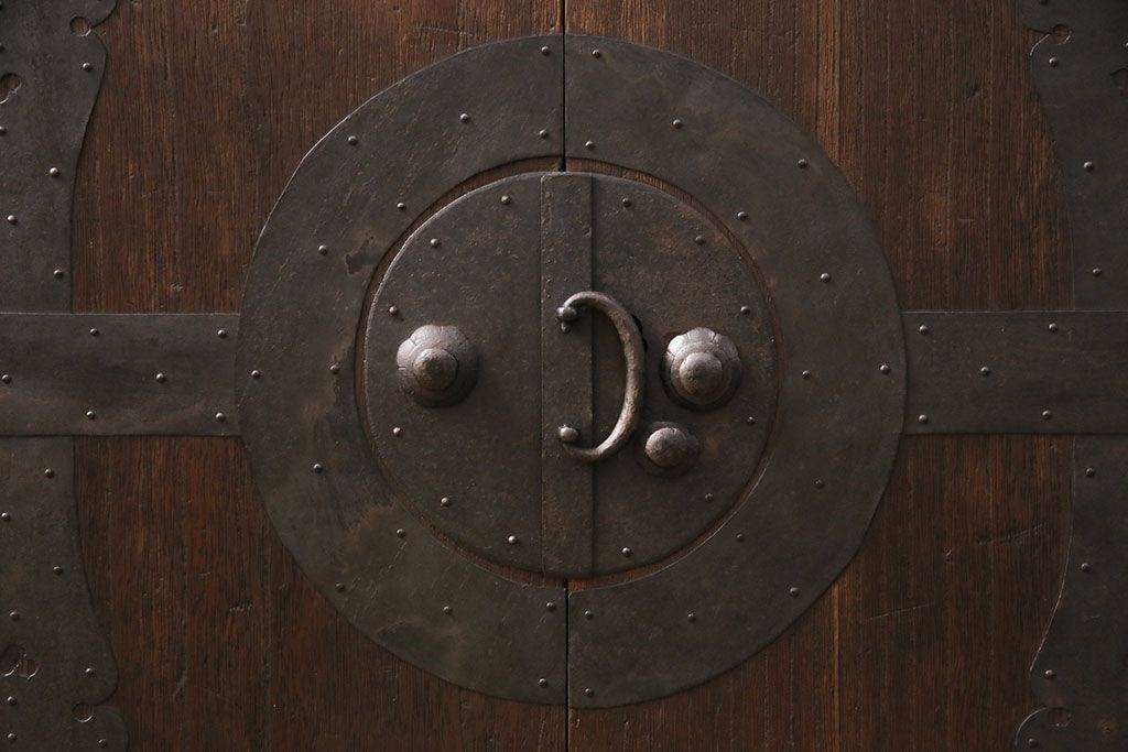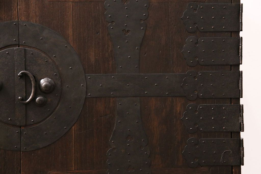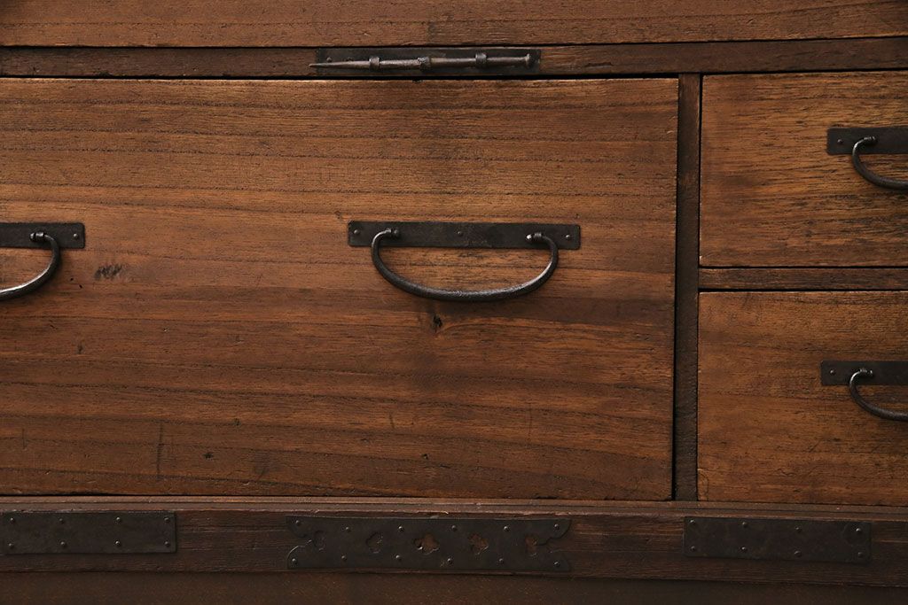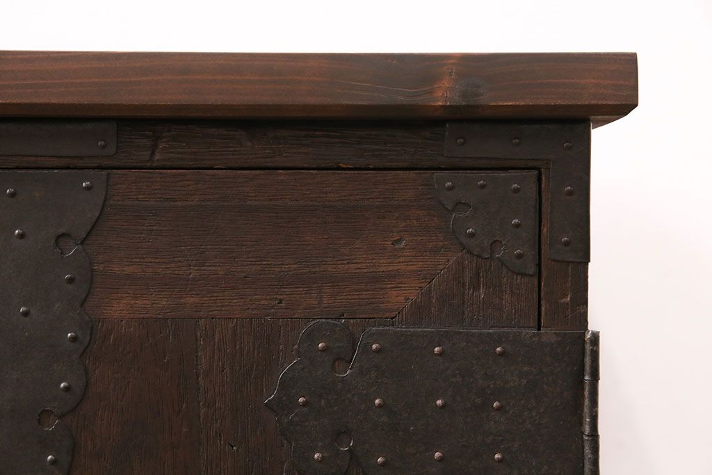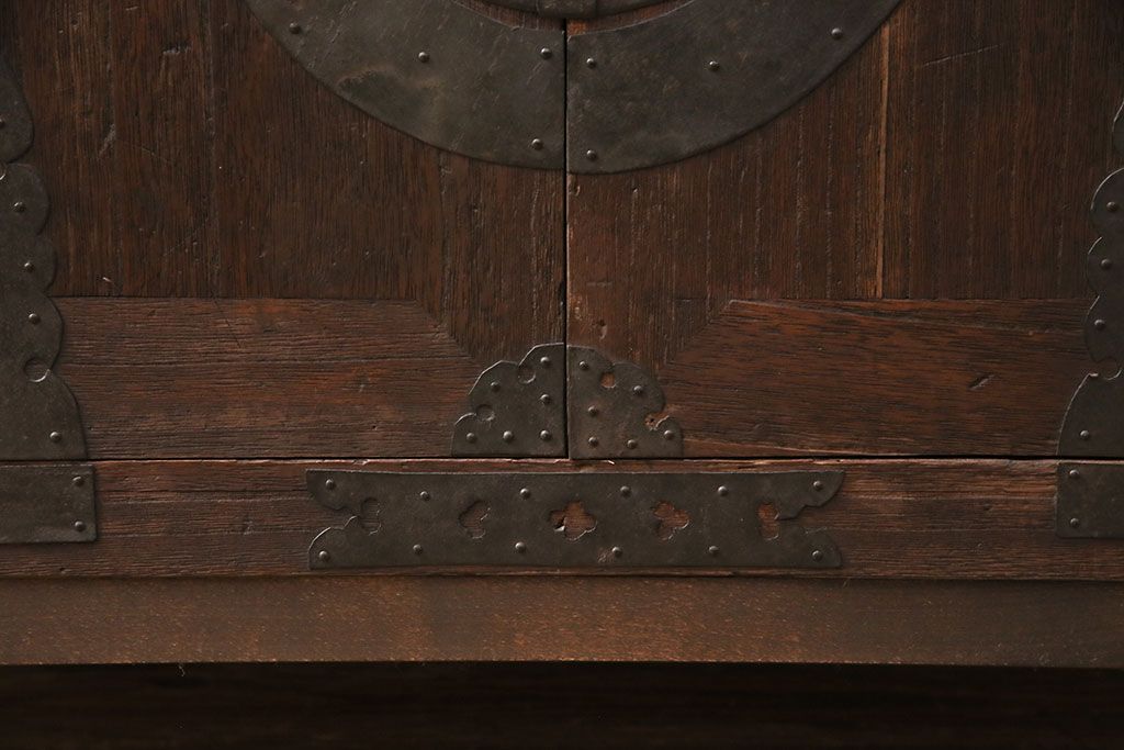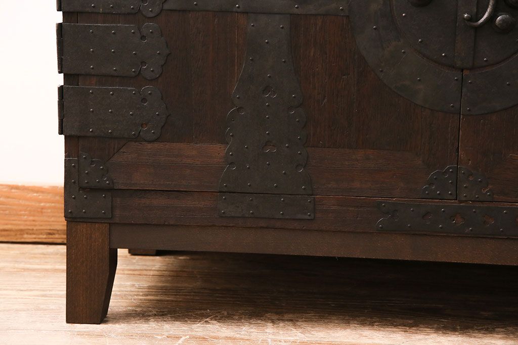 和箪笥 > 当店リメイク 脚付き・天板付き 桐材 十字金具がかっこいい!観音開きの時代箪笥ローボード(引き出し、テレビボード、テレビ台)(R-050518)
