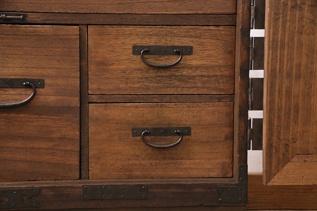 当店リメイク 脚付き・天板付き 桐材 十字金具がかっこいい!観音開きの時代箪笥ローボード(引き出し、テレビボード、テレビ台)(R-050518)