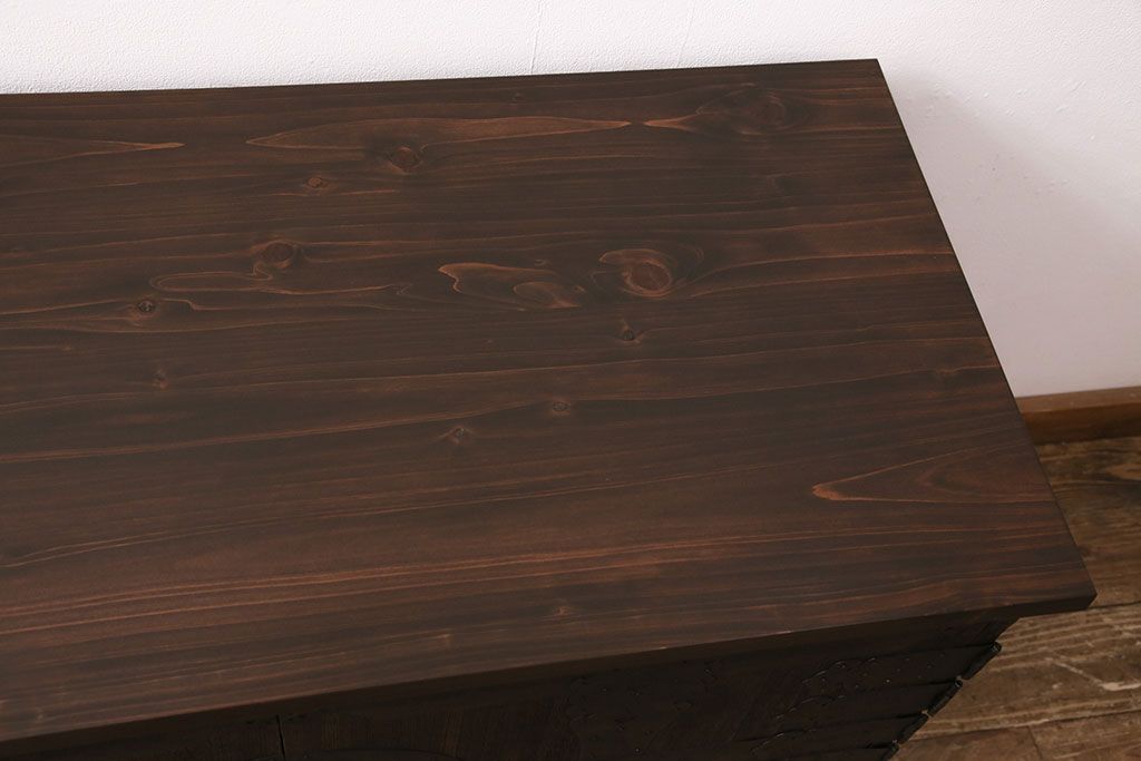 キャビネット・戸棚> テレビ台・ローボード > 当店リメイク 脚付き・天板付き 桐材 十字金具がかっこいい!観音開きの時代箪笥ローボード(引き出し、テレビボード、テレビ台)(R-050518)