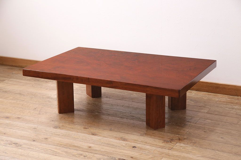 中古 カリン材一枚板!モダンな空間づくりにおすすめの小振りな座卓(センターテーブル、ローテーブル)(R-050503)です。