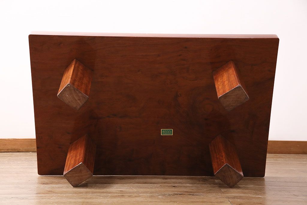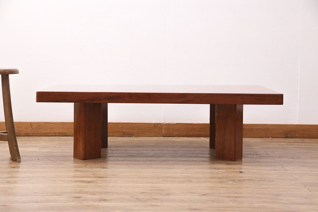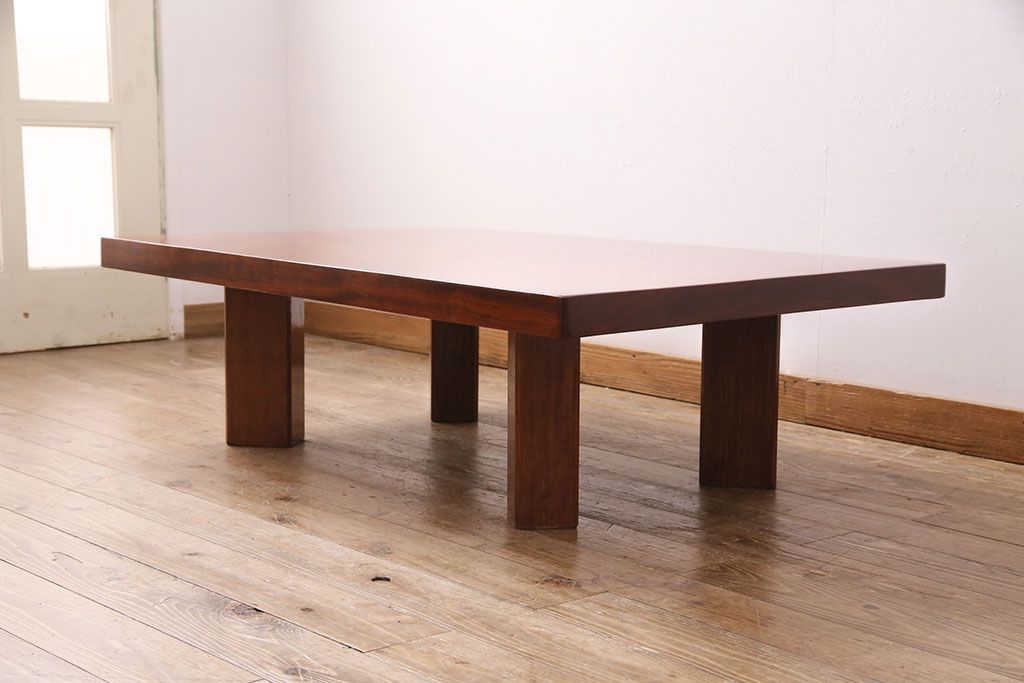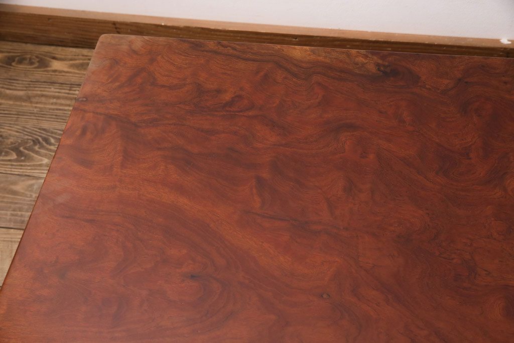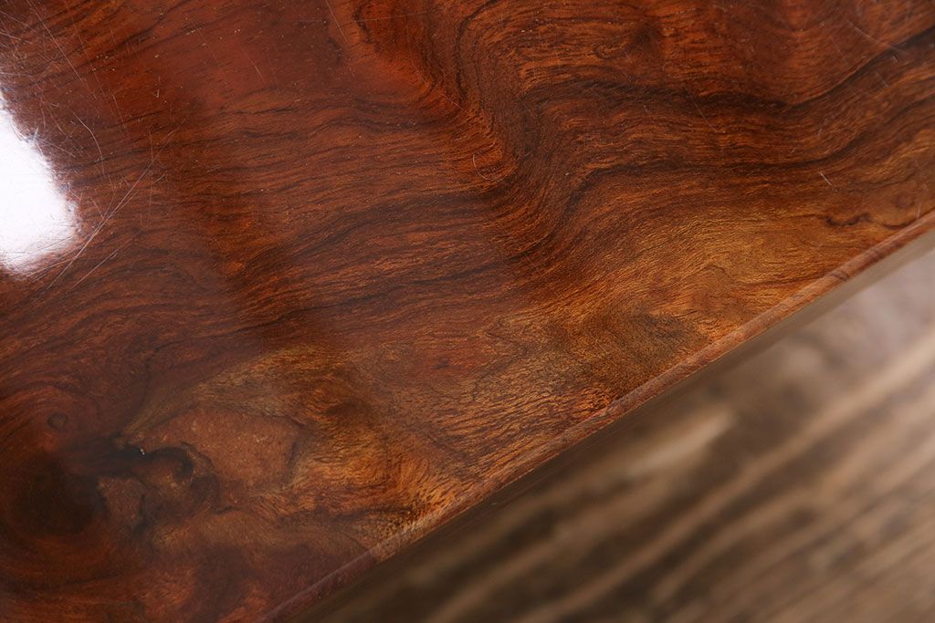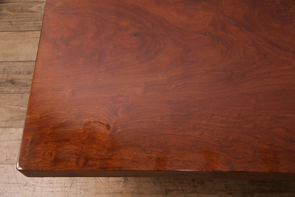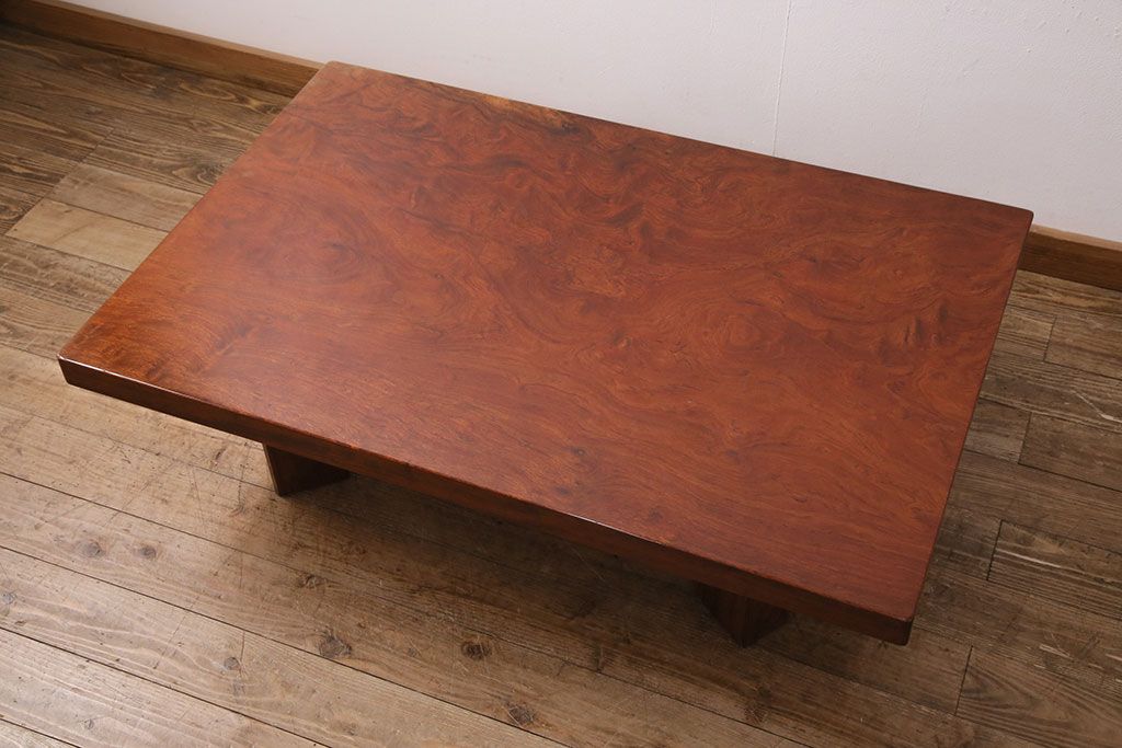 中古 カリン材一枚板!モダンな空間づくりにおすすめの小振りな座卓(センターテーブル、ローテーブル、花梨材)(R-050503)