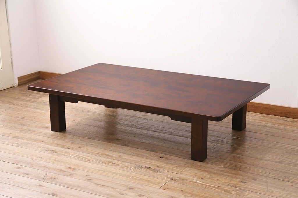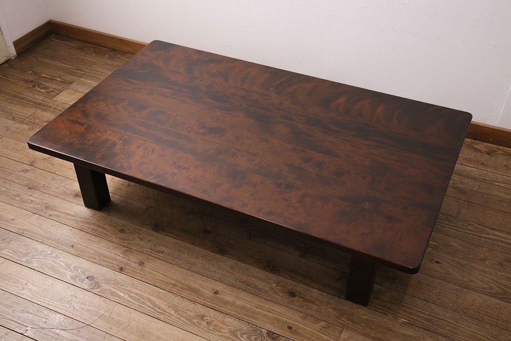 中古 美品 北海道民芸家具 滑らかな質感と深みのある色合いが魅力の座卓(ローテーブル、センターテーブル、リビングテーブル)(R-050504)
