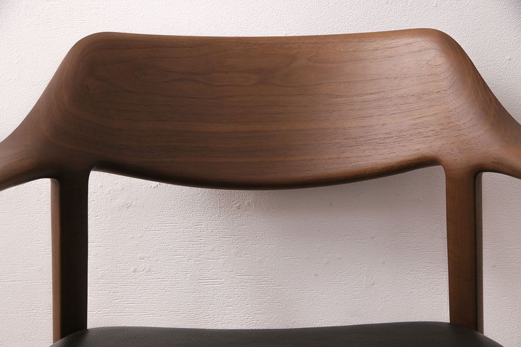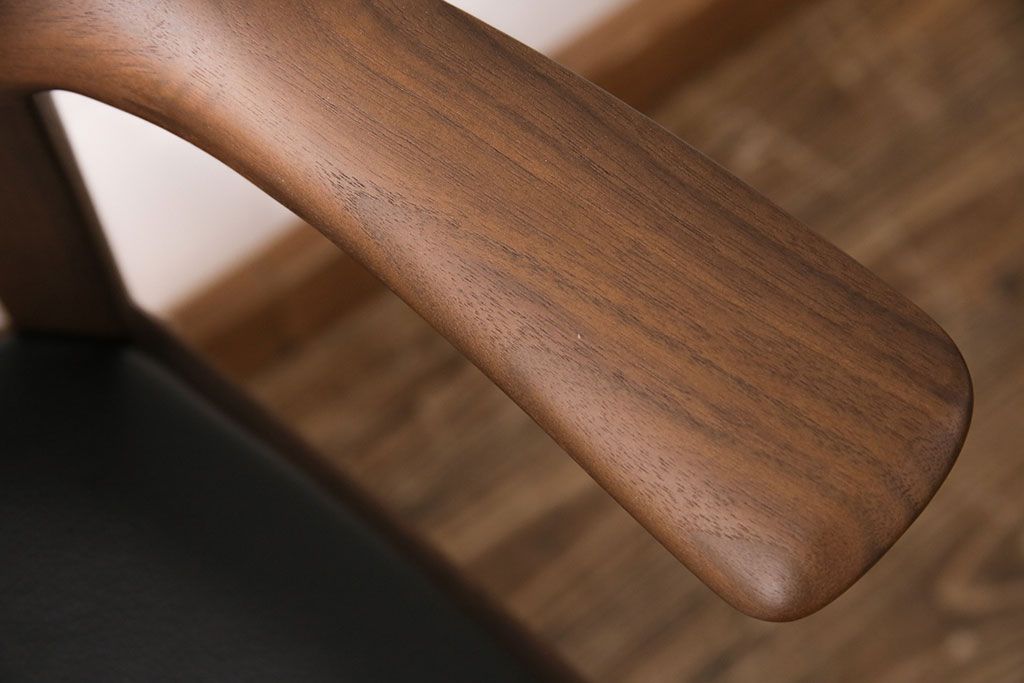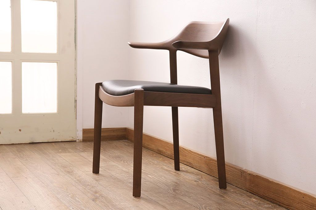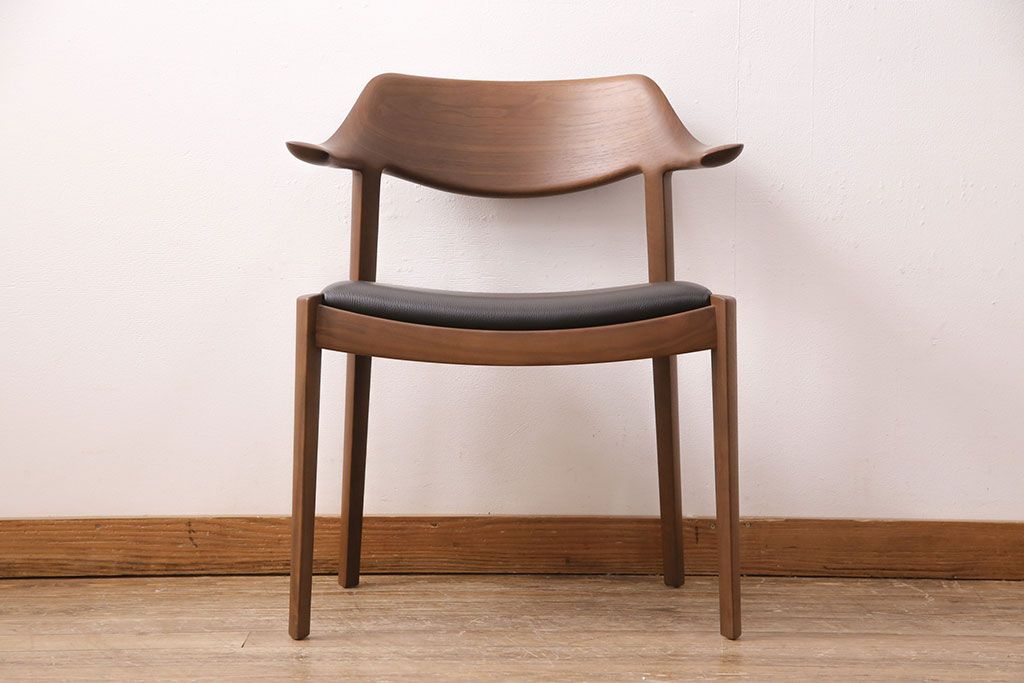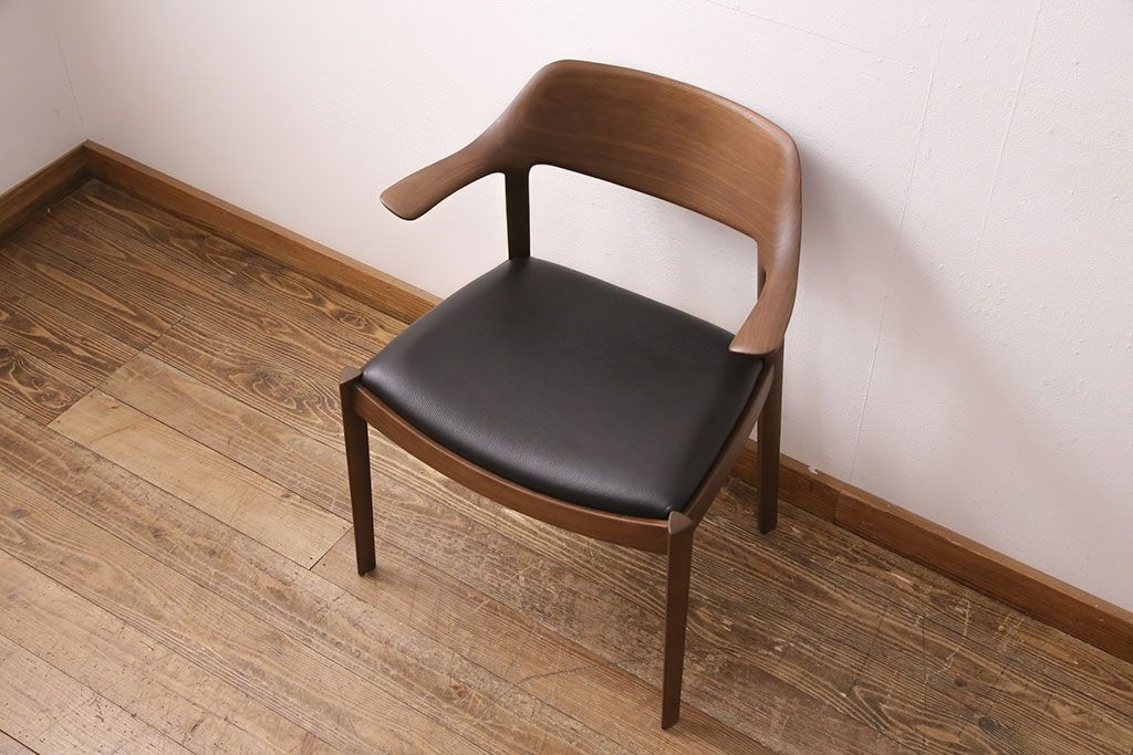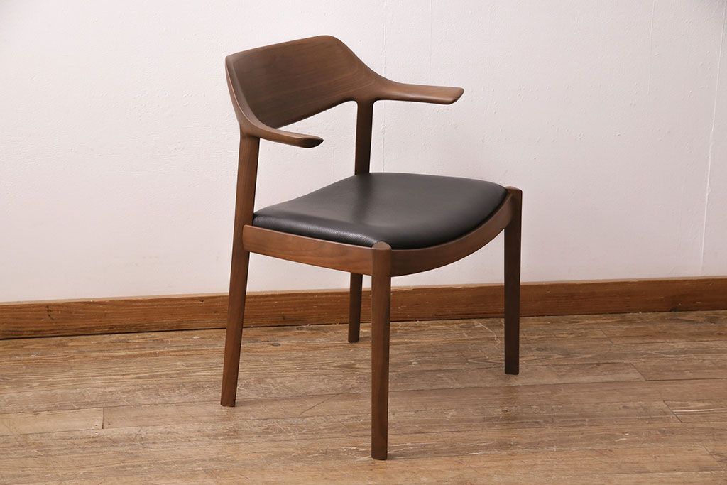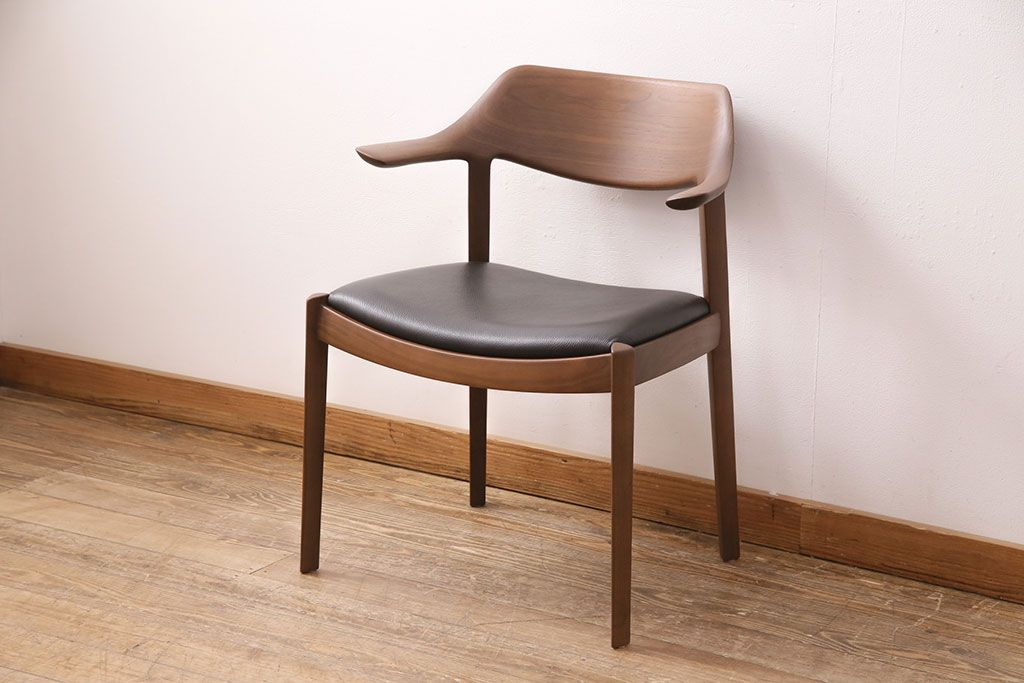 椅子・ベンチ> ダイニングチェア > 中古 展示美品 2016年製 CONDE HOUSE(カンディハウス) ウイングラックスシリーズ ウォールナットの滑らかな木肌とスタイリッシュなデザインが魅力のアームチェア(定価約9万3千円)(牛皮、ダイニングチェア)(R-050528)