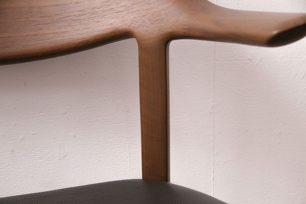 椅子・ベンチ> アームチェア > 中古 展示美品 2016年製 CONDE HOUSE(カンディハウス) ウイングラックスシリーズ ウォールナットの滑らかな木肌とスタイリッシュなデザインが魅力のアームチェア(定価約9万3千円)(牛皮、ダイニングチェア)(R-050528)