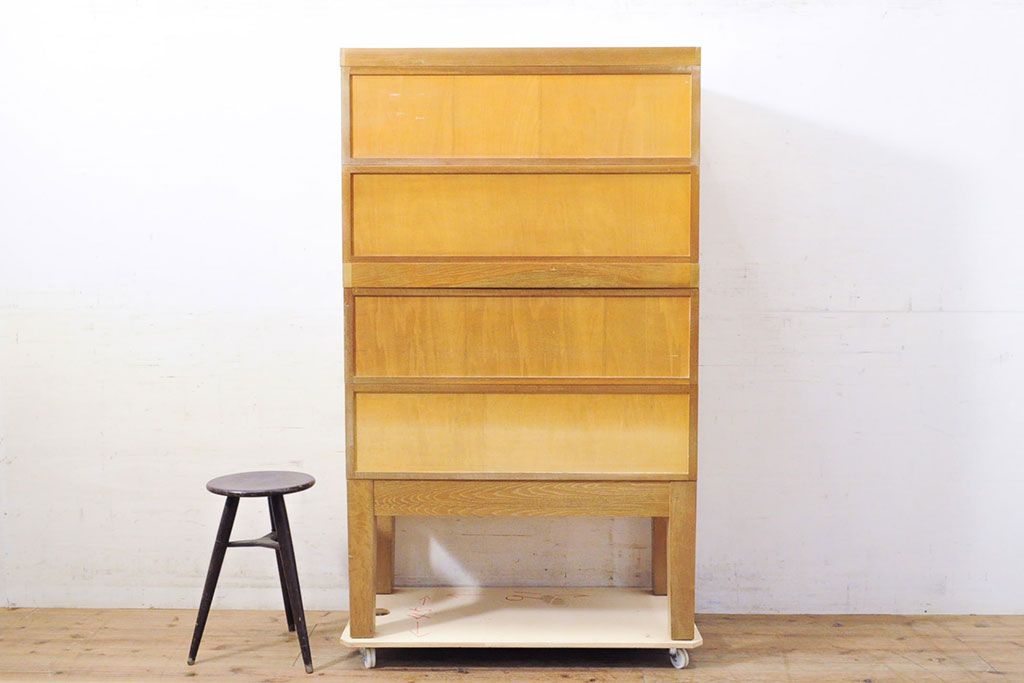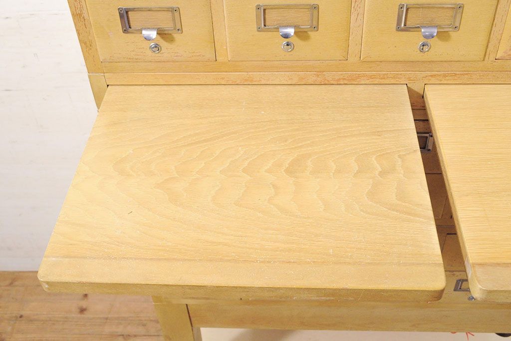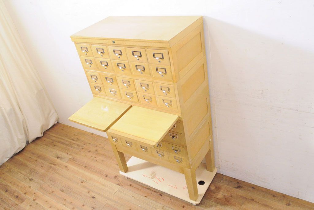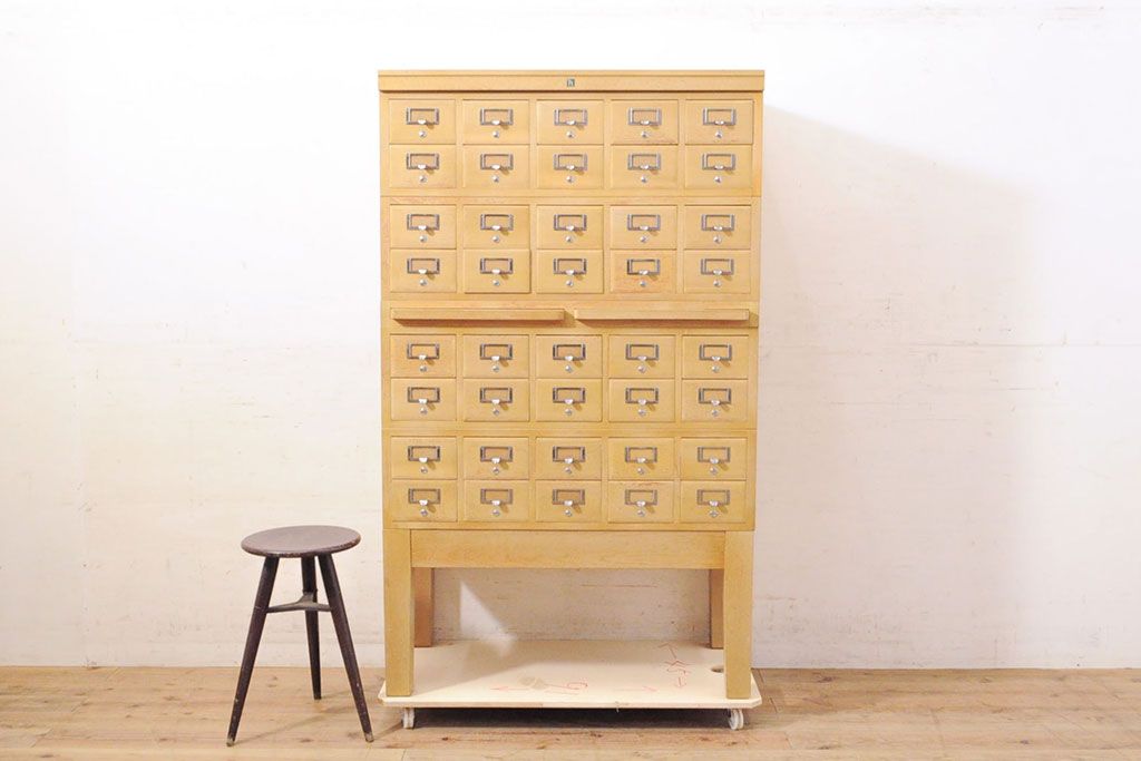 【簡易リペア限定品】レトロ家具 昭和レトロ KIHARA 引き出し40杯!店舗什器におすすめのナラ材製ネームプレート付きカードケース(引き出し、チェスト、図書館、図書室)(R-050288)